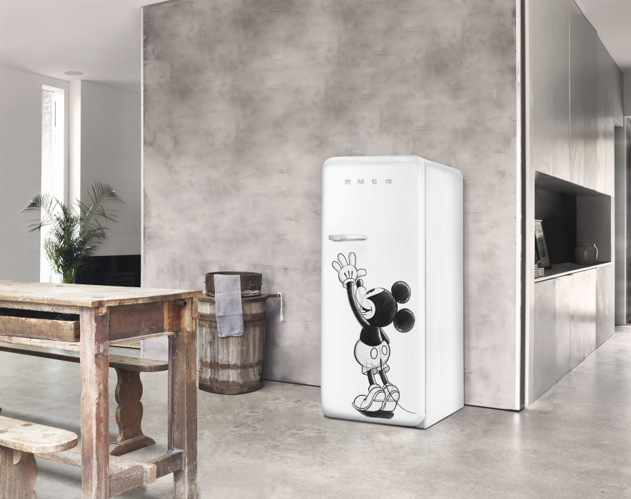 Чтобы отметить две знаменательные годовщины – 70-летие бренда SMEG и 90-летие Микки Мауса – Smeg и Disney выпустили специальную коллекцию холодильников с всемирно известным мультперсонажем.