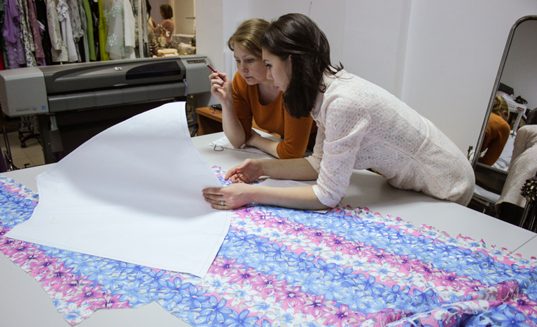 Процесс создания коллекции занимает где-то пол года. Начинается он с определения темы и идеи коллекции. Потом мы придумываем, каким способом будем воплощать идеи, какие у нас есть возможности и, соответственно, под эти возможности разрабатываем материалы: превращаем авторские принты в вышивки, джакарты, используем различные техники. Потом мы разрабатываем художественные эскизы, далее - технические, по которым строим пробные модели в сорок втором размере. После всего этого мы запускаем партию первых образцов, параллельно заказывая ткани. Далее образцы возвращаются к нам на склад, и начинается продажа коллекции.