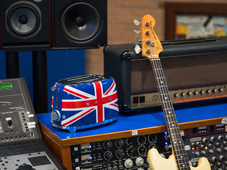 Здесь, среди музыкальных инструментов, пультов и микрофонов, тостер SMEG Юнион Джек находит точный контекст, воспевающий его музыкальную душу, объединяющую и свободно парящую. Студия звукозаписи становится идеальным местом, где тостер выглядит «как у себя дома». Здесь он одновременно и объект для показа, и один из важных аксессуаров, которые персонализируют студию, и функциональный прибор для тех, кто использует пространство вокруг него – бесценный союзник во время перерыва на кофе в процессе долгой звукозаписи.