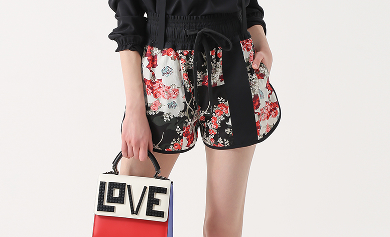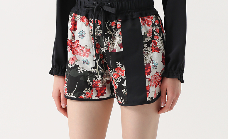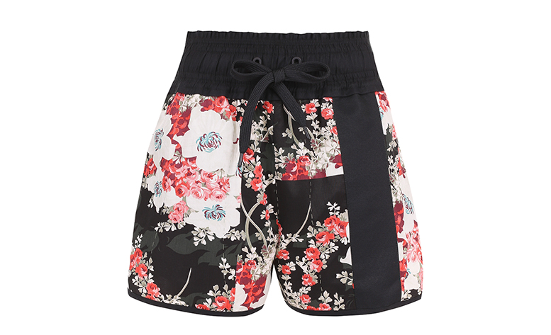 Легкие хлопково-шелковые мини-шорты с эластичным поясом в сочетании классического черного и цветочного принта от Rag&Bone.