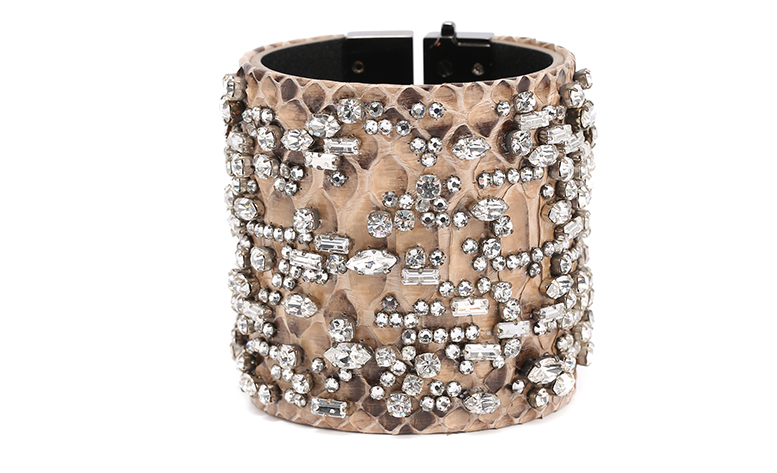 Широкий браслет, обтянутый кожей питона и украшенный кристаллами Swarovski разных размеров, выпущенный Томом Фордом в коллекции осень-зима 2016.