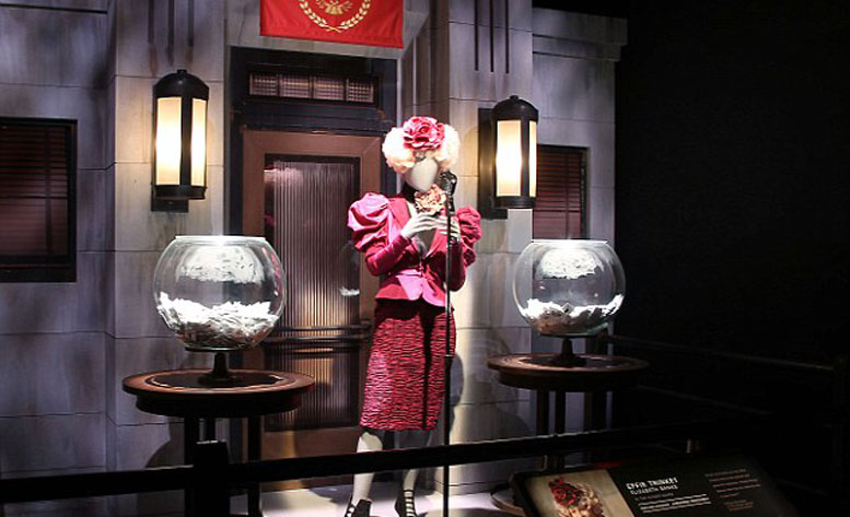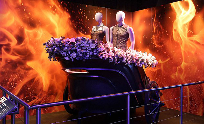 Специально для выставки костюмеры предоставили свои творения, включая наряд Огненной Китнисс, одежду Сойки-Пересмешницы и доспехи Сойки-Пересмешницы. Реквизиторы продемонстрируют уникальные предметы, такие как брошь Сойки-Пересмешницы, записная книжка Цинны и лук Китнисс. Взглядам любителей интерактива откроются компьютерная карта Панема, контрольная панель создателей игр и интерактивный стенд хореографии трюковых сцен.