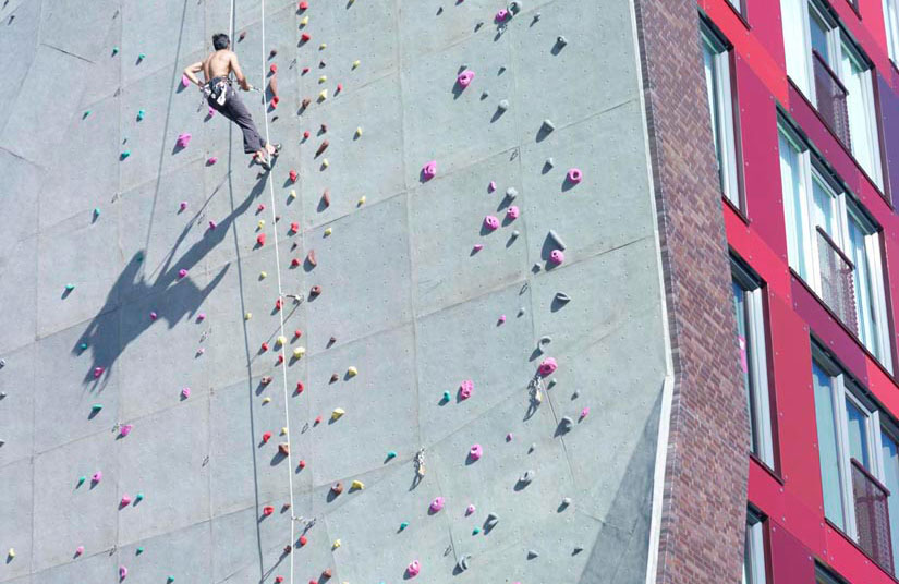 В этом университете работает один из самых активных альпинистских клубов. Специально для этого клуба голландские архитекторы построили тридцатиметровую стену для скалолазания. Эта стена стала высочайшей в Нидерландах и имеет 2,5 тысячи ручек. Объем здания многофункционален. В девятиэтажной части — двухместные студенческие номера, в двухэтажной — супермаркет и парикмахерская.