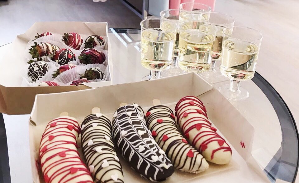 Любимая всеми клубника или бананы с любовью обволакиваются всеми цветами радуги, украшаются авторским съедобным декором и по желанию принимают любую форму от нежных букетов до загадочных подарочных коробочек.