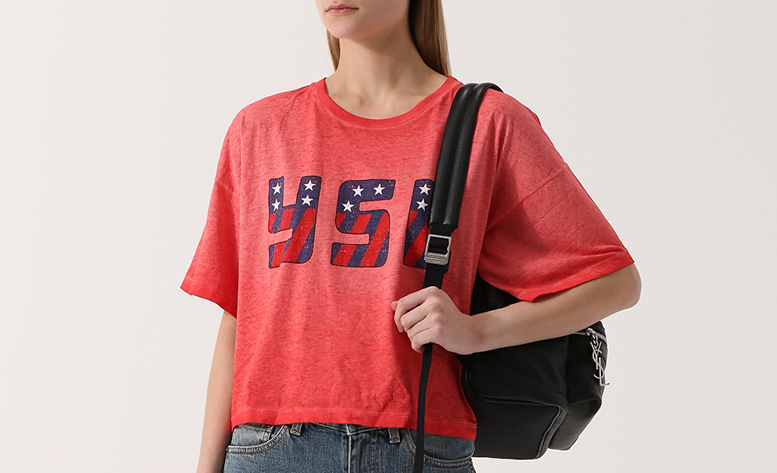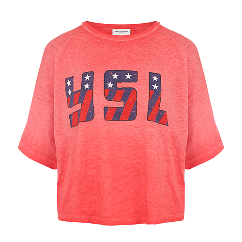 SAINT LAURENT Укороченная футболка с контрастным логотипом бренда