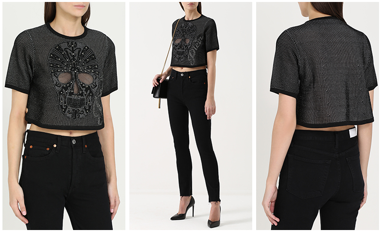 PHILIPP PLEIN Укороченная футболка с металлизированной отделкой