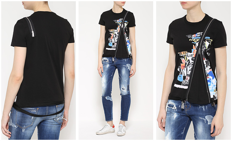 DSQUARED2 Футболка прямого кроя с декоративной отделкой и ярким принтом