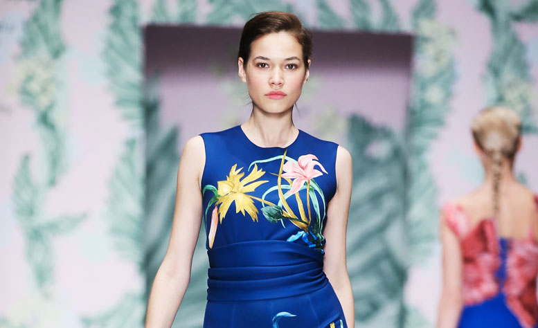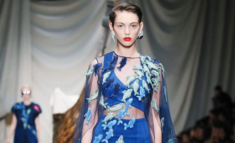 Цветочные принты и полупрозрачные ткани затуманили взгляд каждого из гостей показа. Весь зал окутало облако цветов и воцарило ощущение их оживленности. Утонченные ирисы и мягкие пионы распускались на платьях и мантиях моделей, а мини-платья и брючные варианты шли в тандеме со шлейфами.