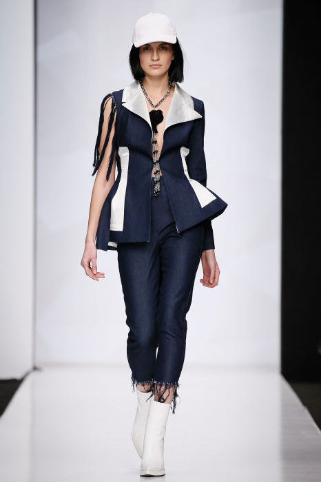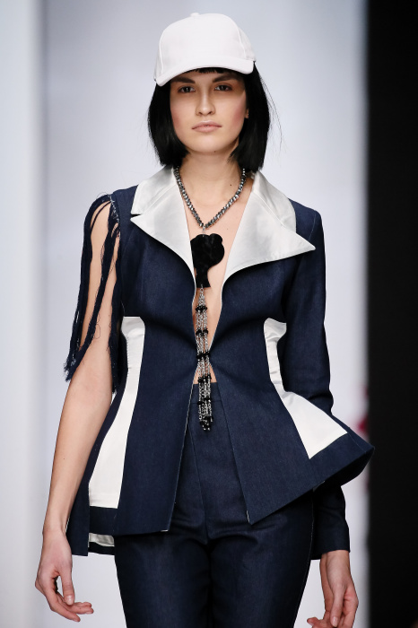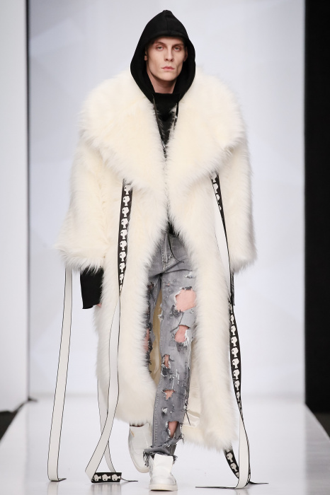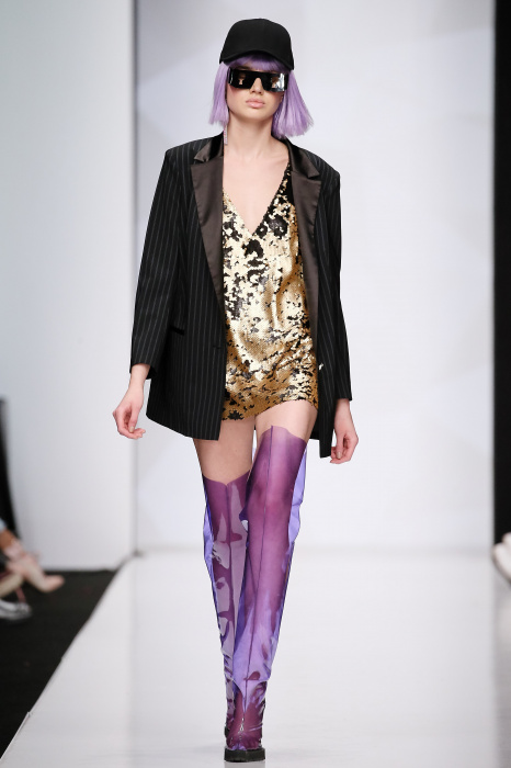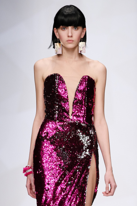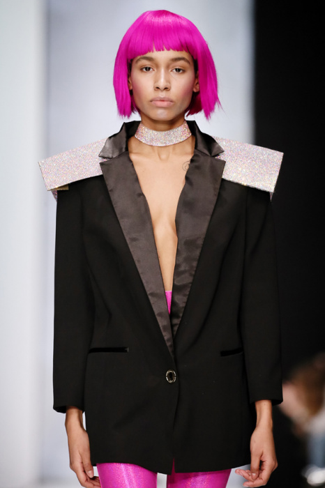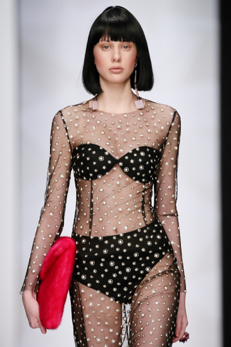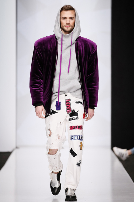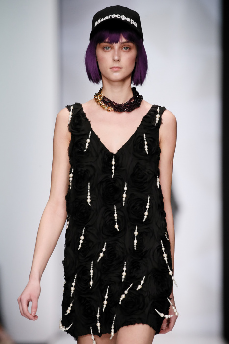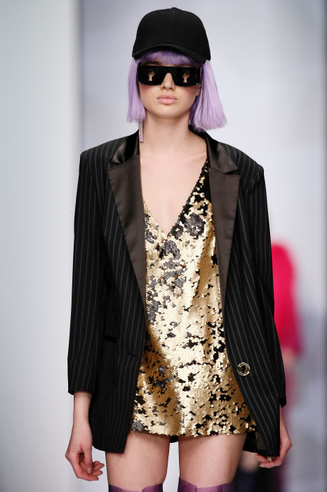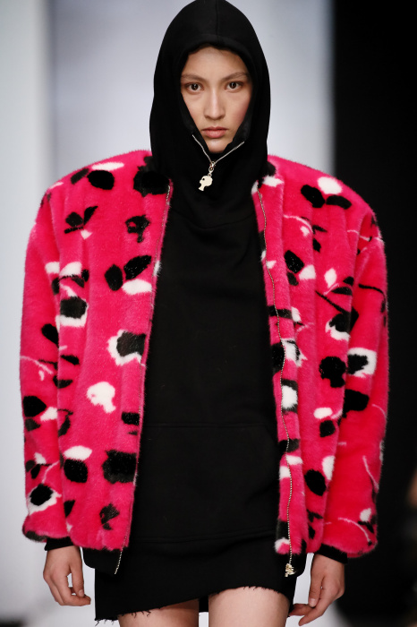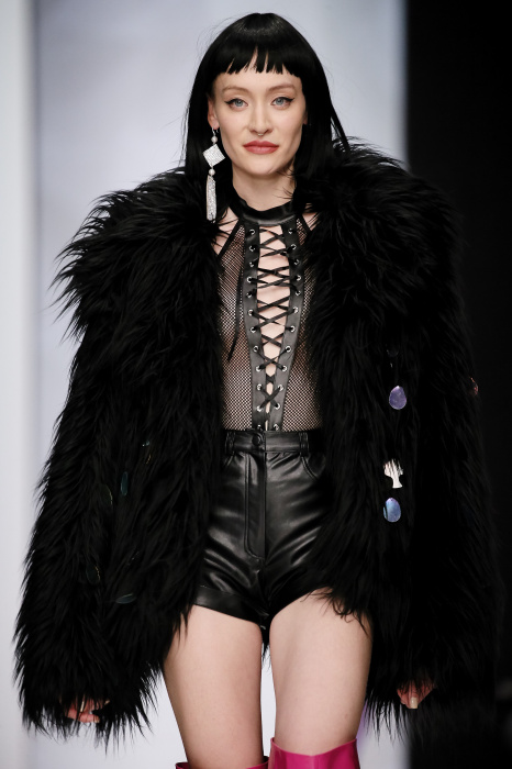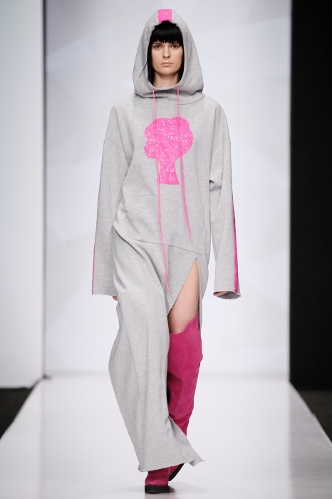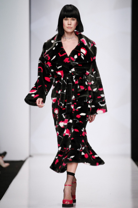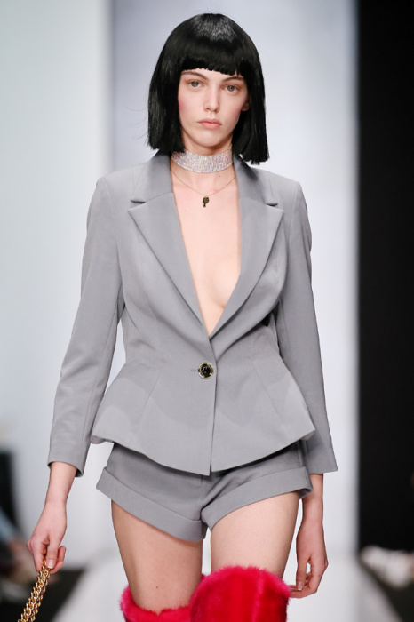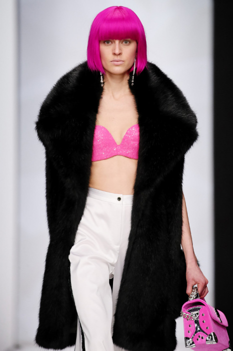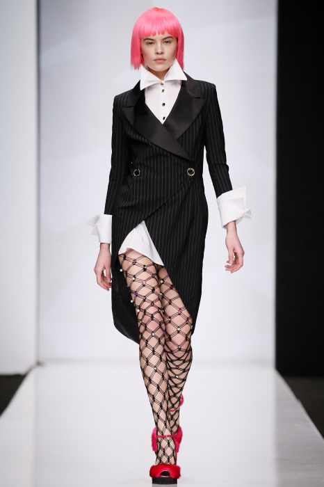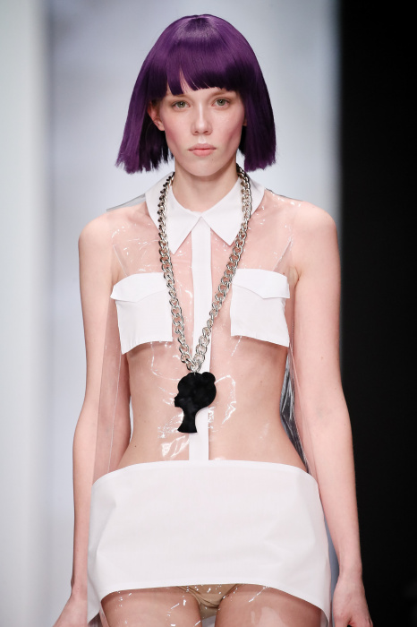 Вся коллекция дизайнера Bella Potemkina выполнена из модакрилового волокна Kanecaron, из которого создается высококачественный экомех. Цветовая палитра – яркая и многообразная. Это и фуксия, и пурпурный в сочетании с черно-белым монохромом – героиня бренда смелая, дерзкая, готовая к экспериментам. Все образы демонстрируют нарочитую небрежность, легкость, сексуальность и лоск. Короткие шорты, боди, ботфорты, лаковая кожа, пайетки и двубортные платья – никаких предрассудков, только смелое воплощение.