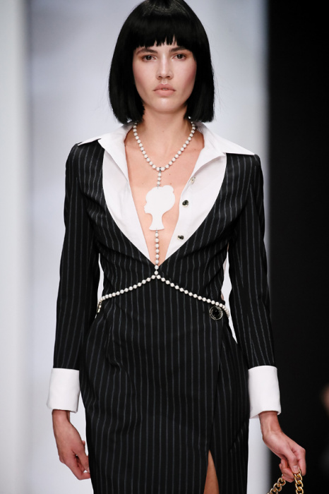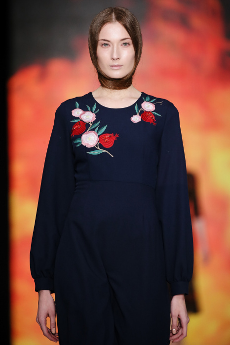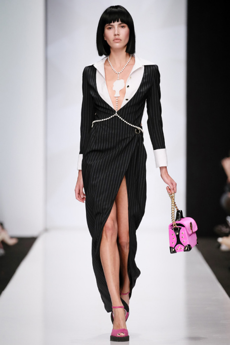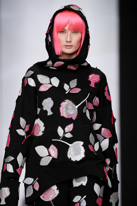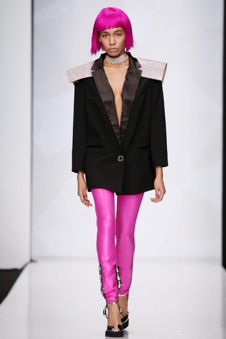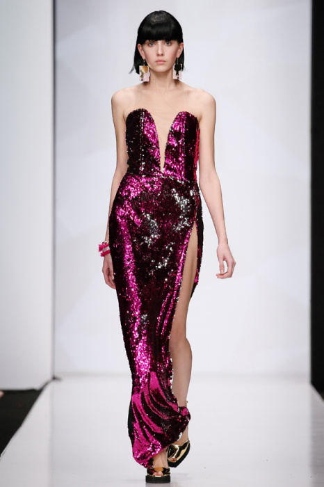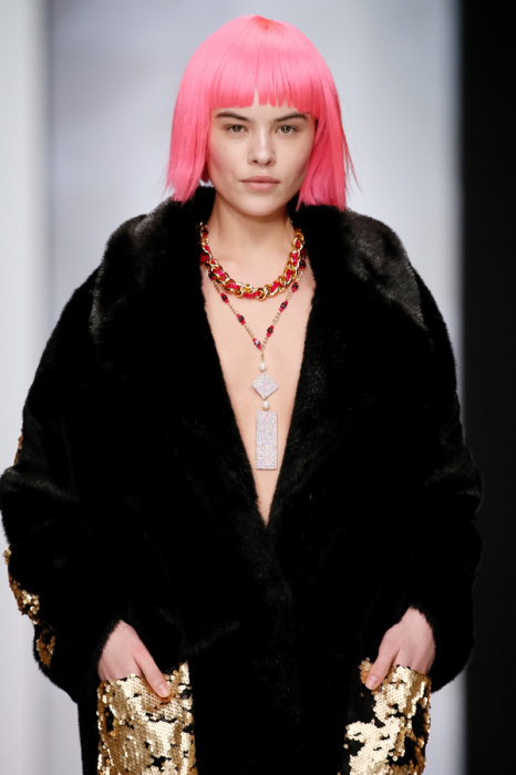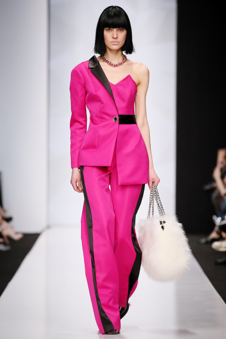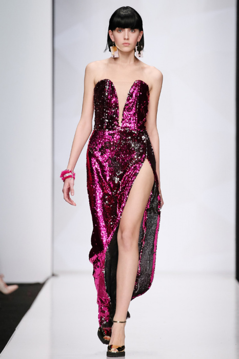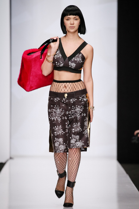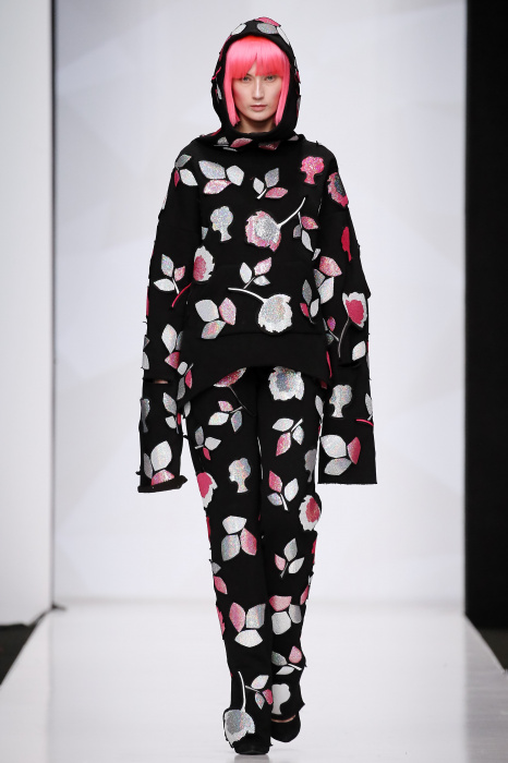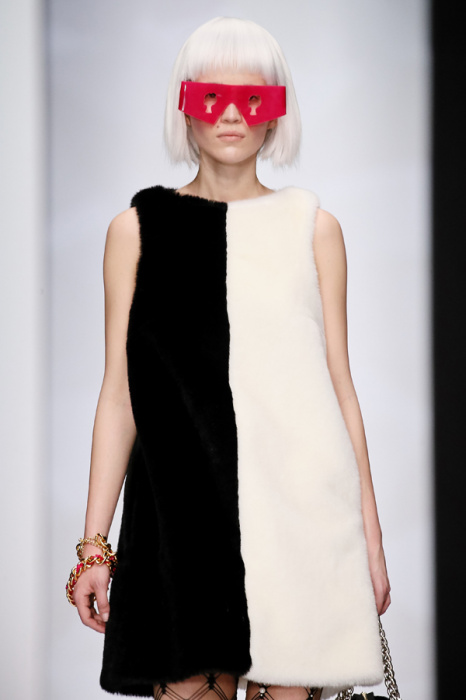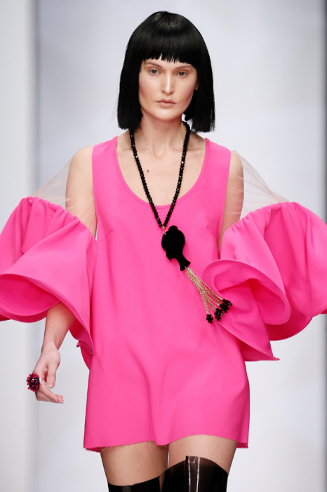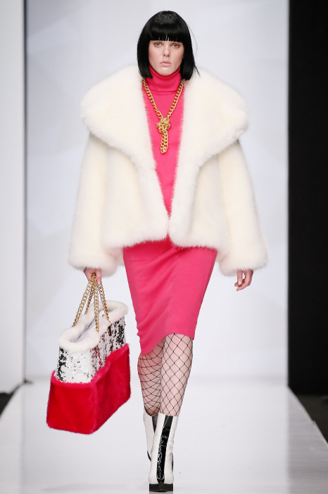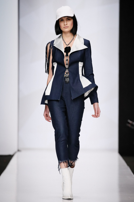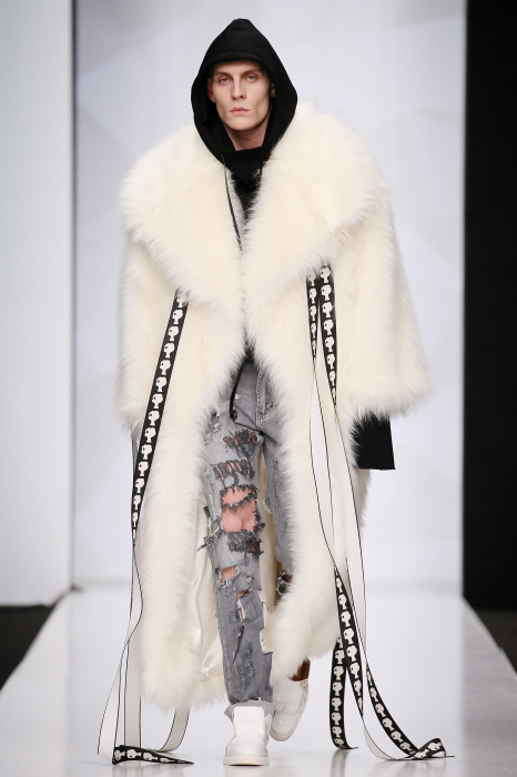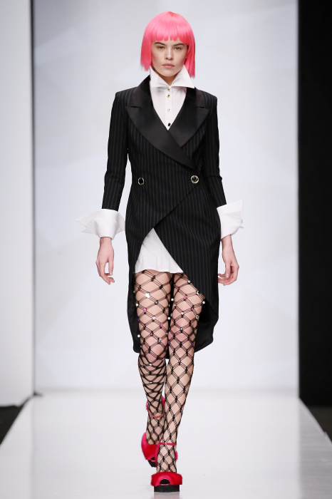 Вся коллекция дизайнера Bella Potemkina выполнена из модакрилового волокна Kanecaron, из которого создается высококачественный экомех. Цветовая палитра – яркая и многообразная. Это и фуксия, и пурпурный в сочетании с черно-белым монохромом – героиня бренда смелая, дерзкая, готовая к экспериментам. Все образы демонстрируют нарочитую небрежность, легкость, сексуальность и лоск. Короткие шорты, боди, ботфорты, лаковая кожа, пайетки и двубортные платья – никаких предрассудков, только смелое воплощение.
