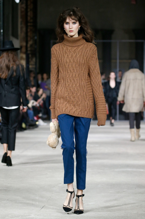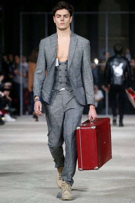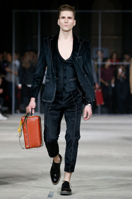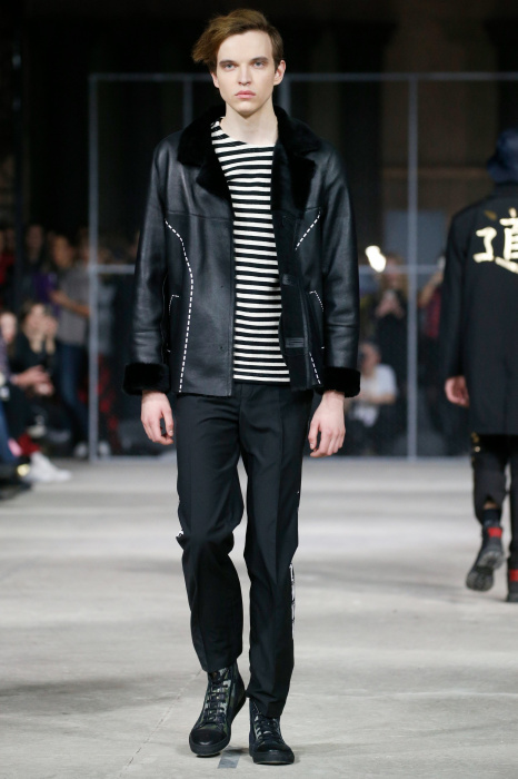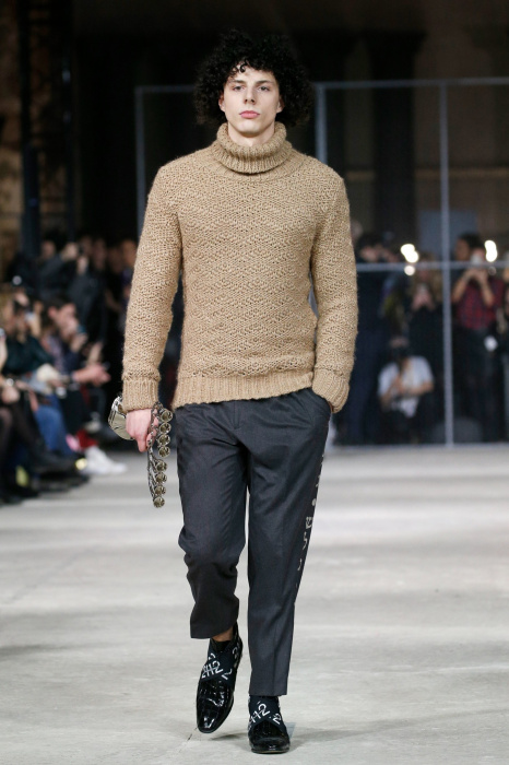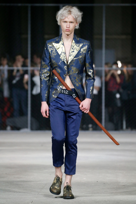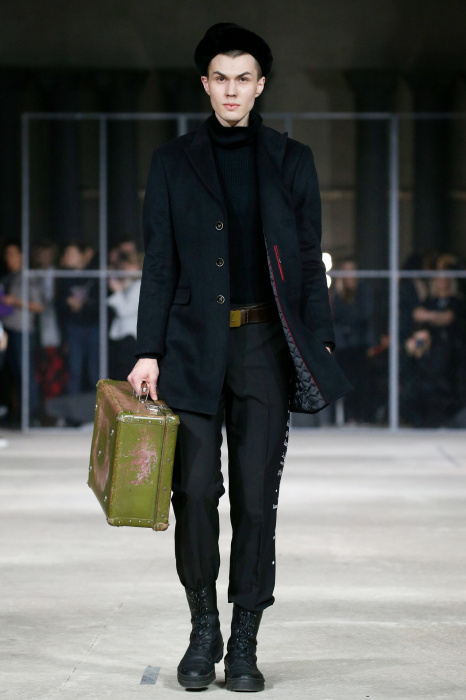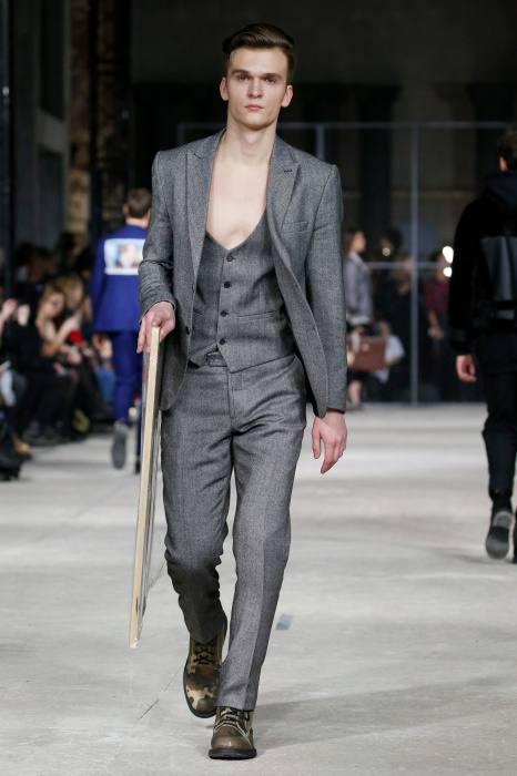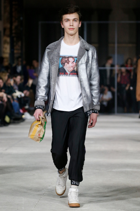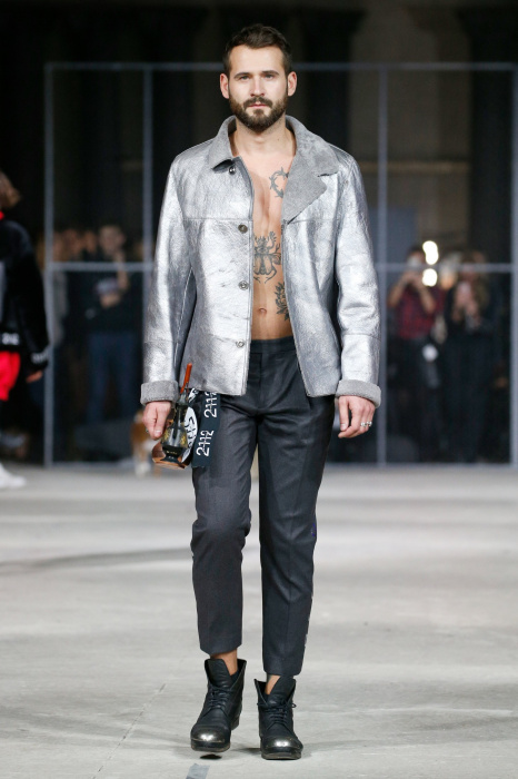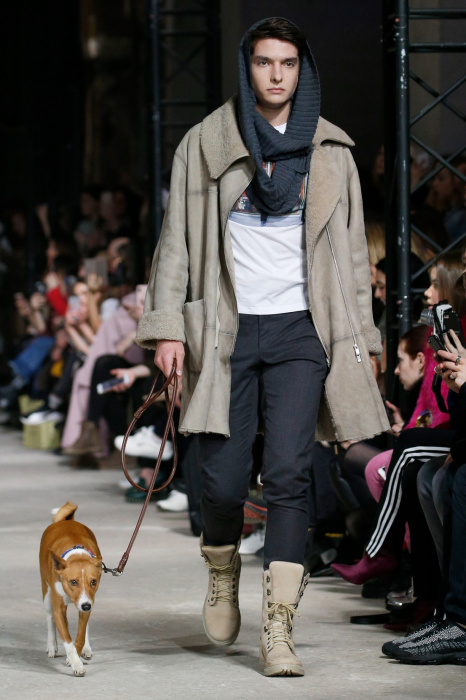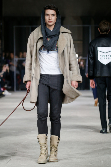 Показ бренда 21dot12 привлекает зрителя своим нестандартным подходом, где царствует множество элементов стиля жизни. В самом начале показа доминирует тема иероглифов и восточной стилистики в целом. Но дизайнер ломает стереотипы и представляет целое ассорти неизведанного. Здесь теплые дубленки - косухи с логотипом бренда в дуэте со свитшотами, обтягивающими черными брюками и классическими лодочками. Гостей умиляет собака, которая вышла на подиум вместе с моделью. Аксессуарами выступили самые разные элементы декора и не только, например подсвечники, турки для приготовления кофе, саквояж, пакет из фастфуда, большой постер фильма «Завтрак у Тиффани», а так же гитара. Присутствует тема дальних путешествий. Украшают мужские пиджаки и футболки яркий принт-знаменитая фотография поцелуя Брежнева и Хонеккера. Необычное дизайнерское решение-классический двусторонний пиджак на одной из моделей.