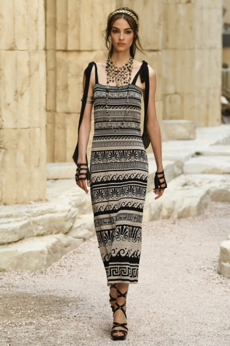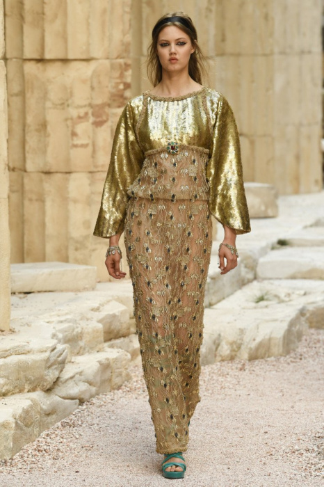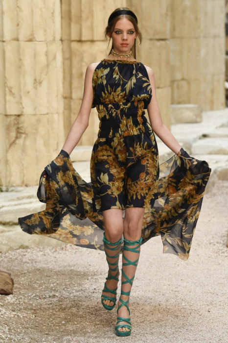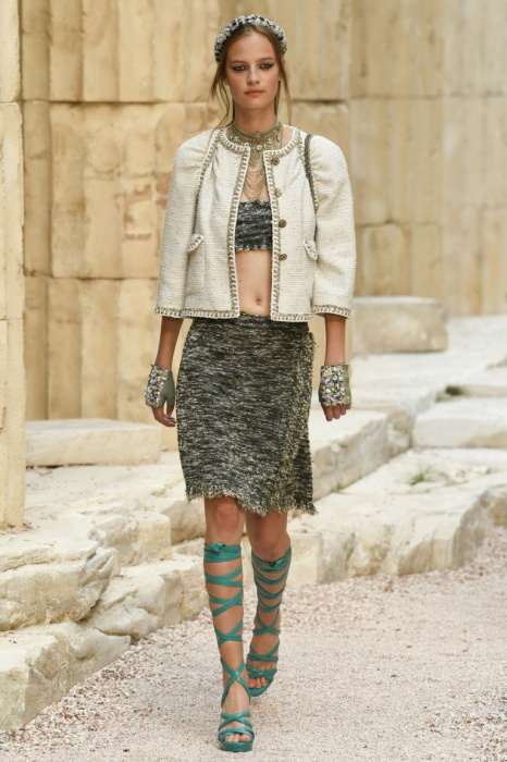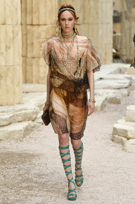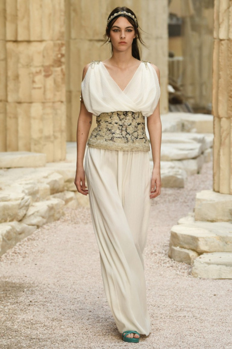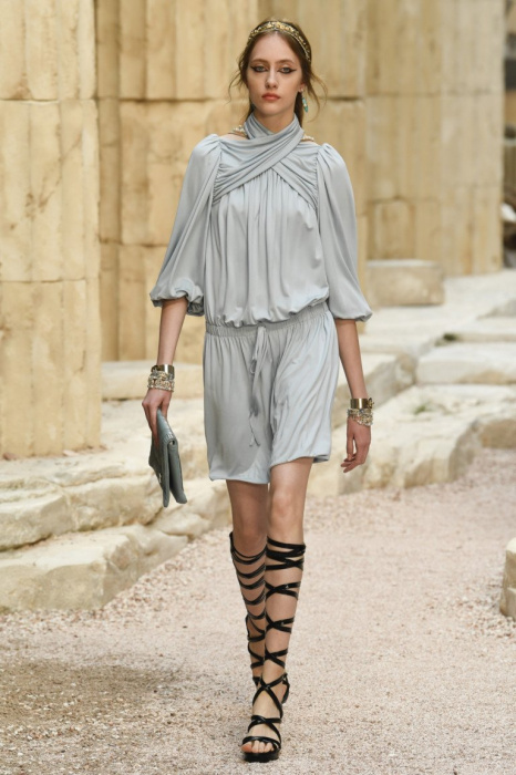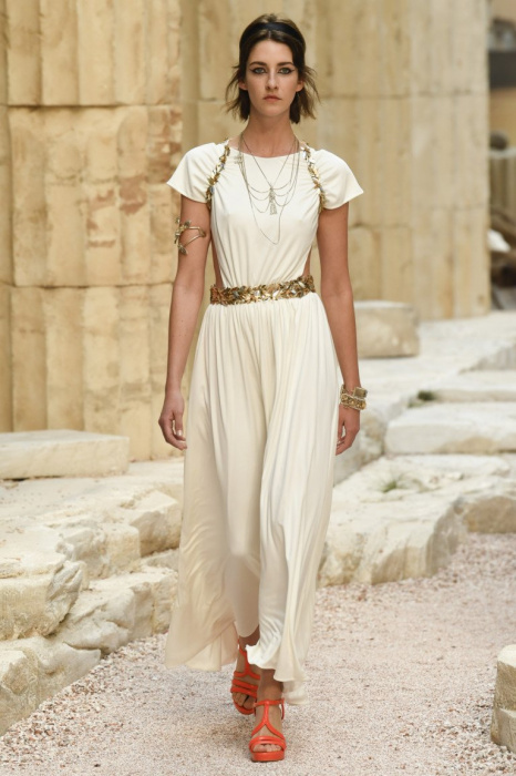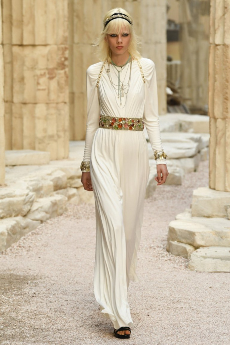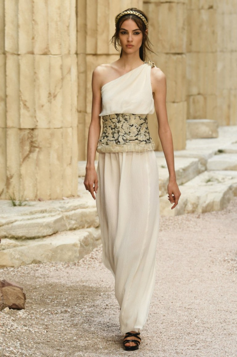 Показ оправдал все возлагаемые на него надежды и ожидания: платья-тоги и туники, доспехи гладиаторов, сандалии и мониста — античные мифы на современный лад среди «древних» руин в парижском Гран-Пале.