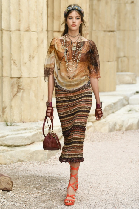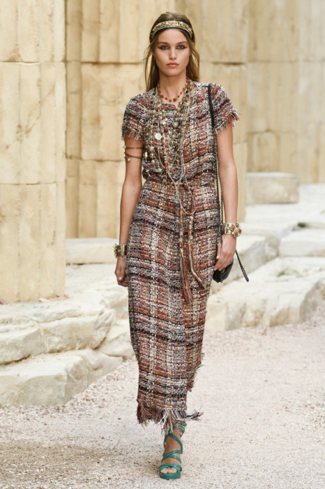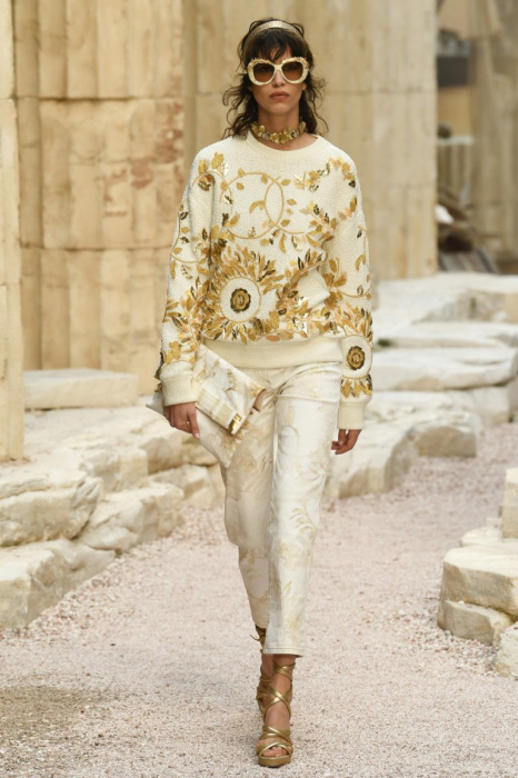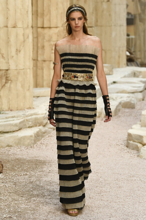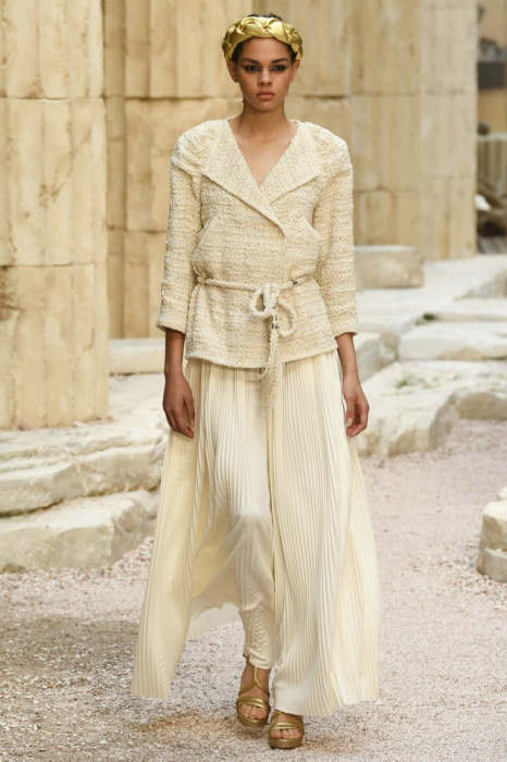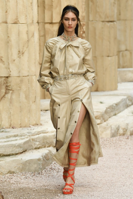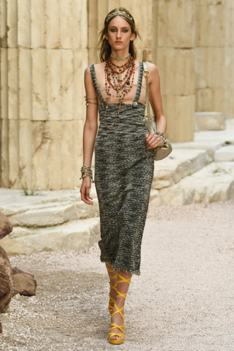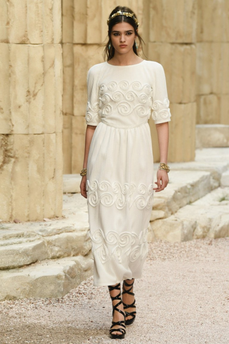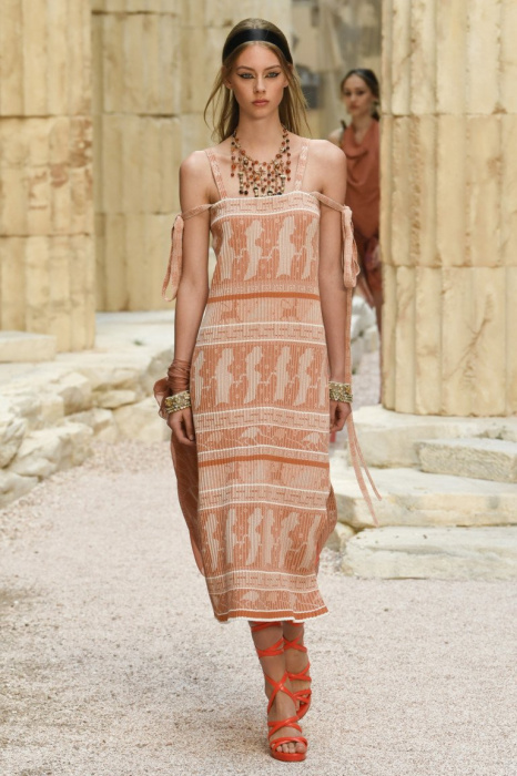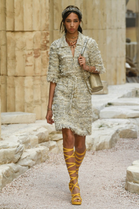 Показ оправдал все возлагаемые на него надежды и ожидания: платья-тоги и туники, доспехи гладиаторов, сандалии и мониста — античные мифы на современный лад среди «древних» руин в парижском Гран-Пале.