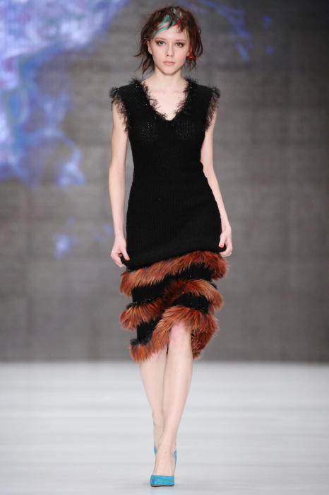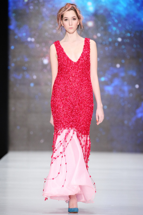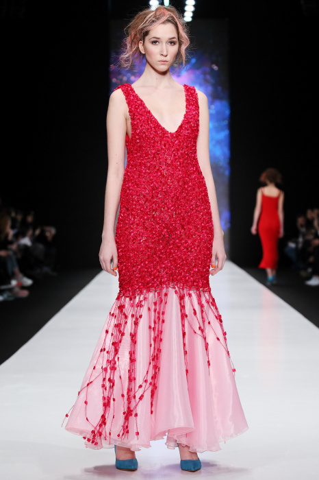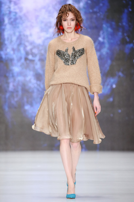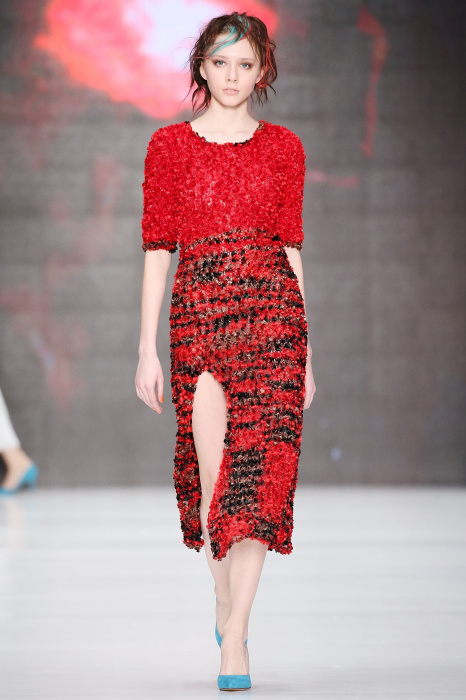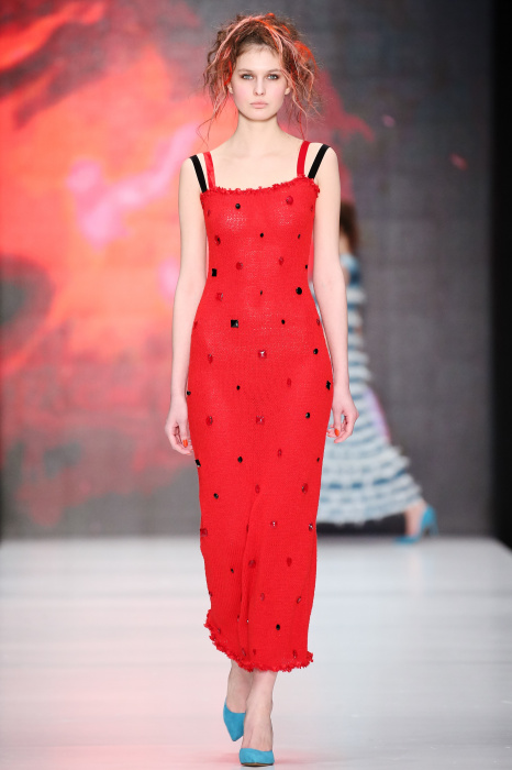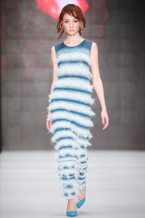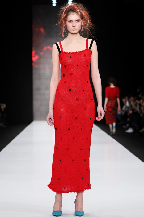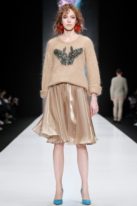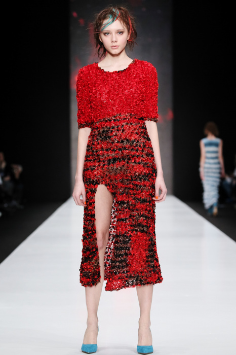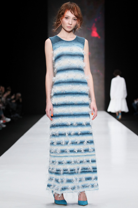 Третий день Mercedes-Benz Fashion Week Russia начался с показа дизайнера DARIA DASHINA. Уникальный российский бренд применяет тонкую ручную работу и новейшие технологии. В осенне-зимнем сезоне в стильную цельновязанную одежду смогут нарядиться не только женщины, но и мужчины. Специально для них DASHINA запустила линейку свитеров с крупными фактурными узорами и воротниками-гольфами. Трикотажные элементы ансамбля и аксессуары дополняют костюмы из натуральных тканей, платья и юбки с глянцевыми переливами. Разнообразные техники вплетения нитей позволили дизайнеру смешивать в одном изделии несколько цветов, получать эффект меланжа и градиенты. Основные тона коллекции – черный, белый, красный, голубой, лиловый и коричневый.