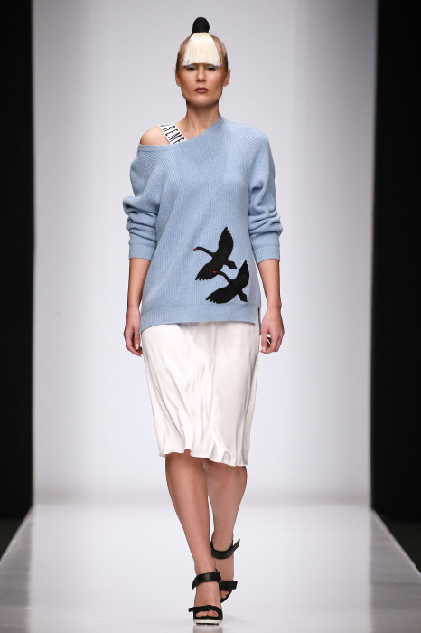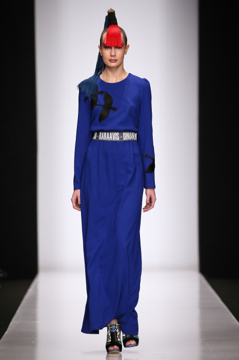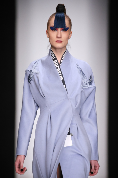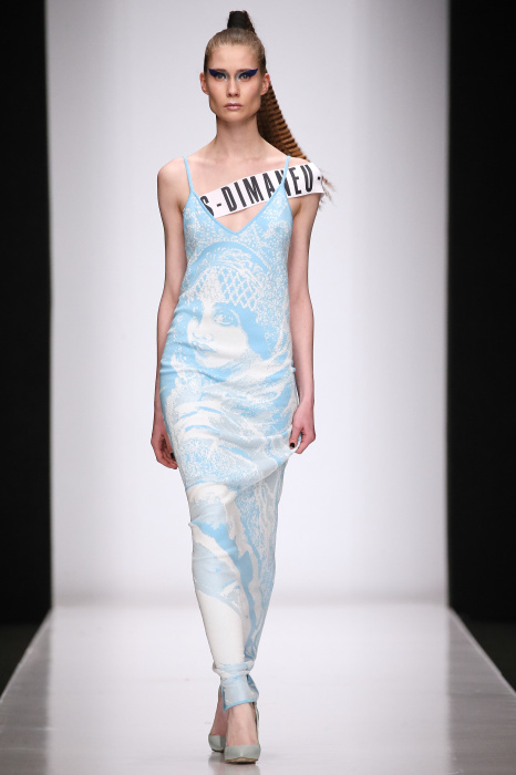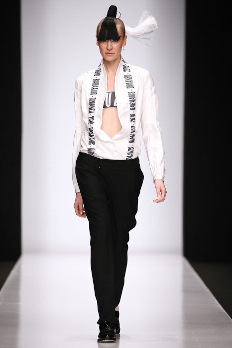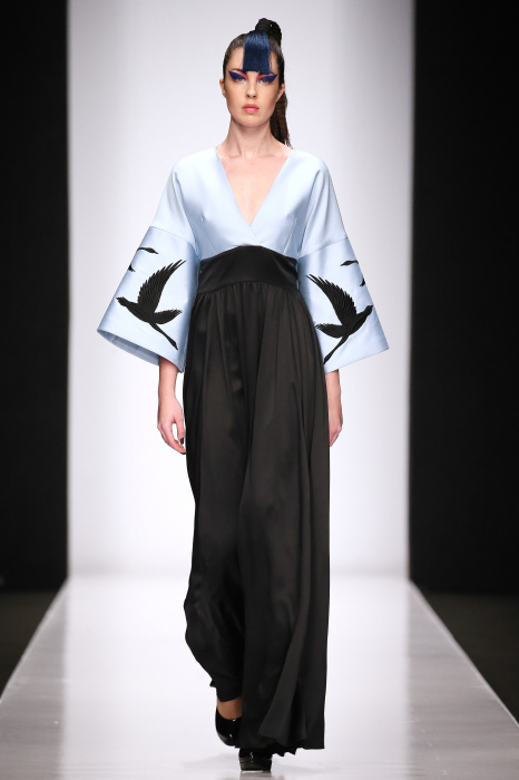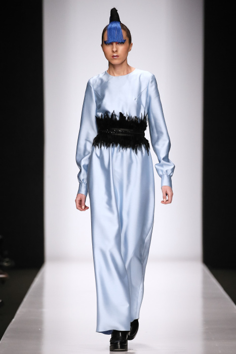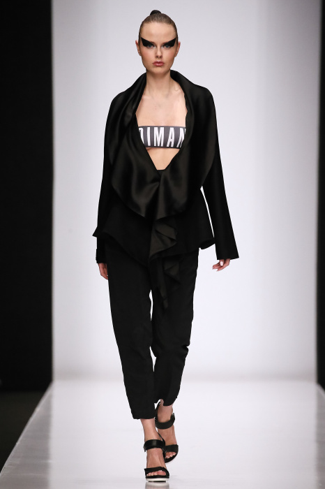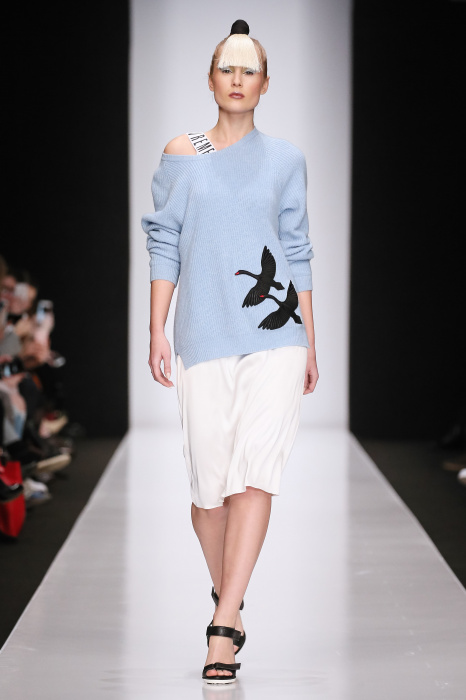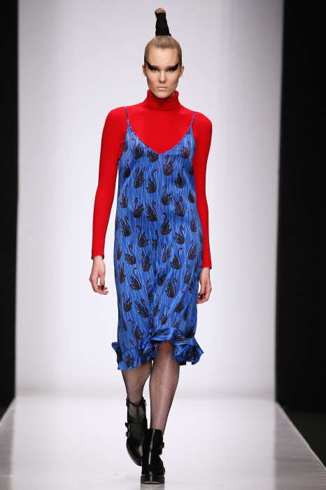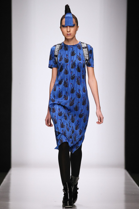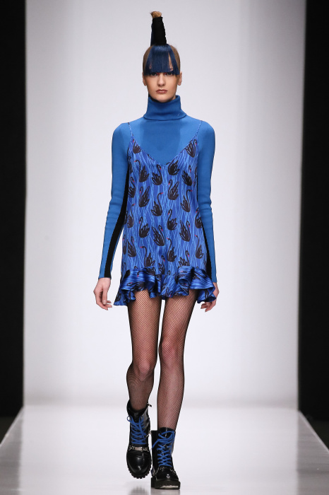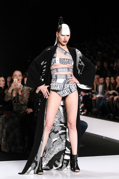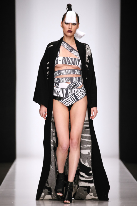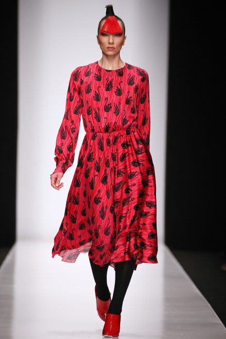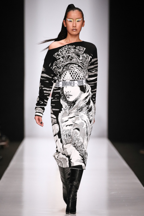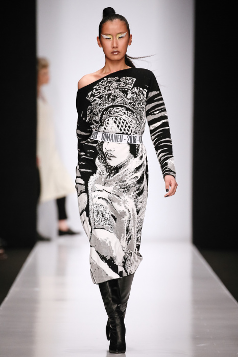 Героиня осенне-зимней коллекции DIMANEU – девушка, подобная врубелевской «Царевне-Лебедю»: непостижимая, незабываемая. Даже в откровенных нарядах ей удается сохранять свою тайну. Для коллекции традиционно использована минималистичная палитра: сочный красный, прохладный голубой, синий, белый и всепоглощающий черный. Лейтмотивом послужили вышитые стаи птиц и принты с изображением сказочной царевны. Силуэт гиперболизирован – то вытянут и прям, то вылеплен из пышных драпировок с подчеркнутой хрупкой талией. Помимо авторского кроя и паттернов появился новый узнаваемый элемент – брендированные ремешки в виде чокеров, поясов, бретелек шлейфом. Впервые дизайнер использует 3D-вязку для создания тончайшей кружевной ткани.
