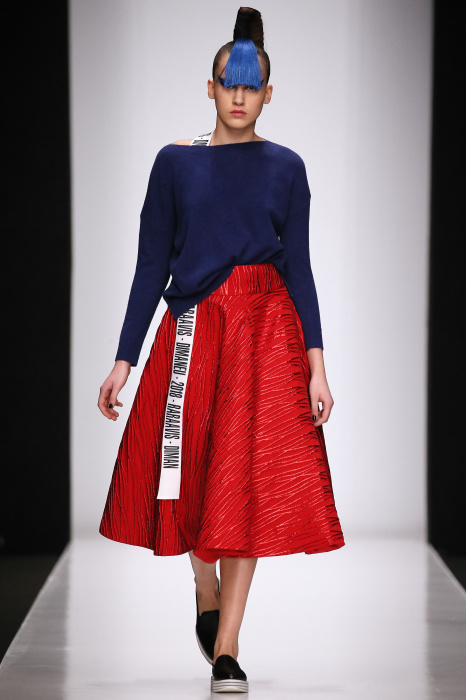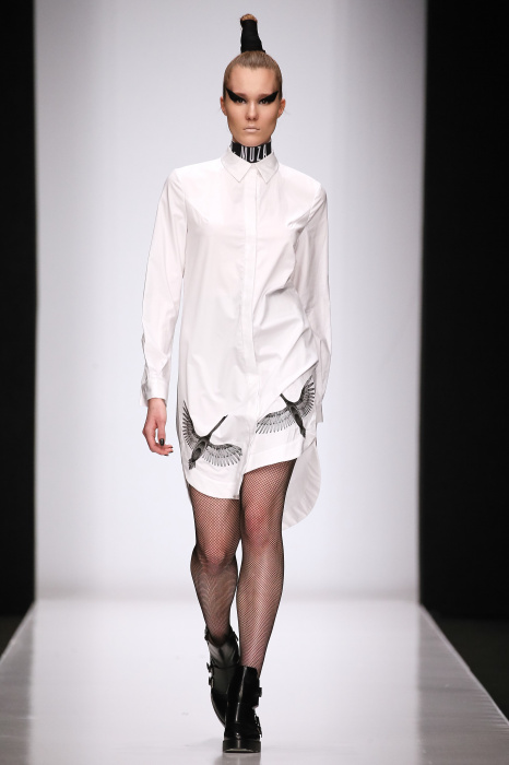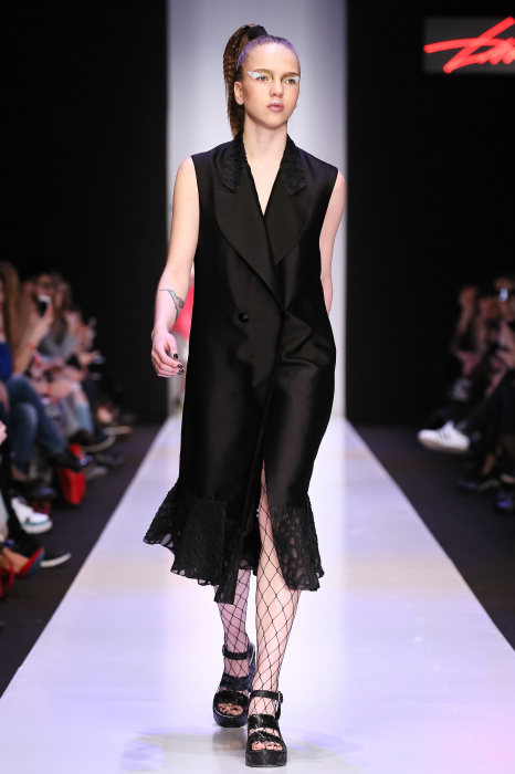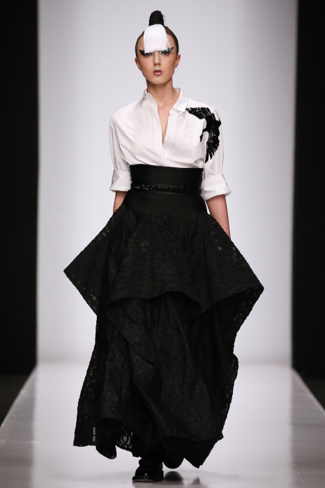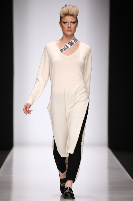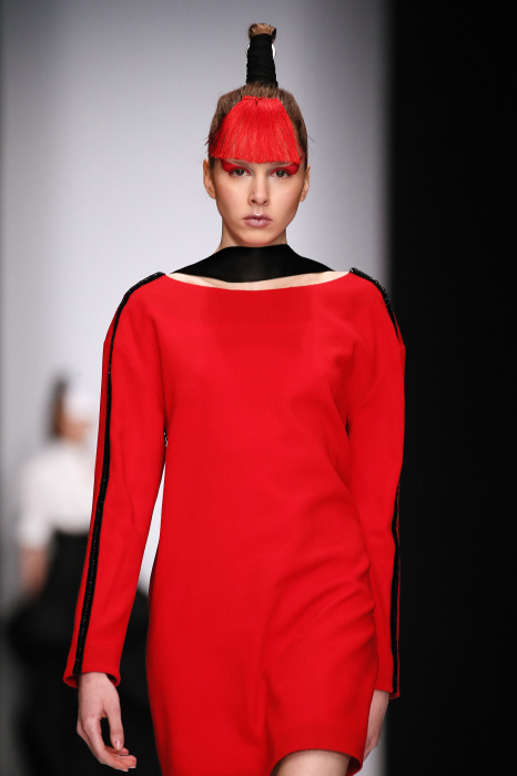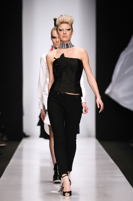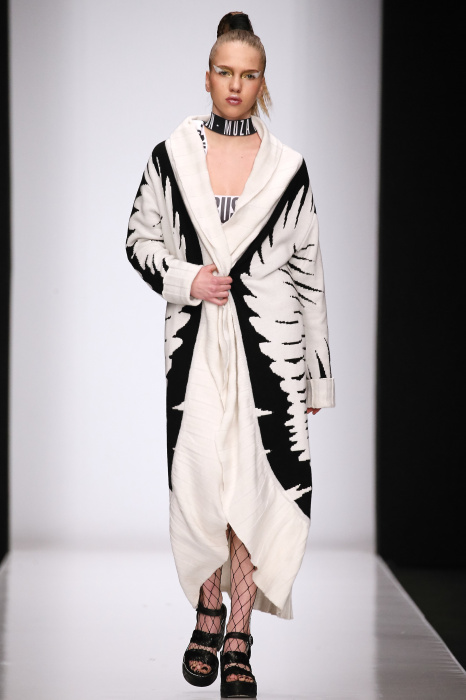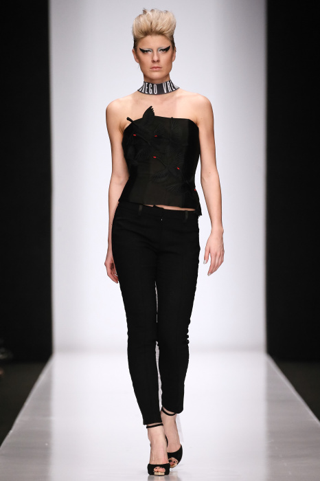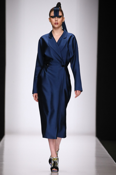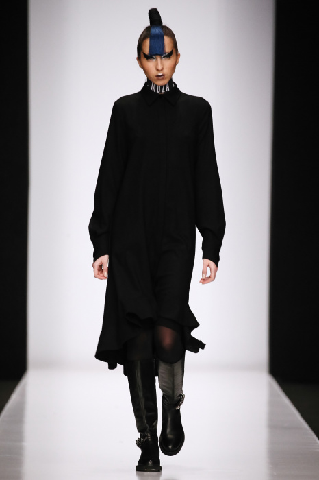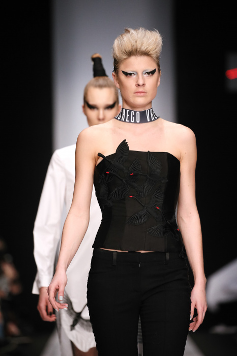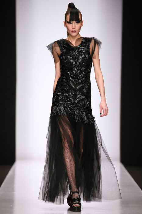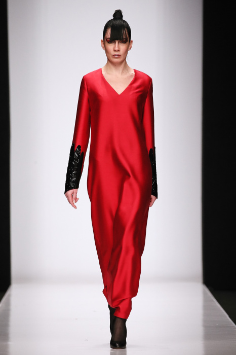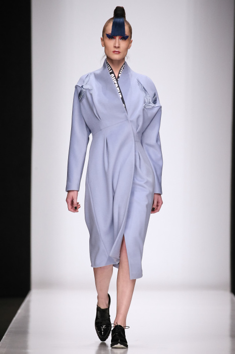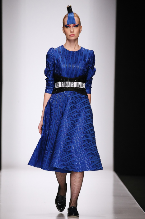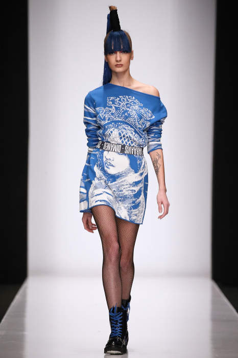 Героиня осенне-зимней коллекции DIMANEU – девушка, подобная врубелевской «Царевне-Лебедю»: непостижимая, незабываемая. Даже в откровенных нарядах ей удается сохранять свою тайну. Для коллекции традиционно использована минималистичная палитра: сочный красный, прохладный голубой, синий, белый и всепоглощающий черный. Лейтмотивом послужили вышитые стаи птиц и принты с изображением сказочной царевны. Силуэт гиперболизирован – то вытянут и прям, то вылеплен из пышных драпировок с подчеркнутой хрупкой талией. Помимо авторского кроя и паттернов появился новый узнаваемый элемент – брендированные ремешки в виде чокеров, поясов, бретелек шлейфом. Впервые дизайнер использует 3D-вязку для создания тончайшей кружевной ткани.