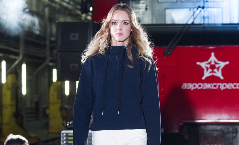 Передать стиль силуэтов основательницы Дома Carven и всей коллекции было решено с помощью места проведения показа – депо «Аэроэкспресс». Открыла мероприятие приветственная речь «стюардессы», которая попросила пристегнуть ремни – и не зря, от такого полета у всех гостей захватило дух! Хрупкие модели, выходя из многотонных аэроэкспрессов, дефилировали межу рельсами и подъемными кранами. Наряды были представлены в нескольких цветовых гаммах, что позволило оценить все доступные сочетания и стилистические решения.