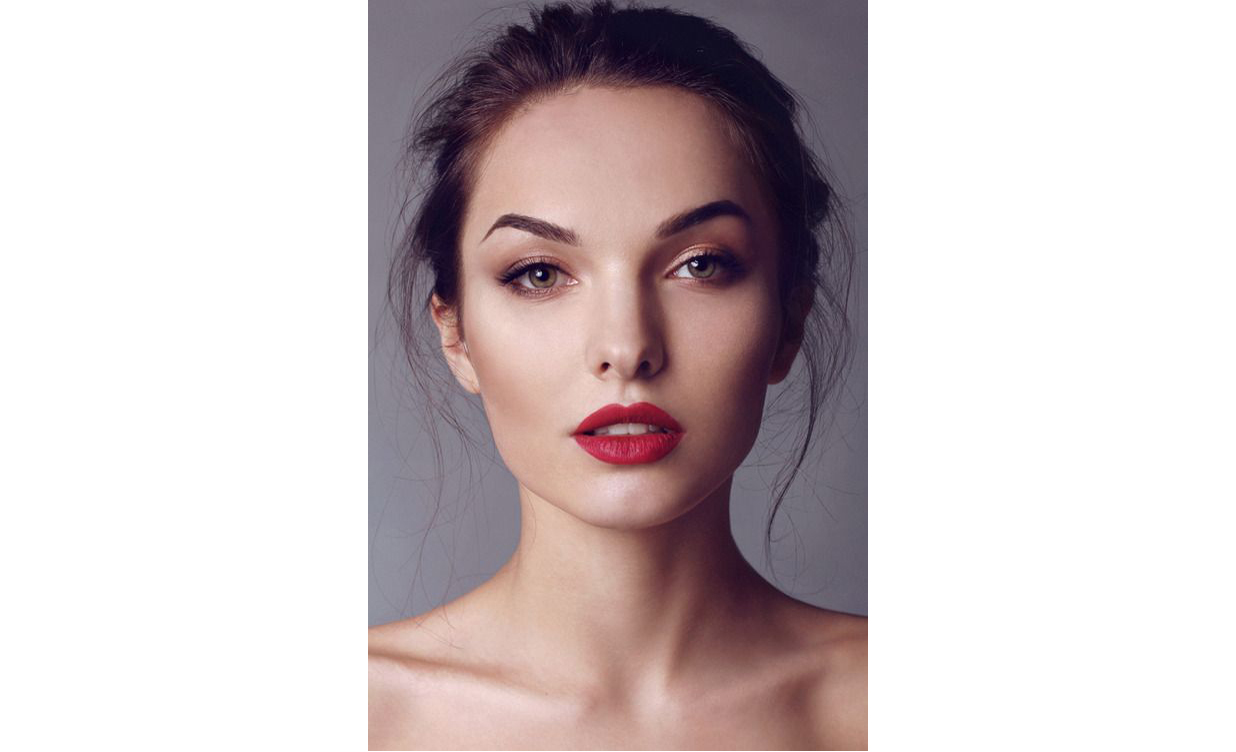 Беспроигрышный вариант новогоднего вечернего макияжа – страстный оттенок красного на губах. Элегантно и минималистично. В данном контексте акцент, очевидно, падает на помаду, а взгляд можно подчеркнуть короткими стрелками kitten eye в сочетании с пушистыми ресницами или пустить легкую дымку, выполненную в пепельных оттенках. Такой образ предполагает ровный тон лица, минимум румян, а главное роскошный наряд и праздничное настроение.