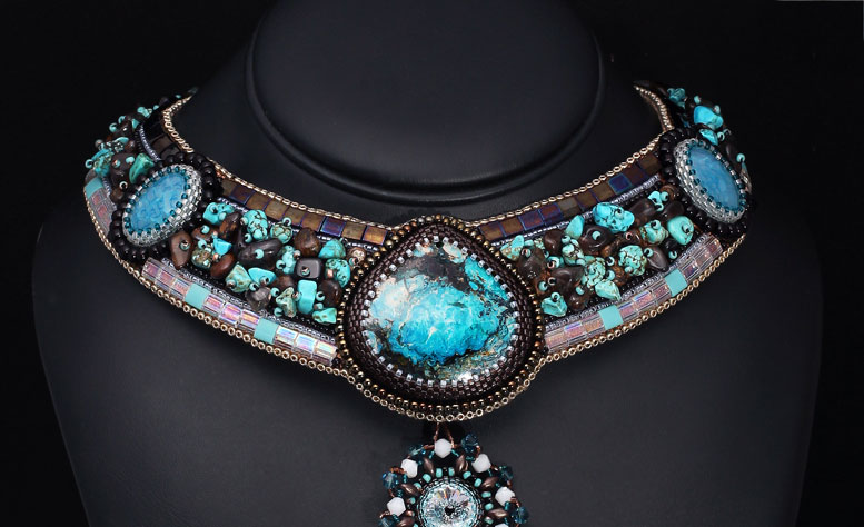 Разработкой эскизов и поиском идей для новой коллекции я занимаюсь сама, процесс этот небыстрый и непростой, думаю, я в этом не оригинальна: источники вдохновения, их поиск, преобразование в форму – это сложный, интересный, иногда и мучительный путь, продиктованный прежде всего порывом творить красоту такой, какой я ее вижу и понимаю, и приправленный огромным желанием делиться этим пониманием и дарить его миру. Плюс оглядка на тренды – безусловно, я слежу за модными показами одежды и аксессуаров, и это накладывает свой оттенок на коллекции. Что касается процесса производства, конечно, у меня есть помощницы – умелые мастерицы, ключевое слово здесь – умелые, так как на сегодняшний день все мои украшения изготавливаются вручную с применением различных техник и секретов, и чтобы изделие было высококачественным, необходимо этими секретами владеть в совершенстве. Кого-то из своих подмастерьев я обучала, кого-то нашла уже с готовым багажом знаний и умений. Сама я до сих пор довольно много работаю руками, иногда проще создать колье из новой коллекции самой, чем рисовать его и объяснять принцип создания, на то есть ряд причин: мне важно чувствовать материалы, их пропорции и баланс; а так же почти все украшения, изготавливаемые на заказ, я делаю сама.