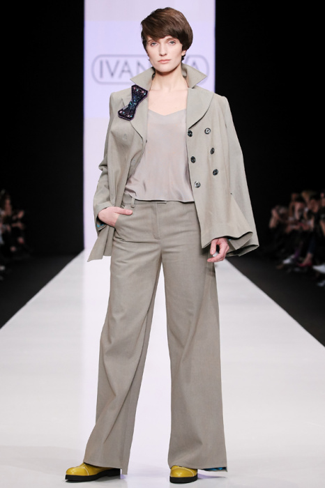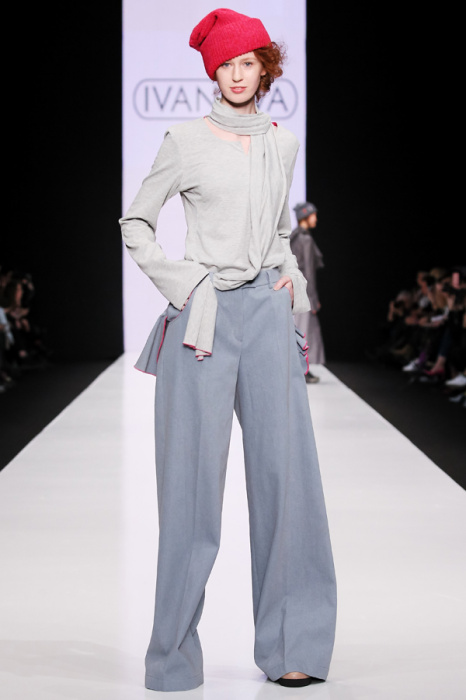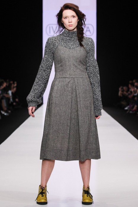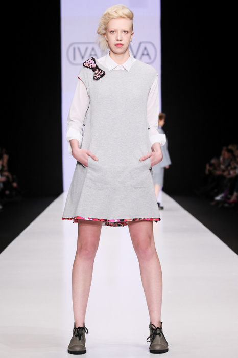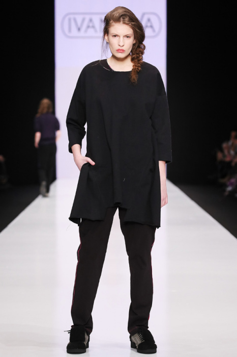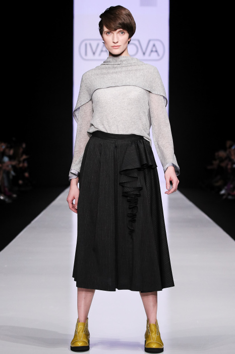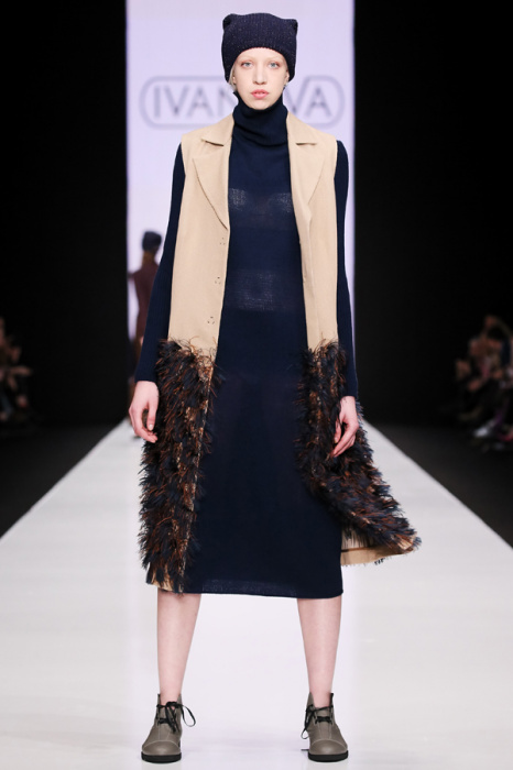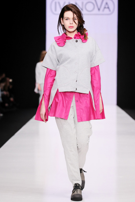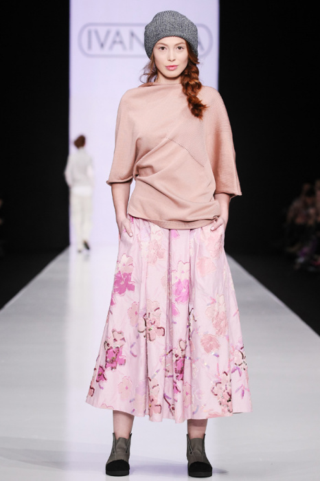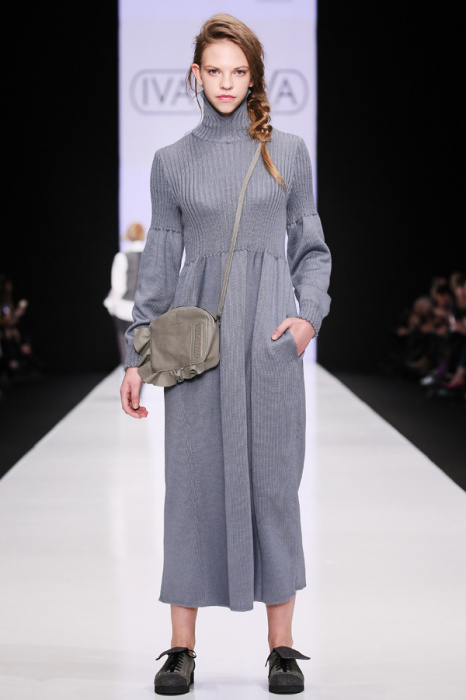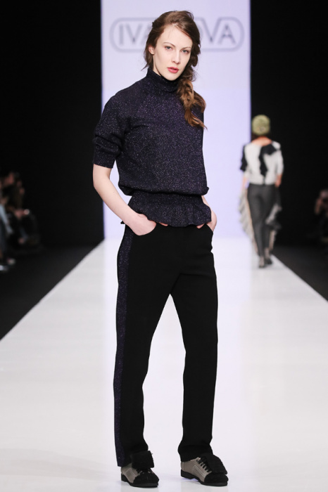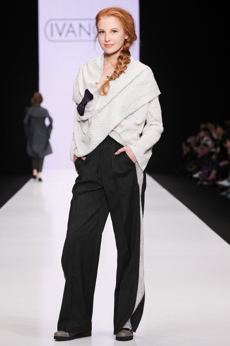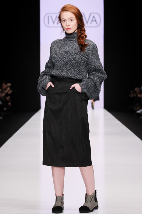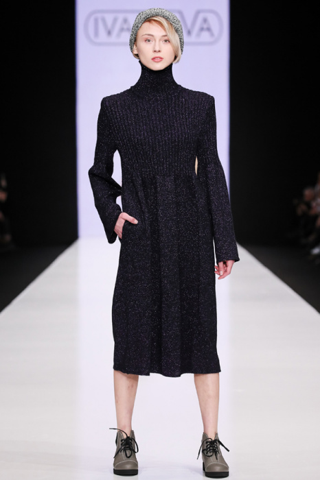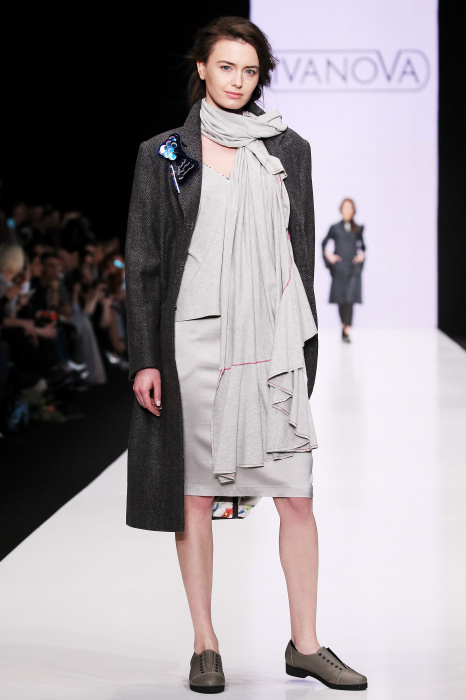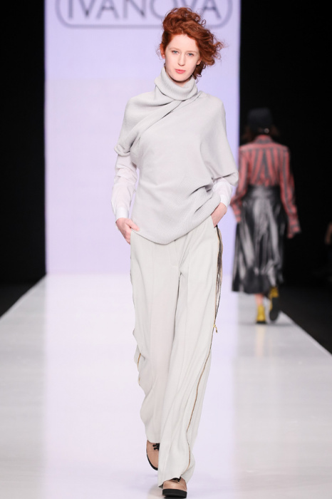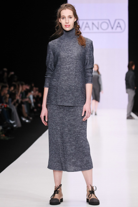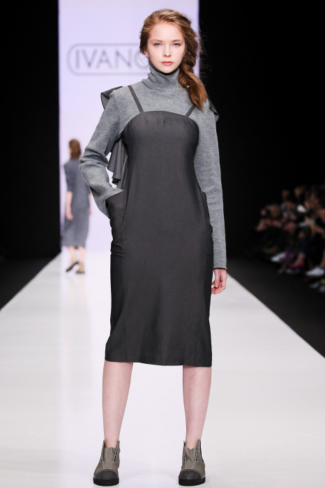 Коллекция IVANOVA сезона осень-зима/2017-2018 «Барышня/хулиган» воплощает двойственность современной женской натуры. Дизайнер смело экспериментирует с формами и фактурами, а также играет с различными материалами. Плотная шерсть, твид, вязаный трикотаж, шелк позволяют создавать интересные формы, сохраняя иллюзию мягкости и легкости. В цветовом решении дизайнер использует нейтральные оттенки серого с добавлением розового и нефритового цветов.