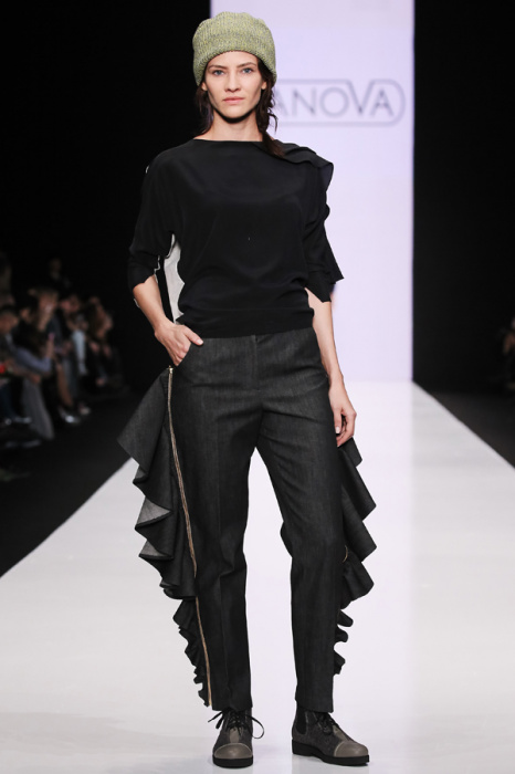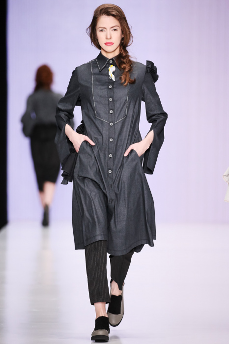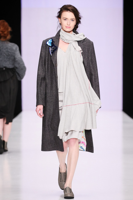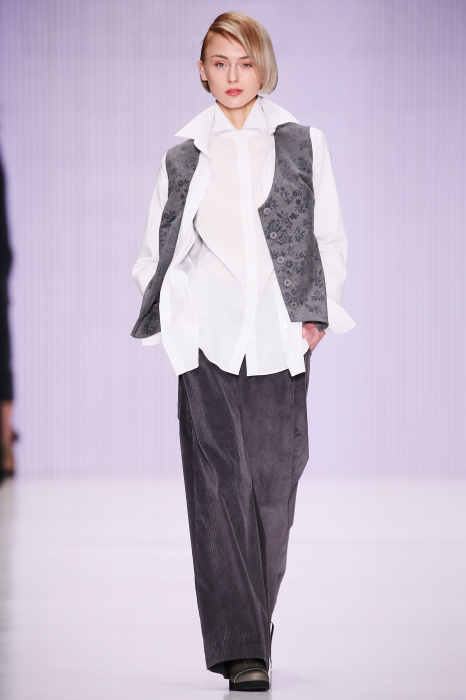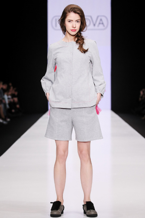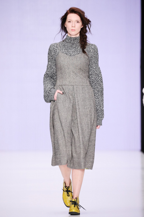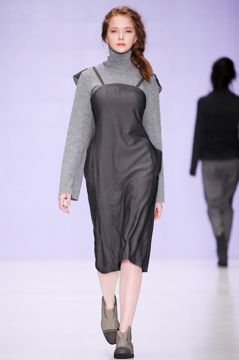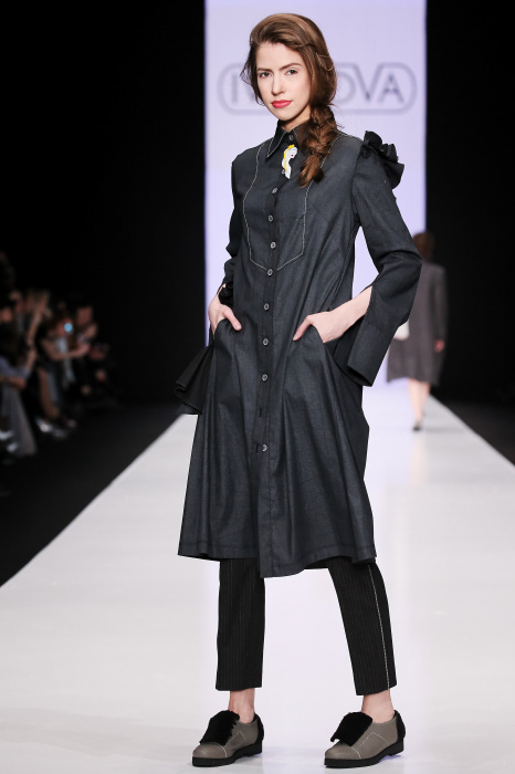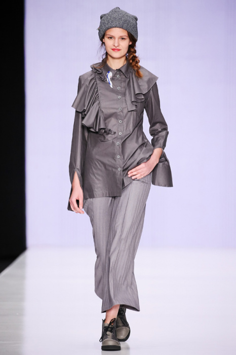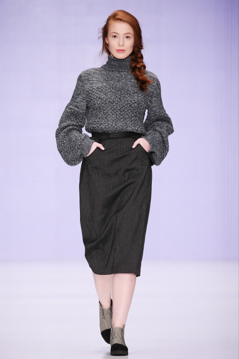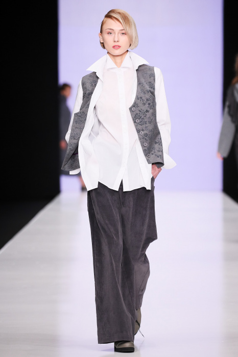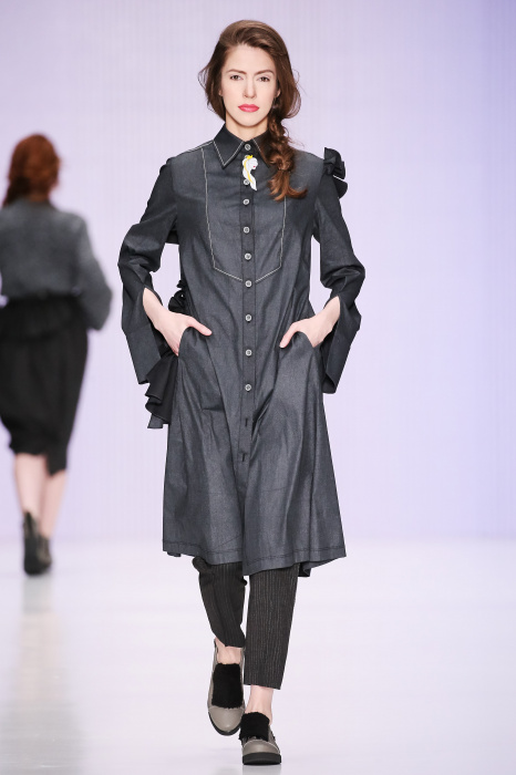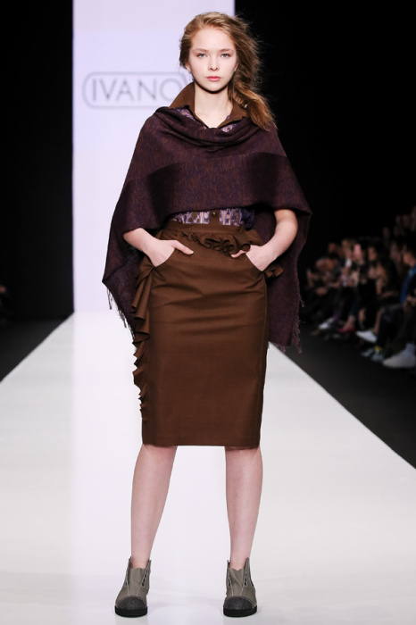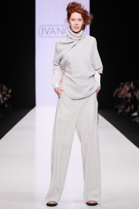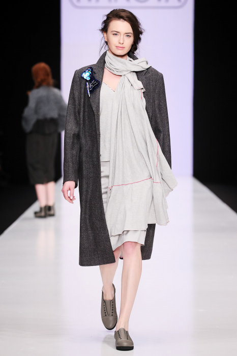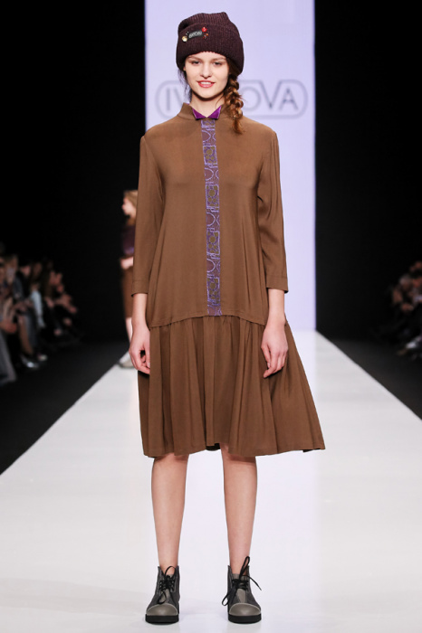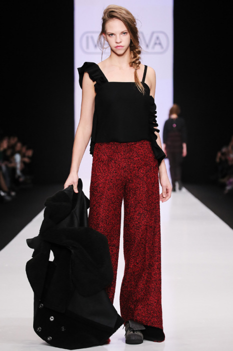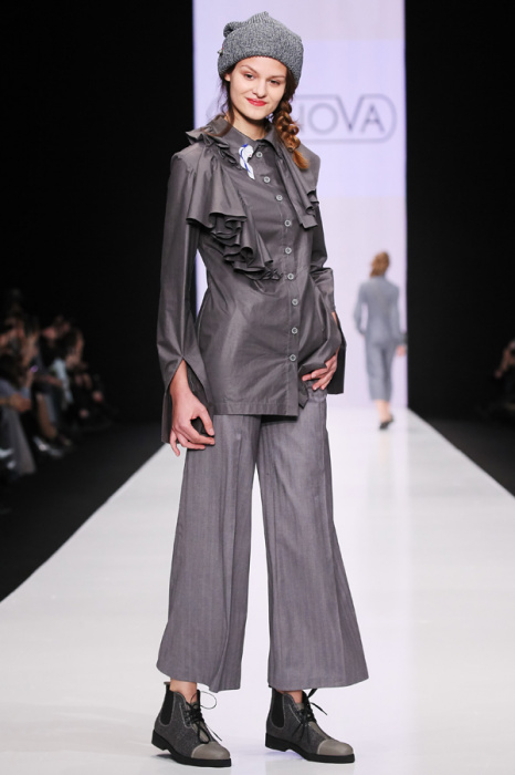 Коллекция IVANOVA сезона осень-зима/2017-2018 «Барышня/хулиган» воплощает двойственность современной женской натуры. Дизайнер смело экспериментирует с формами и фактурами, а также играет с различными материалами. Плотная шерсть, твид, вязаный трикотаж, шелк позволяют создавать интересные формы, сохраняя иллюзию мягкости и легкости. В цветовом решении дизайнер использует нейтральные оттенки серого с добавлением розового и нефритового цветов.