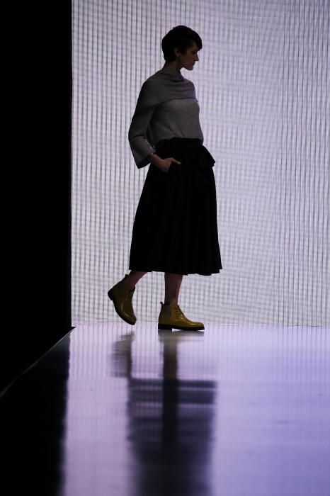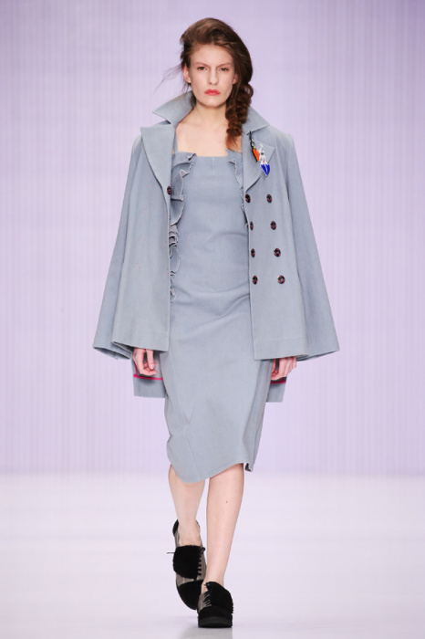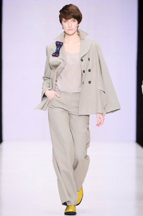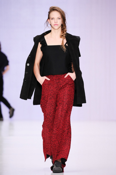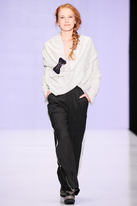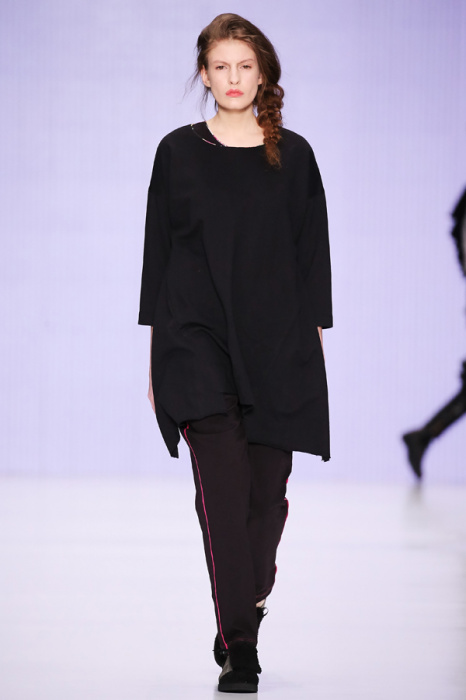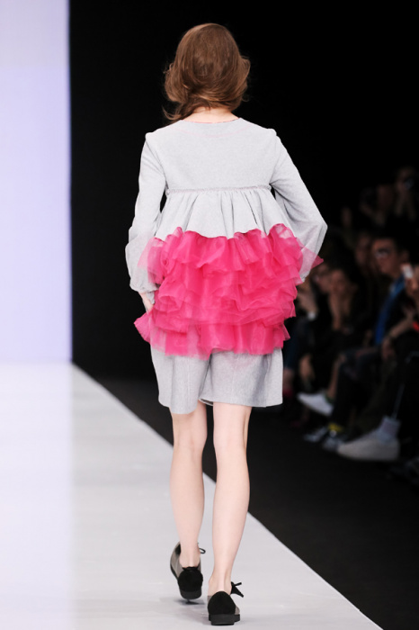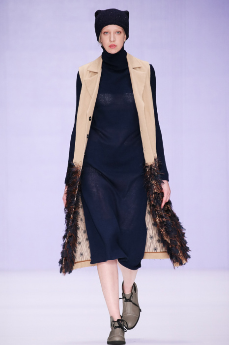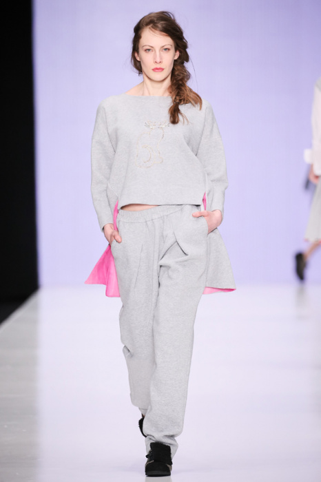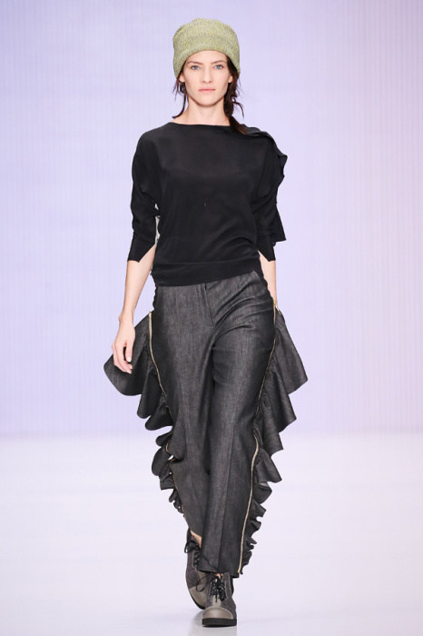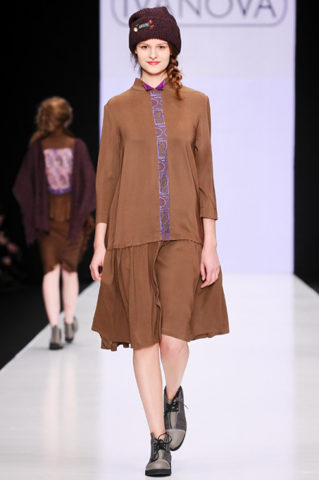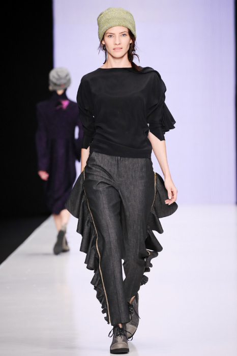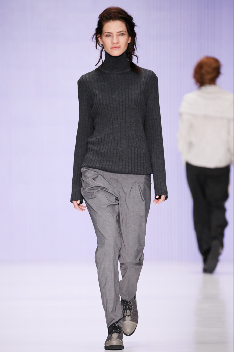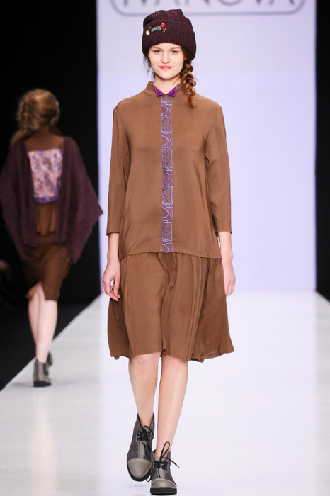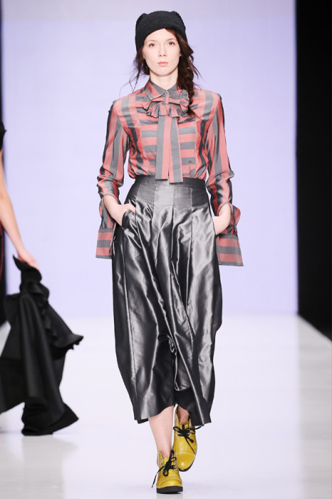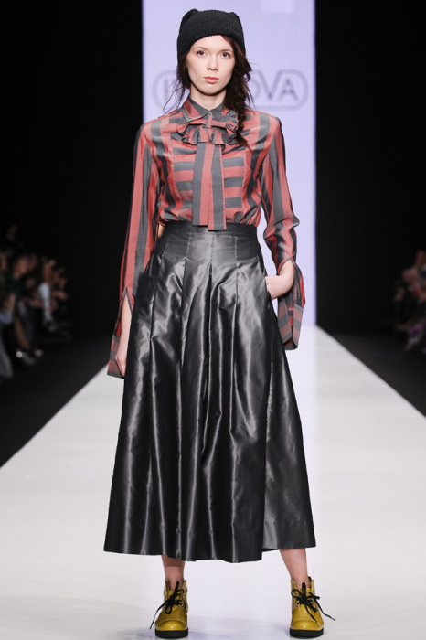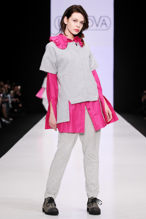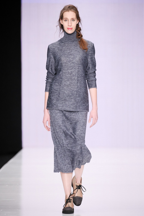 Коллекция IVANOVA сезона осень-зима/2017-2018 «Барышня/хулиган» воплощает двойственность современной женской натуры. Дизайнер смело экспериментирует с формами и фактурами, а также играет с различными материалами. Плотная шерсть, твид, вязаный трикотаж, шелк позволяют создавать интересные формы, сохраняя иллюзию мягкости и легкости. В цветовом решении дизайнер использует нейтральные оттенки серого с добавлением розового и нефритового цветов.