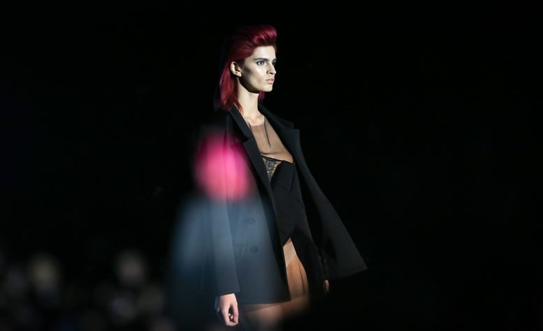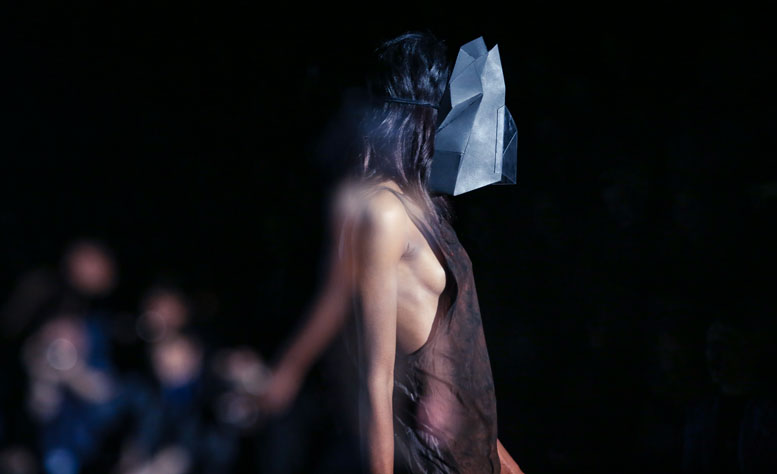 В этот вечер на подиуме невозможно было увидеть туфли на каблуке, кружева или рюши. Асимметричные формы, сложные драпировки и dark-fashion - вот стиль бренда Pirosmani, который можно назвать настоящим арт-хаусом отечественного мира моды. Очевидно, что любимый цвет дизайнера - черный. Используя преимущественно его и акцентируя внимание на необычном покрое и деталях, Евгения Малыгина создает уникальные и невероятно стильные вещи.