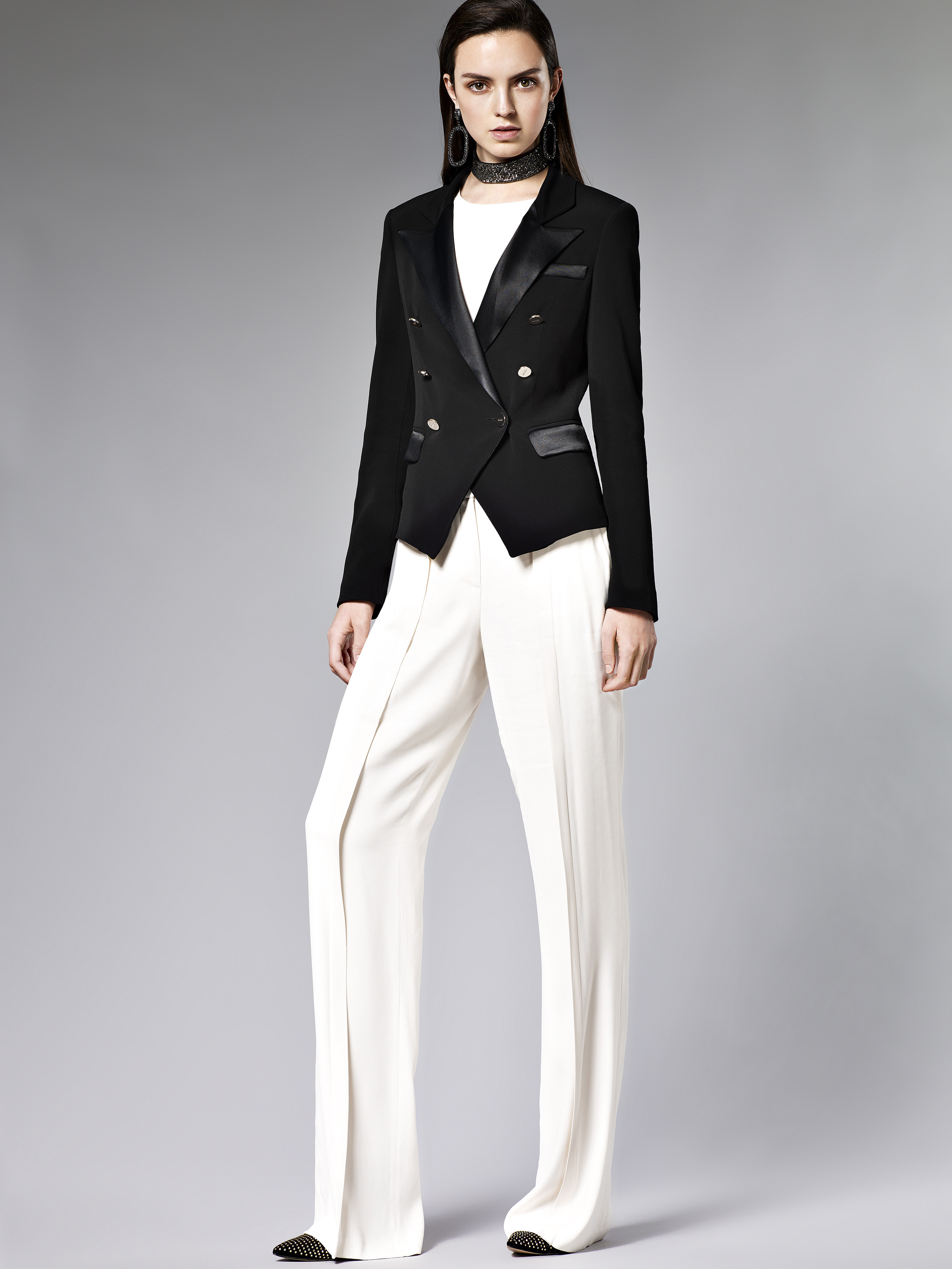 В подборке представлены разные стили, фасоны, цветовые решения и индивидуальный взгляд дизайнеров брендов VERSACE, LIU JO и Tommy Hilfiger на выражение женственности посредством мужских деталей брючного костюма.