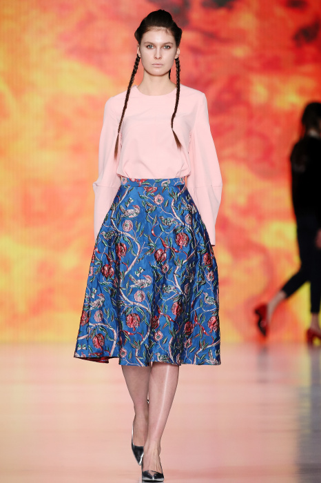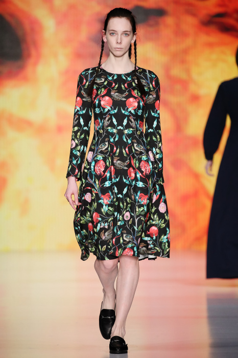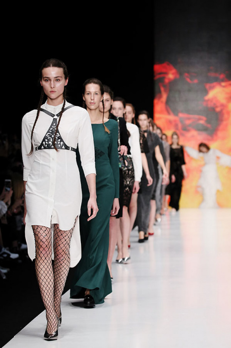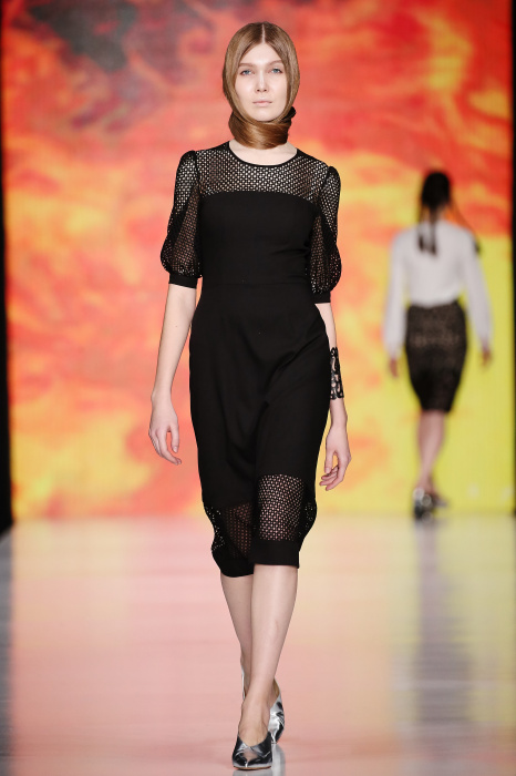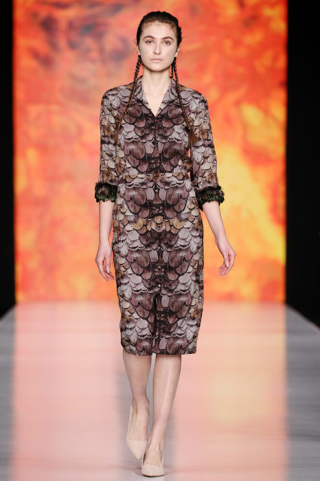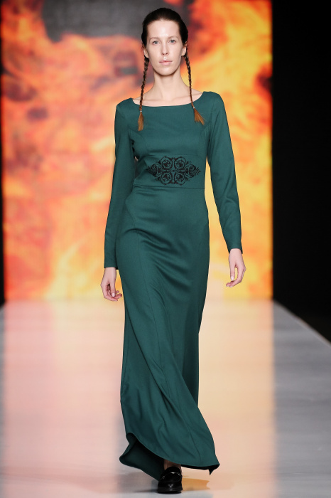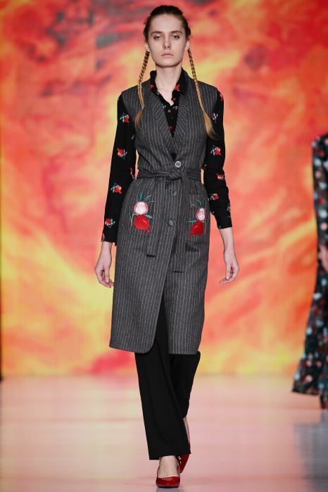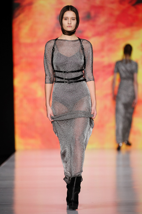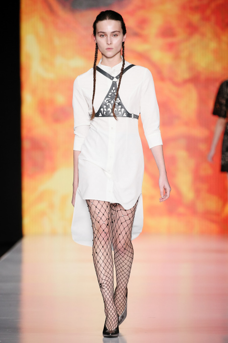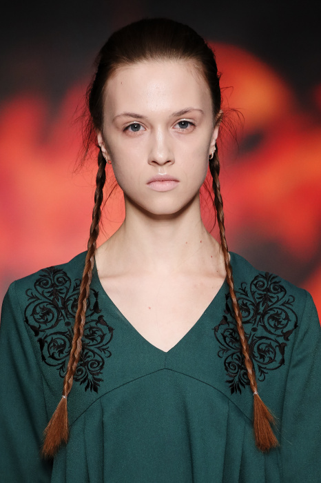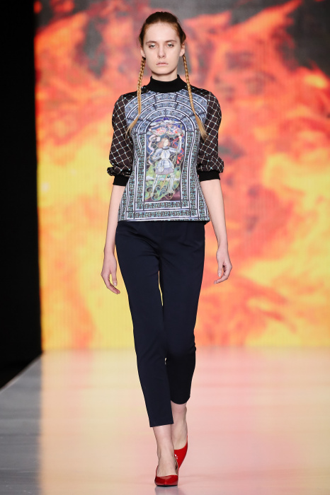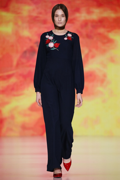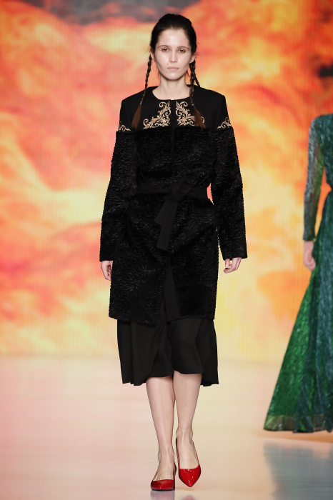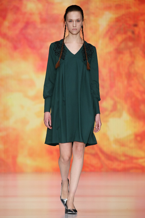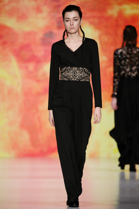 Ksenia Knyazeva вдохновилась многогранностью женщины. Героиней коллекции стала Жанна Д'Арк, соединяющая хрупкость и воинственность, открытость и тайну. Сочетание воплотилось в минималистичных приталенных платьях, свитшотах и пальто-халатах, украшенных отделкой из перьев и вышивкой в форме петуха.