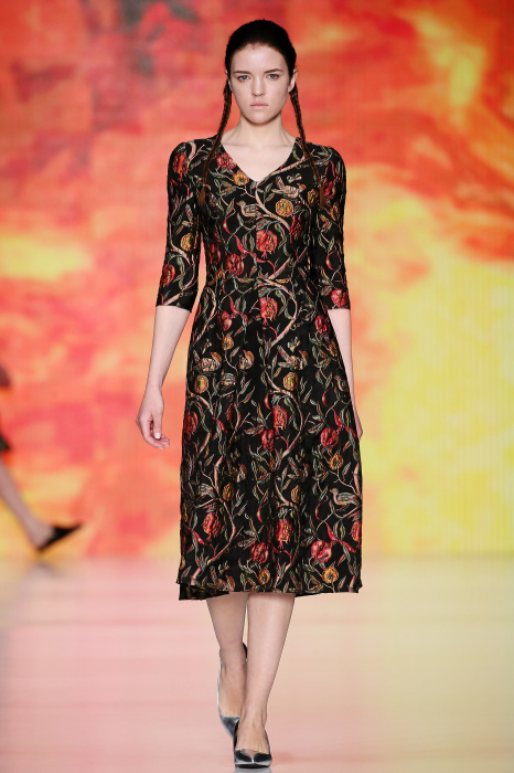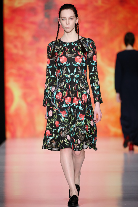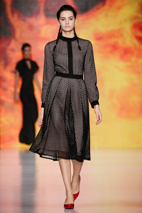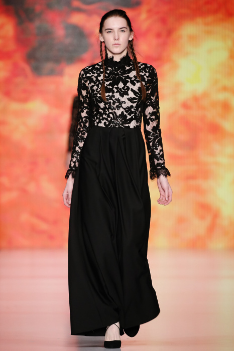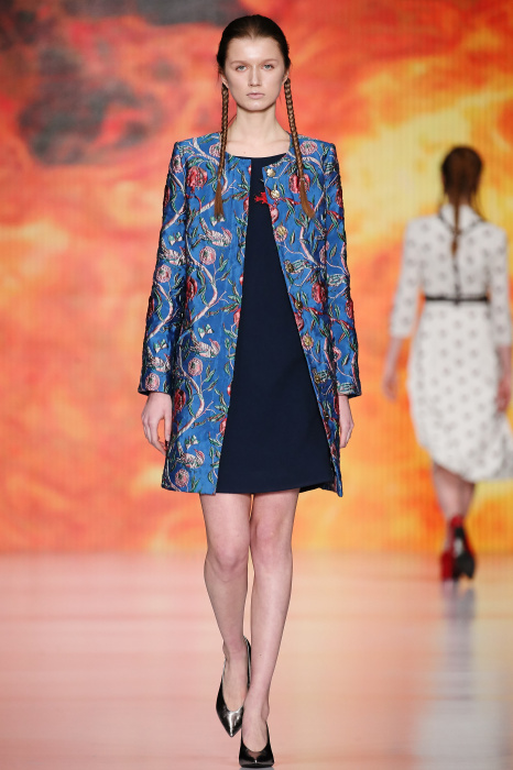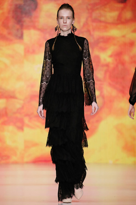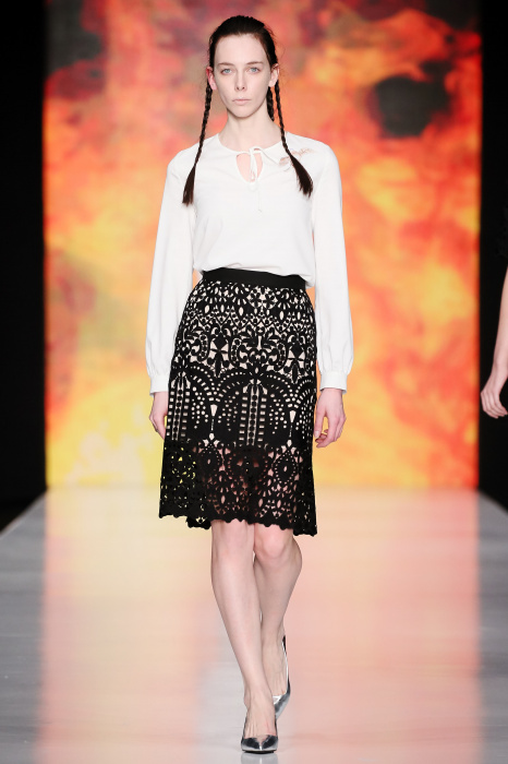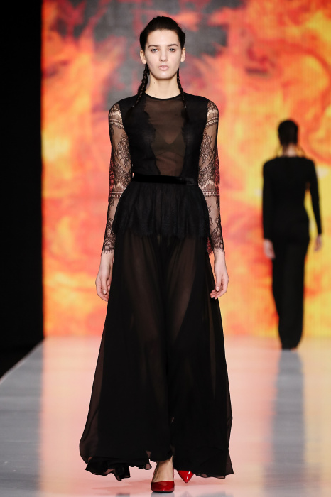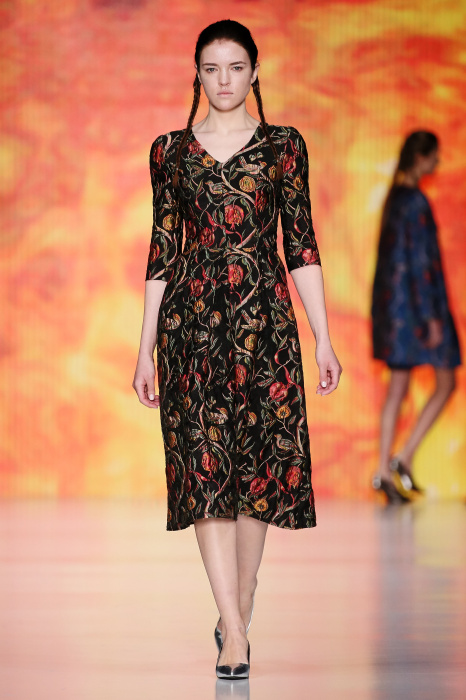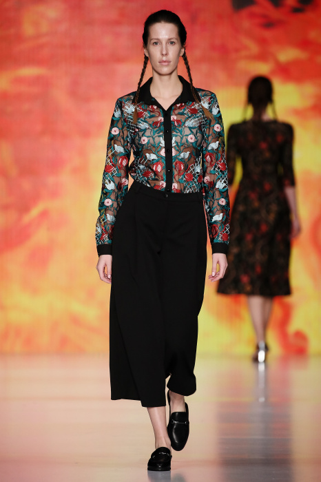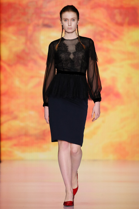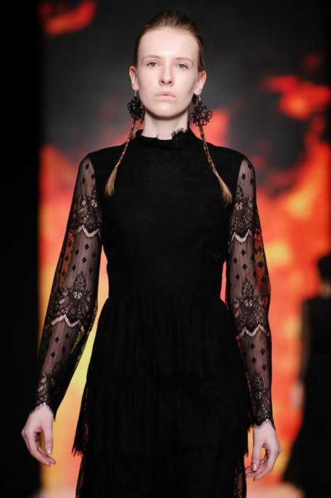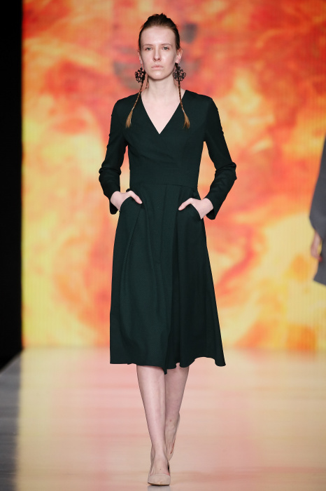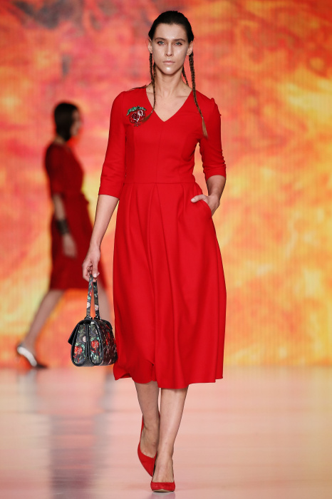 Ksenia Knyazeva вдохновилась многогранностью женщины. Героиней коллекции стала Жанна Д'Арк, соединяющая хрупкость и воинственность, открытость и тайну. Сочетание воплотилось в минималистичных приталенных платьях, свитшотах и пальто-халатах, украшенных отделкой из перьев и вышивкой в форме петуха.