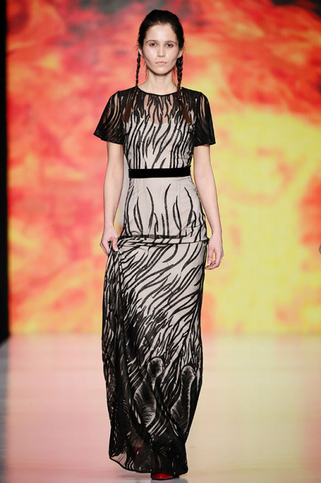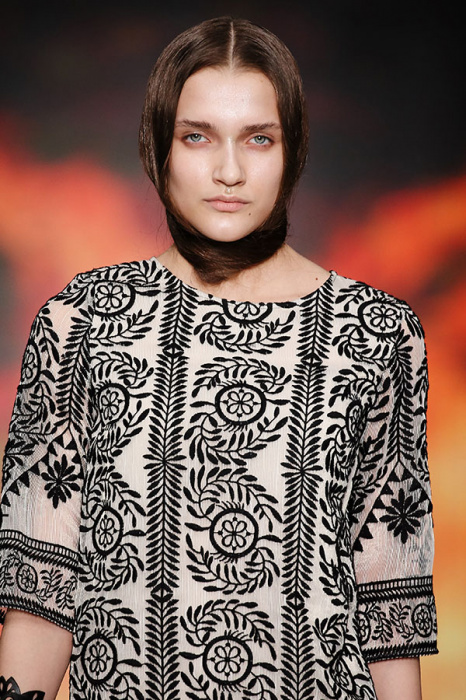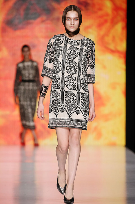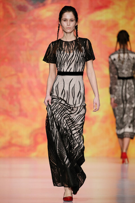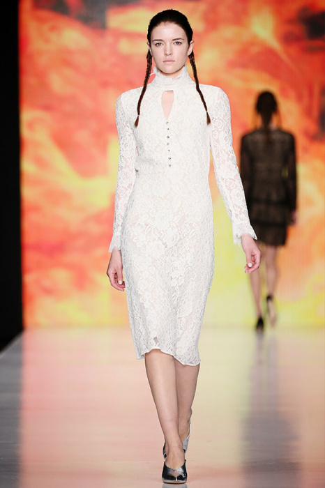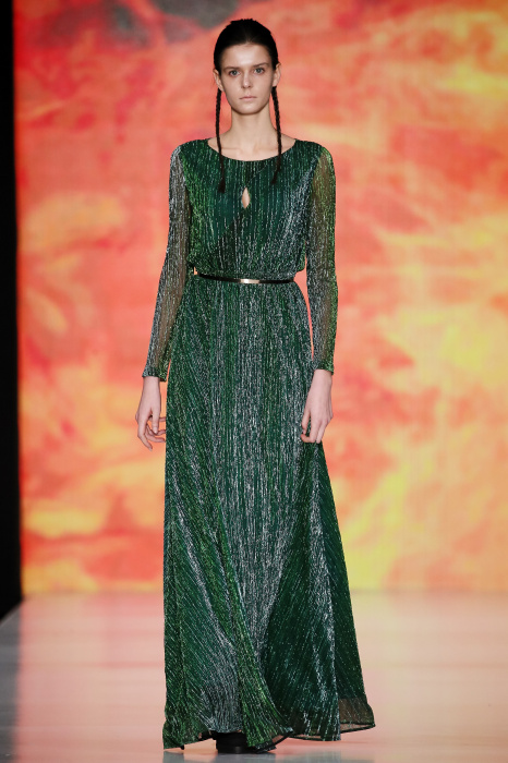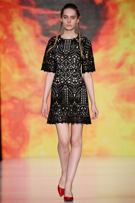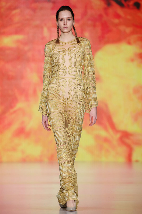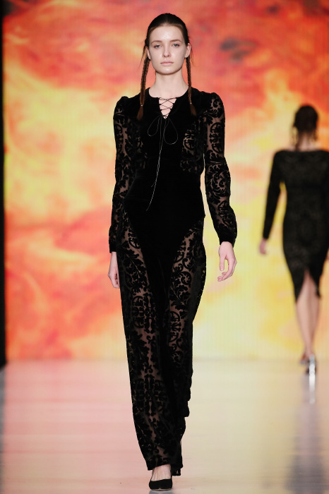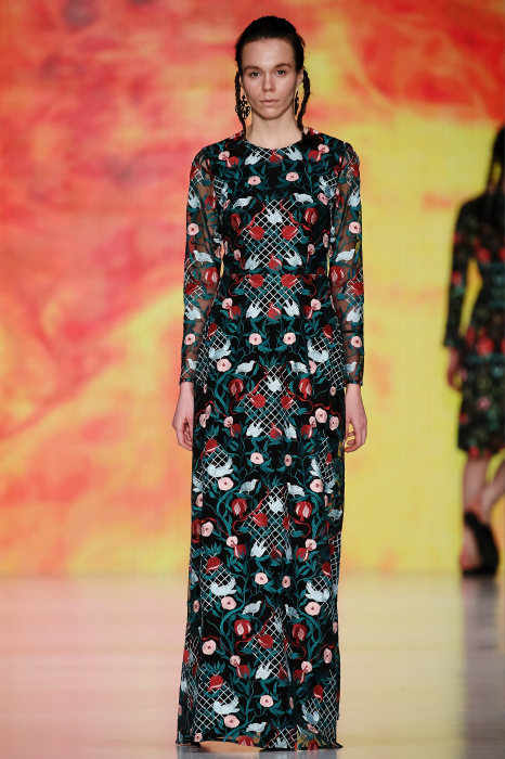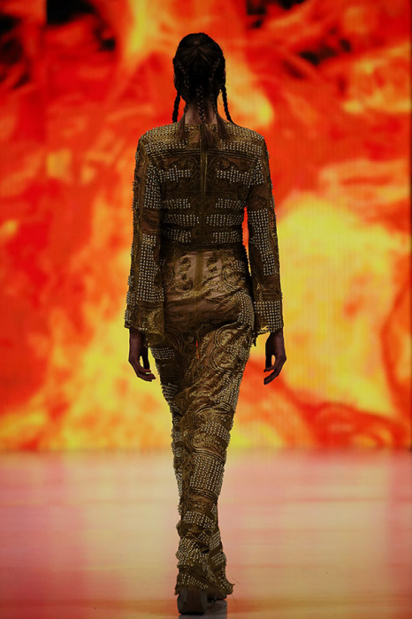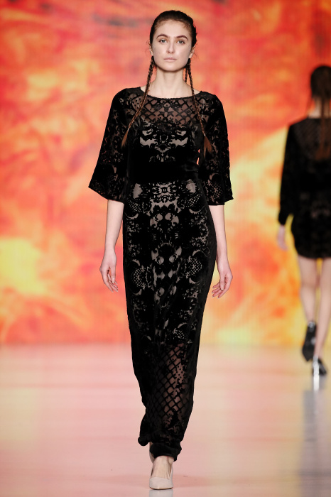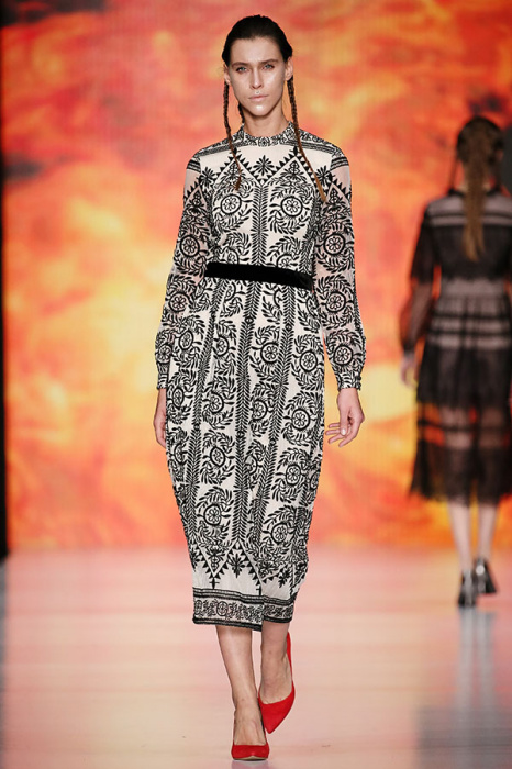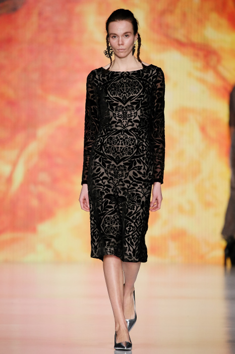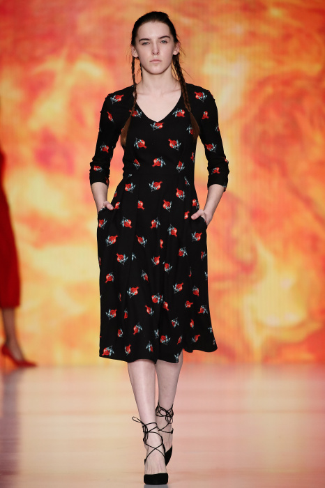 Ksenia Knyazeva вдохновилась многогранностью женщины. Героиней коллекции стала Жанна Д'Арк, соединяющая хрупкость и воинственность, открытость и тайну. Сочетание воплотилось в минималистичных приталенных платьях, свитшотах и пальто-халатах, украшенных отделкой из перьев и вышивкой в форме петуха.