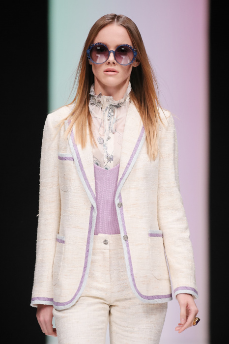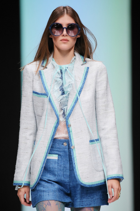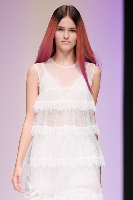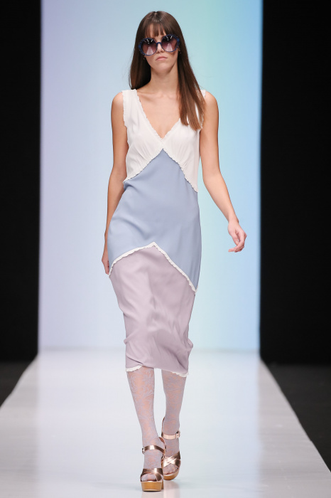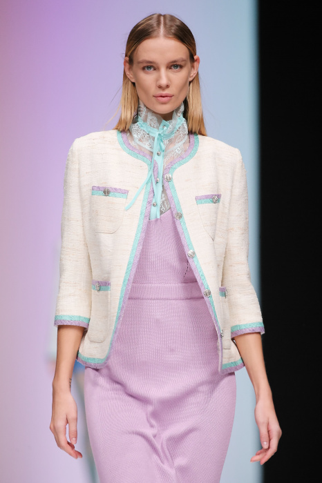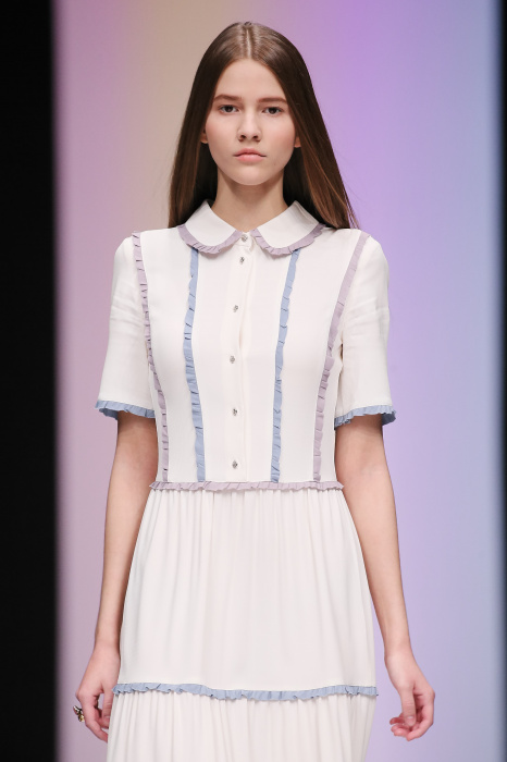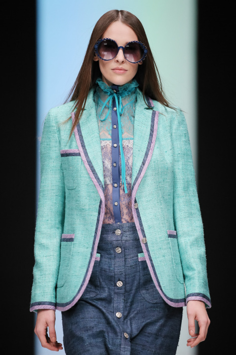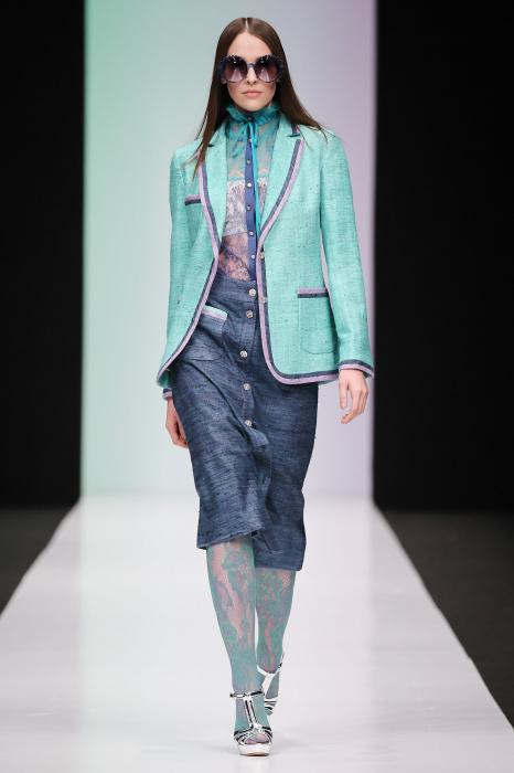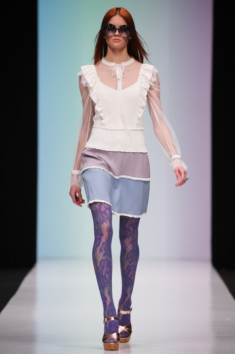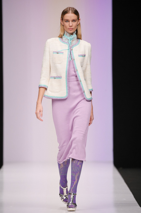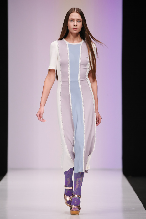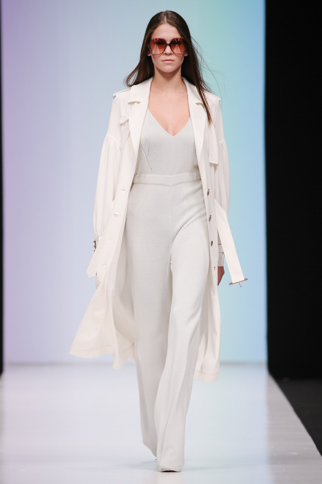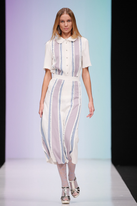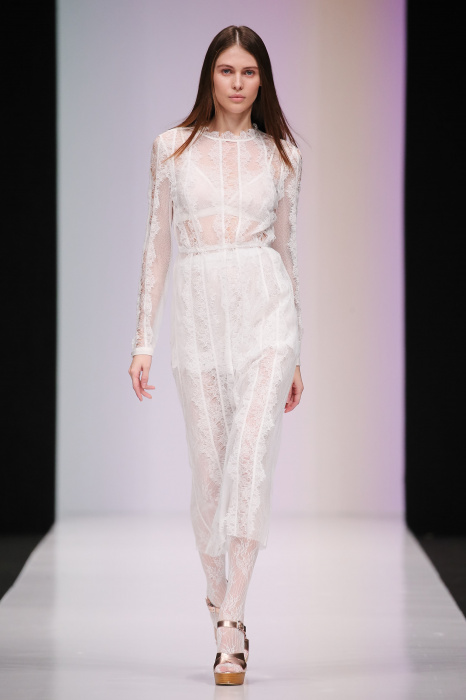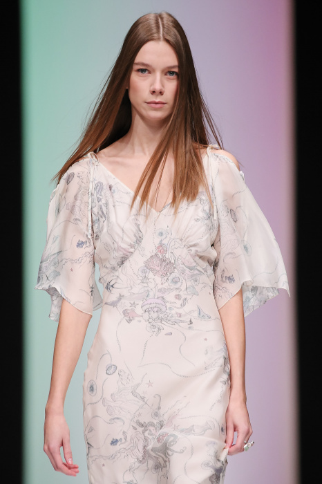 Женственная коллекция LAROOM дизайнера Евгении Легкодымовой предназначена для ценящих уточненную сексуальность. Легкие, светлые, летящие полупрозрачные ткани, на которых распускаются нежные, будто прорисованные тонкой кистью цветы и зыбкая морская пена. Блузы с прозрачными расклешенными рукавами, сочетания небесной бирюзы с цикломеновым, разноярусно сконструированные платья макси длины – на подиуме господствовала гармония и стильная красота. Выбор тканей продуман до мелочей: здесь и гипюр, и шелковый лен, и джинса.