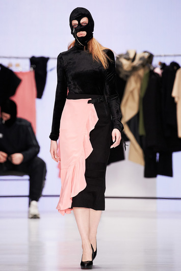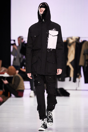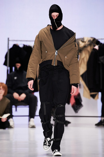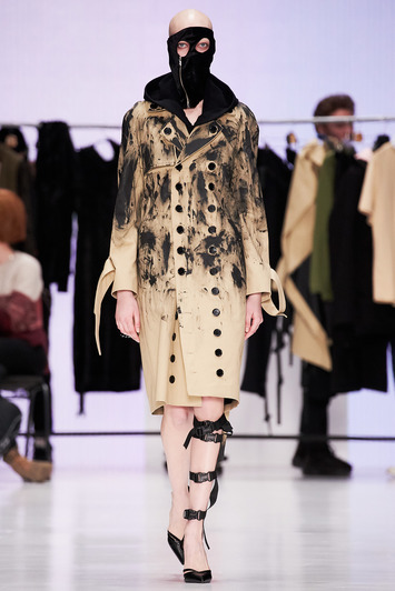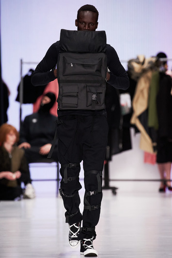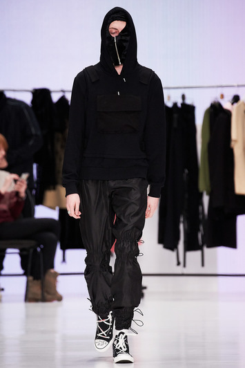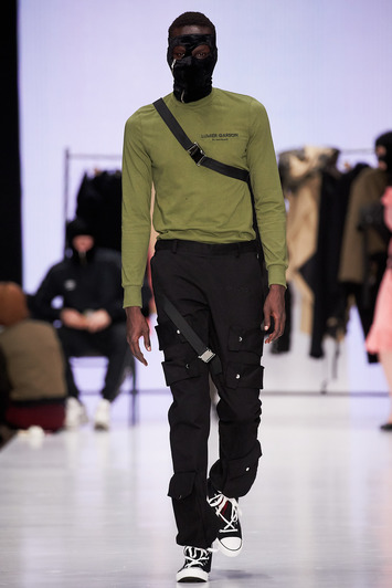 Концептуальная одежда Lumiér Garson – это материальные высказывания. В прошлых коллекциях дизайнер Жан Рудов размышлял о том, как утомляет мода, как невозможно вернуться в детство, как ускользает память. Осенне-зимняя коллекция охватывает множество тем. Она о том, что за модными ярлыками стирается индивидуальность. Она о тревоге и реальности, ощущаемой как мир постапокалипсиса. Это история о выживающих людях в следах мазута на плаще и краске на рубашках. О девушках в платьях наполовину розовых в рюшах, наполовину прямых и черных. Вокруг безвоздушное пространство, невинность невозможна, наивность утрачена. Лучший выход – это депривация и аскетизм, лучший выход – это подготовка к борьбе. Надевай маску, куртку хаки, бери тактический рюкзак и не забывай, кто ты.