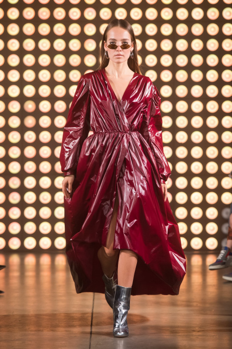 Третий день завершился показом бренда BESO TURÁ на дизайн-заводе Flacon. Вдохновленный яркими 80-ми и супермоделями 90-х, дизайнер создает коллекцию под стать им — яркую и нарочито сексуальную. Основа коллекции — провокационные платья с силуэтами 80-х c характерной ярко выраженной линией талии, сборками на груди и глубоким декольте. Коллекция дополнена пиджаками с накладными объемными плечами и комбинезонами. Для создания коллекции дизайнер использует в основном металлизированный трикотаж различных цветов, а также кожу, экокожу и винил. Никаких полутонов: фуксия, красный, серебристый, черный и белый.
