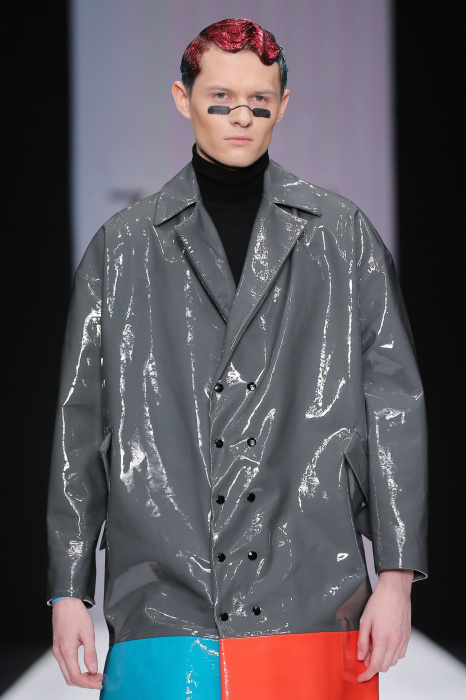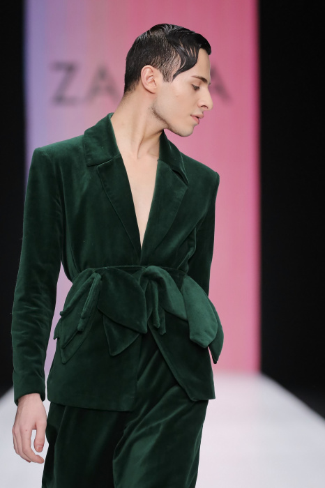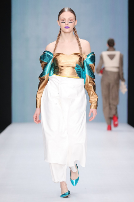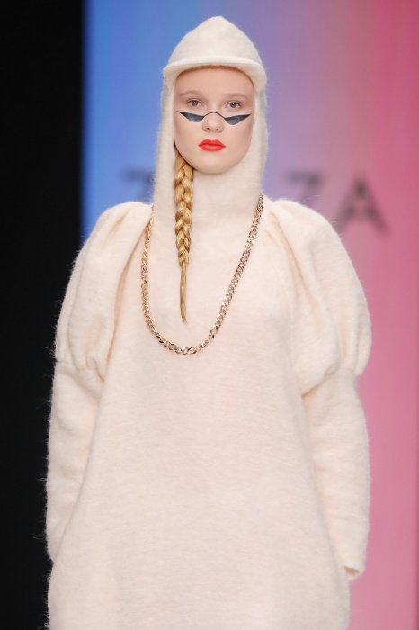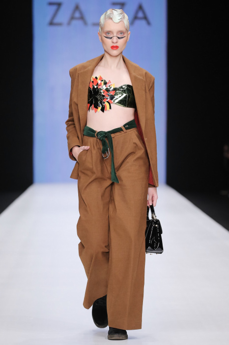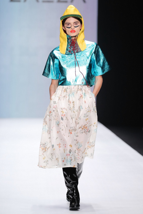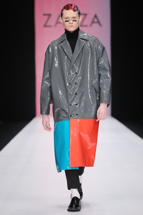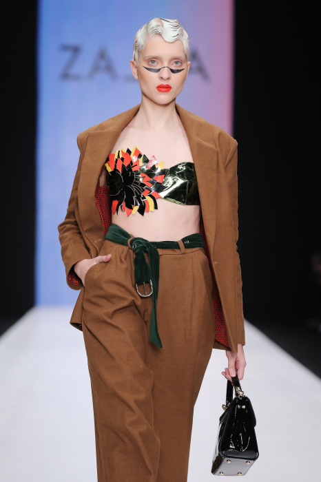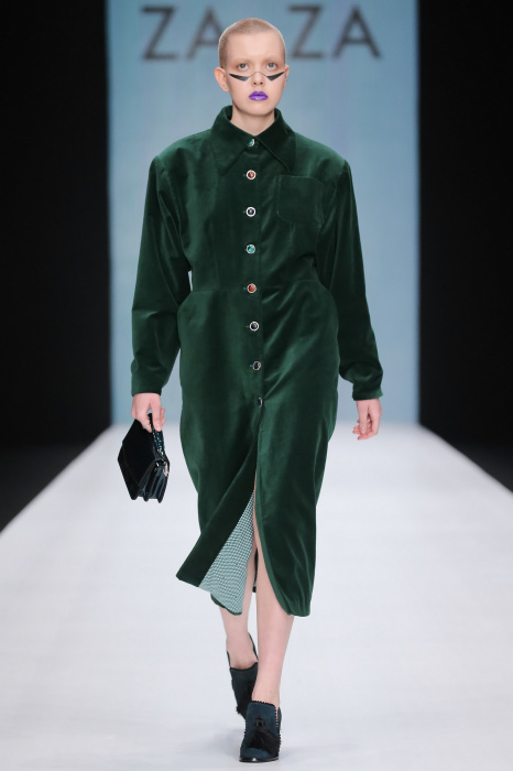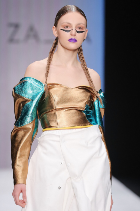 Коллекция бренда ZA_ZA «Узнай — цвет в себе» — это взаимная любовь контрастности цвета и тканей, натуральной кожи и разноцветного блеска. В коллекции верхняя одежда из винила, метализированной кожи, разноцветного экомеха. Пальто и плащи с геометрическими идеями по крою. Костюмы и платья из шелка и бархата. Коллекция внесезонная и тем уникальная. Прямой крой, простые силуэты. Сложность достигается цветом и фактурами тканей.