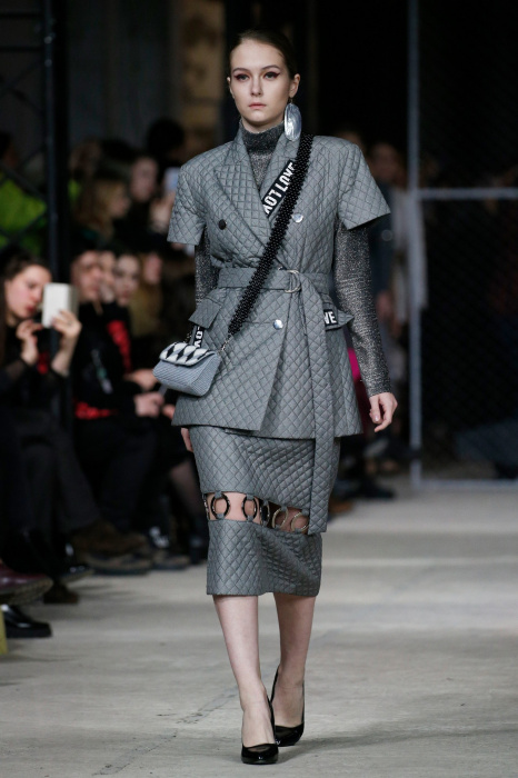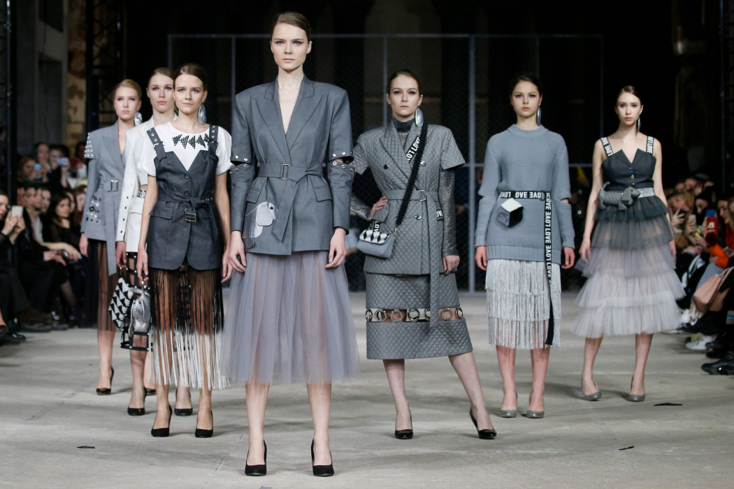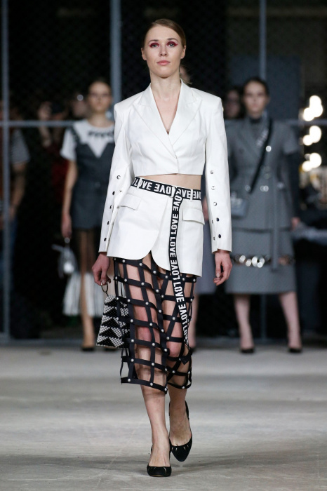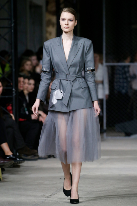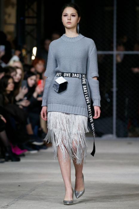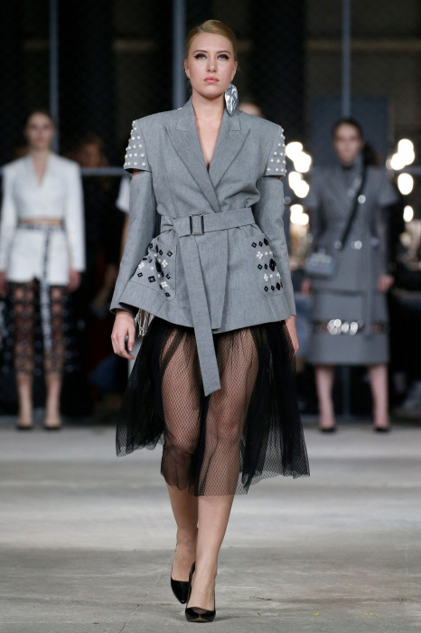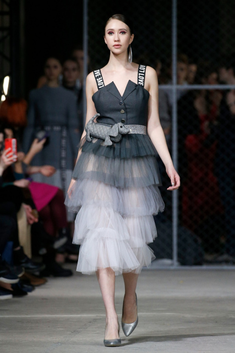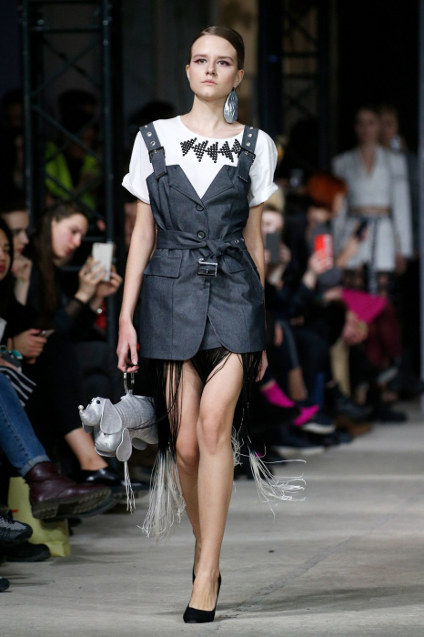 Источником вдохновения коллекции стало здание берлинского торгового центра Quartier 206 и его аккаунт в соцсетях, где размещали фото собак на фоне мозаичного пола. Коллекция выдержана в черно-белой гамме, без цветовых акцентов, что позволило использовать множество фактур. Основные ткани: деним и фатин. С вкраплениями органзы, хлопка с металлизированным напылением. Кроме того, в коллекции использован хлопковый трикотаж, трикотаж с металлизированной нитью (люрекс) и стеганная курточная ткань. Центральный элемент коллекции - юбка длинной до середины голени из летящих, прозрачных тканей. Юбки дизайнер комбинирует с приталенными жакетами, жилетами и свитерами грубой вязки. Сумки, аксессуары, вышивка и плетеная кокетка выполнены вручную.