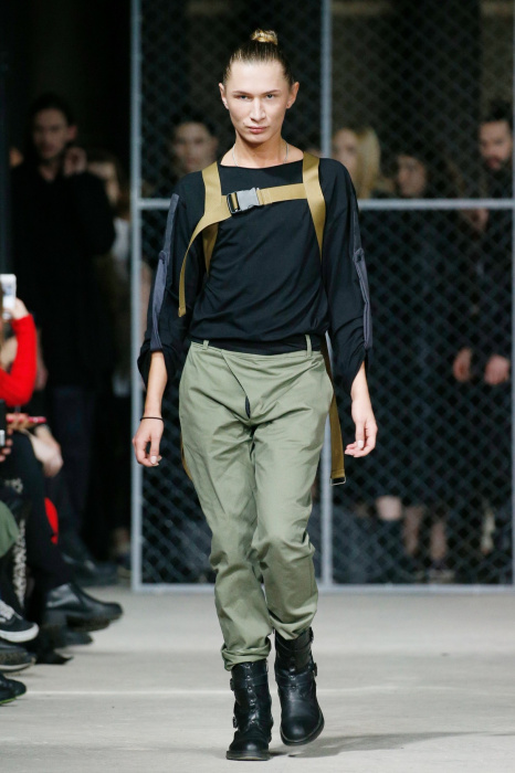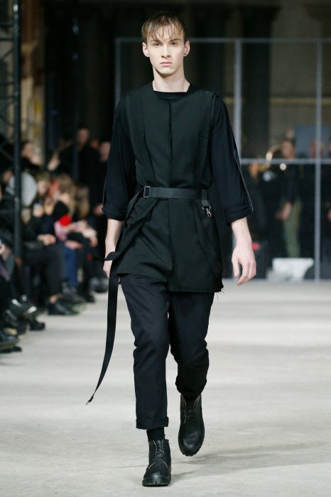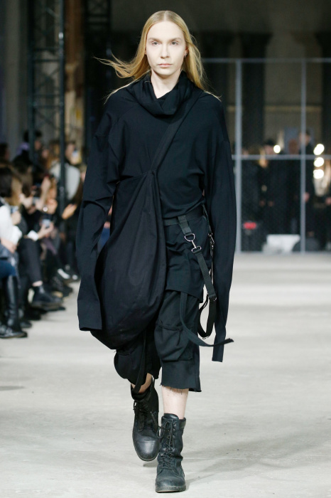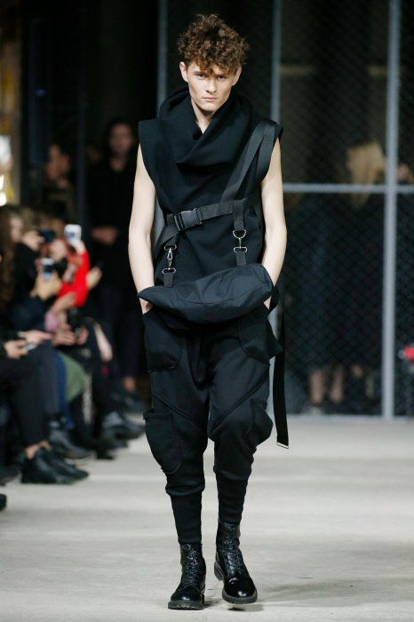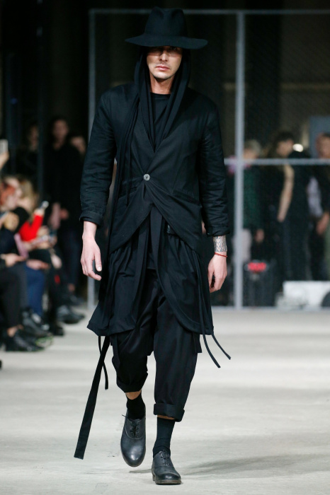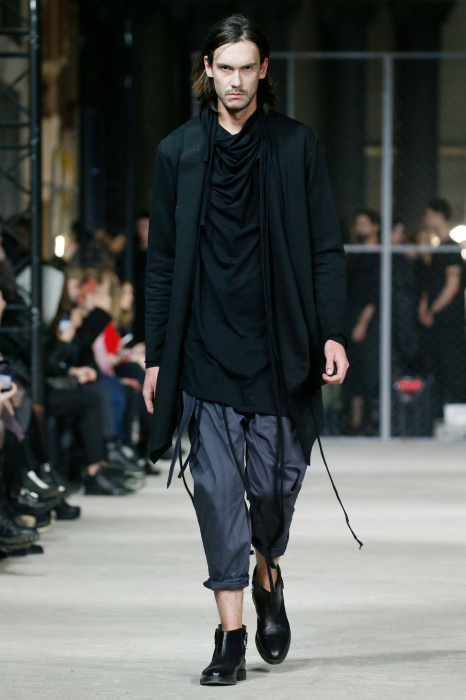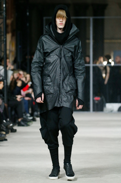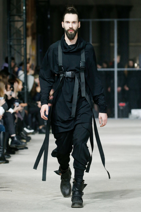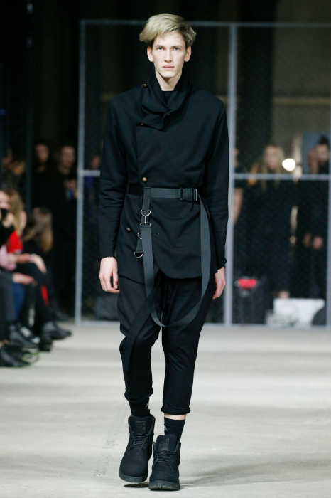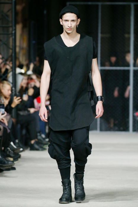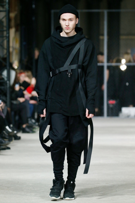 Бренд мужской одежды. Свой стиль дизайнер характеризует, как милитари-футуризм. Его цель - объединение направлений. Представленная в рамках MBFW Russia коллекция монохромная. Цвет: абсолютный черный. Балахонистые кардиганы, жилеты, худи, укороченные брюки-галифе. Оригинальность достигается с помощью многослойности, ремней в разных конфигурациях и оригинальных поясных сумок. Ткани органические: трикотаж, текстиль.