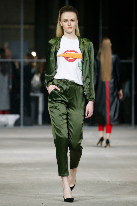 Дерзкая и молодежная. Любой лук - готовое решение для любителей street-style. Полюбившейся sport-шик в сочетании с обувью на каблуке, оверсайз для верхней одежды (бомберы, плащи, пальто), яркие цвета, необычные комбинации. Коллекция декорировано вышивкой, аппликациями и ремнями с надписями.