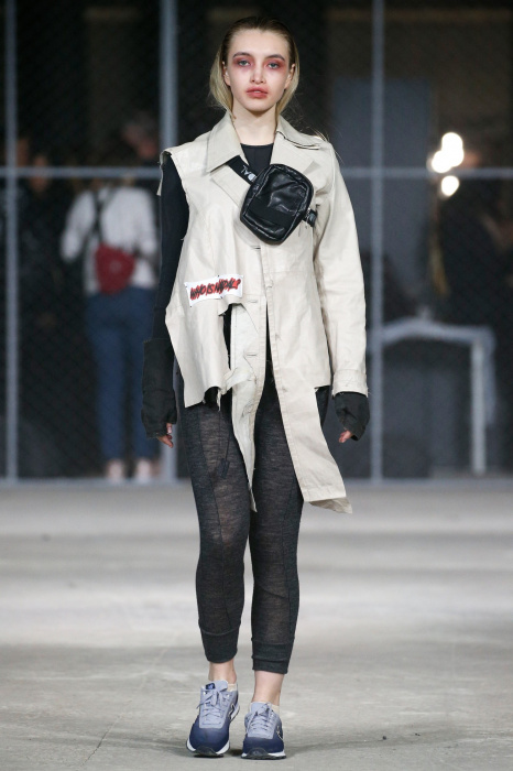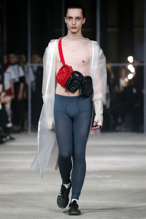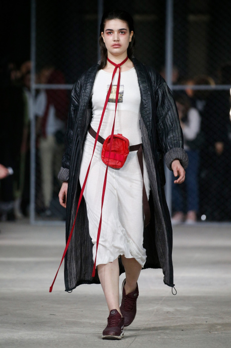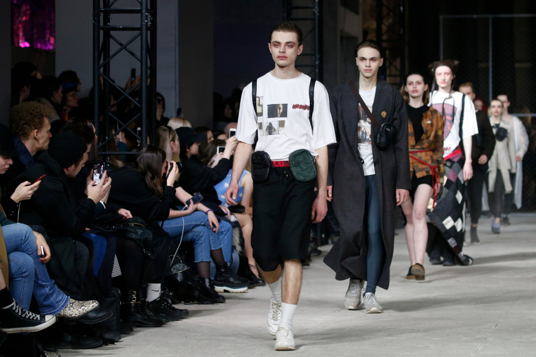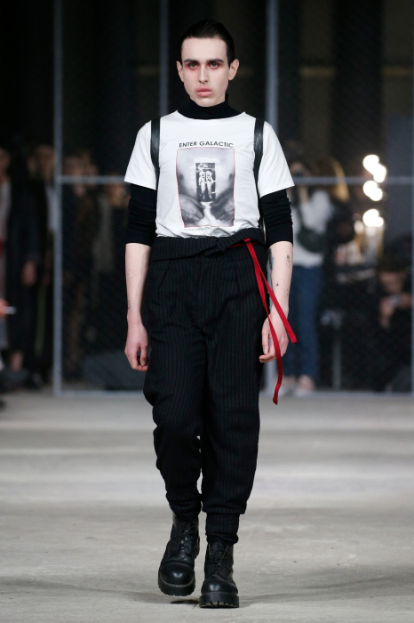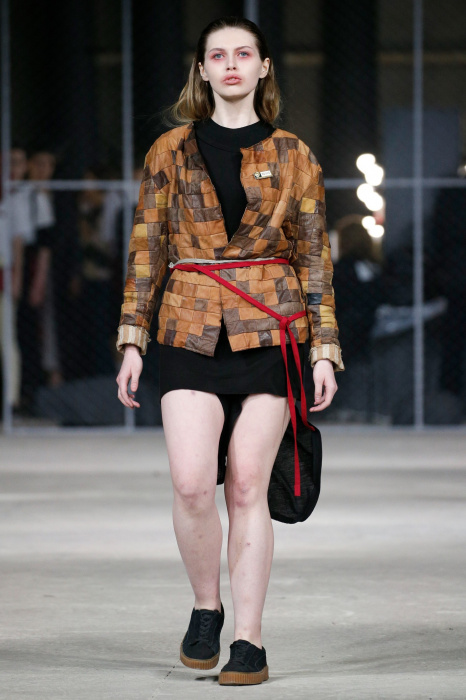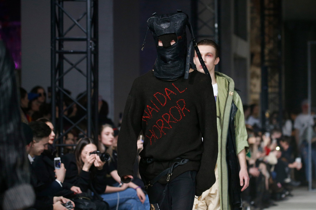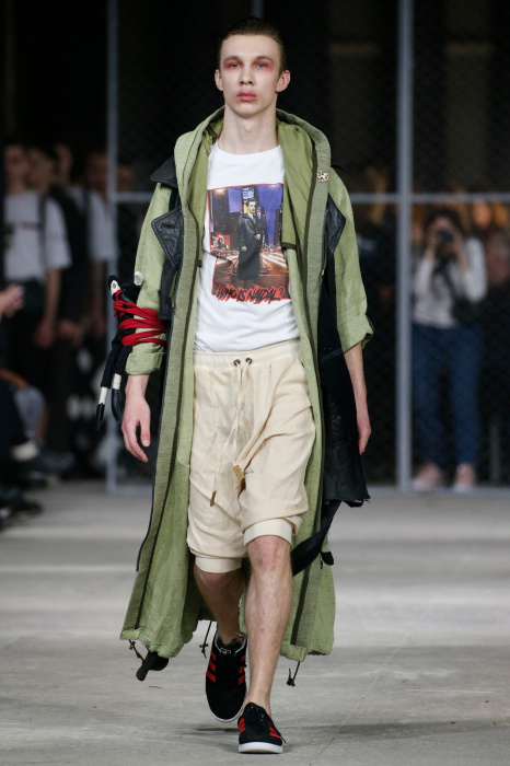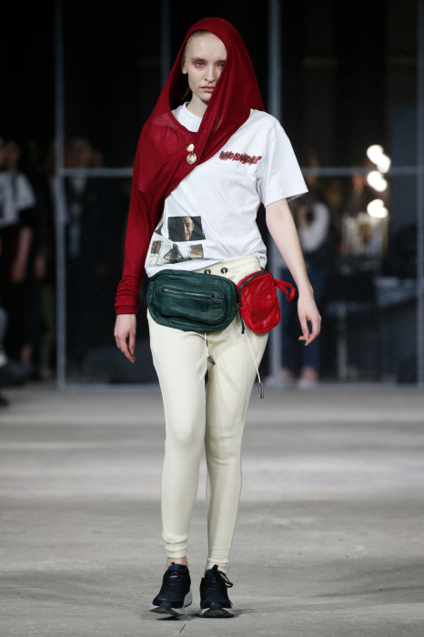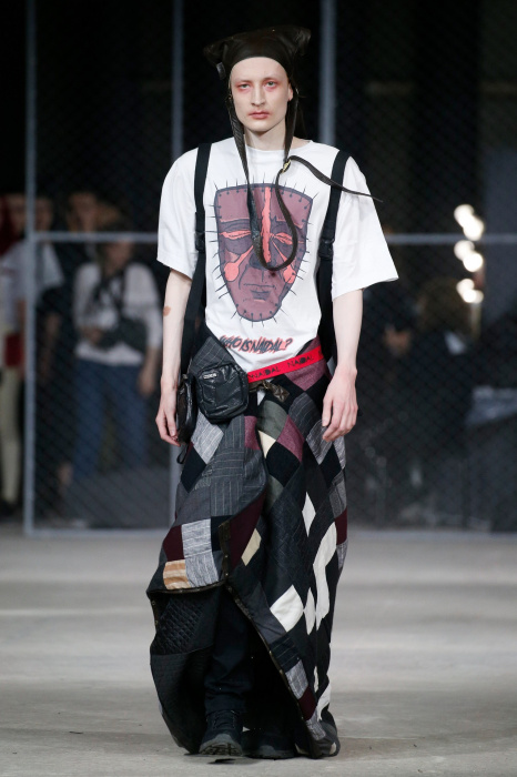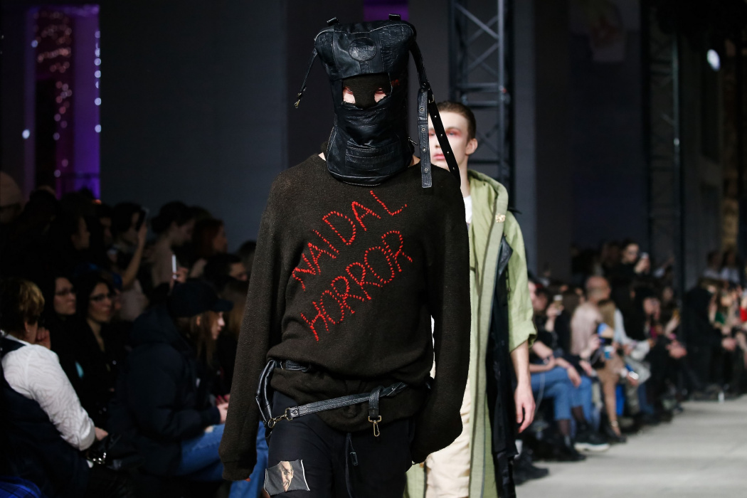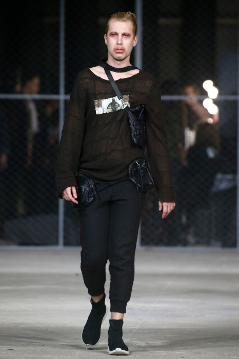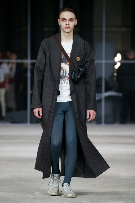 Дизайнер бренда NAIDAL прочувствовал всю философию современного поколения и решил использовать в своей коллекции все самые разнообразные направления. Коллекция содержит в себе большое количество всего: одновременно несколько барсеток на одной модели, юбка в виде одеяла, которую модель-мужчина волочит по полу, множество рисунков и картин на белых футболках. Не забыл дизайнер и про верхнюю одежду, она выполнена из разных кусочков кожи. Удивляет гостей показа модель-мужчина с надетой на голове сумкой.