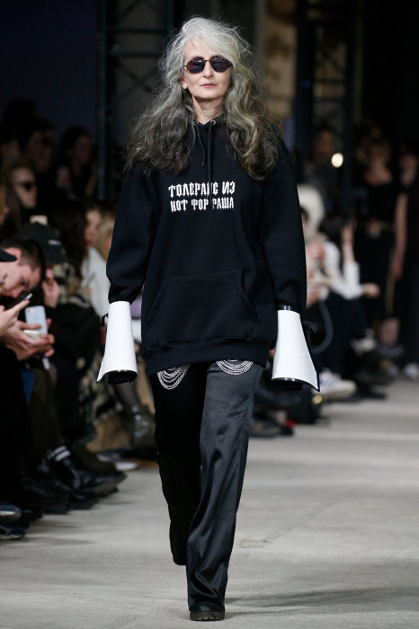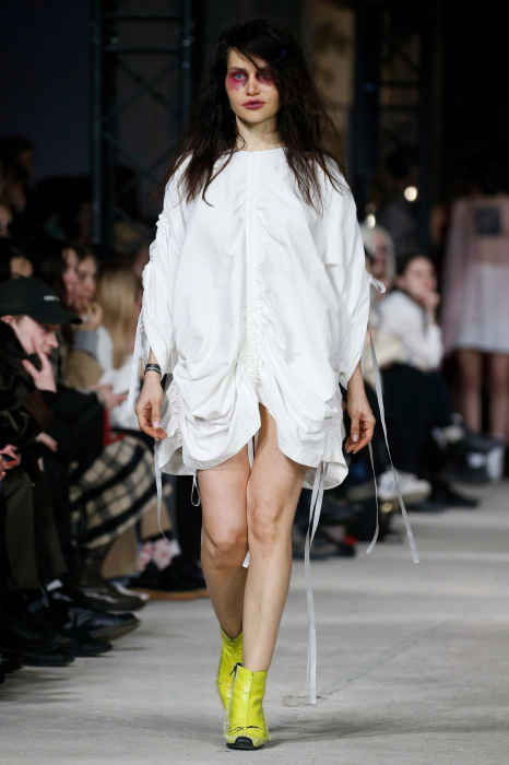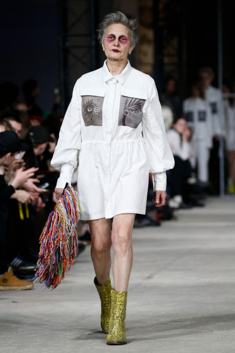 Дизайнер Рома Уваров представил необычную и экстравагантную коллекцию одежды, на которую, по его словам, его вдохновила больничная тематика и анатомия человека. Безусловный гвоздь показа - сумка в виде рентгенного снимка кистей руки в руках пожилой модели и объемная юбка, слепленная идентичными снимками на следующей молодой модели. Макияж моделей выполнен в стилистике показа: огромные синяки под глазами, что добавляет образам большей драматичности. Дизайнер использовал такие прозрачные материалы, как шифон, а белые рубашки свободного кроя напоминают о дресс-коде в соответствующих учреждениях. На платьях, рубашках и других вещах коллекции Уваров запечатлел собственный принт с винтажными фотографиями цветов, вдохновившись работами Карла Блоссфельдта. Аксессуарами послужили разные части пластиковых кукол-пупсов, здесь вдохновением для дизайнера выступили фотокарточки французского фотографа Бернарда Фаукона.