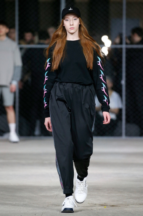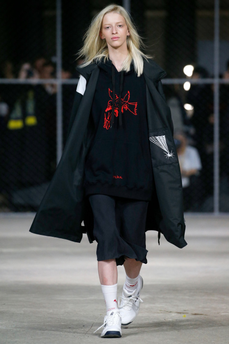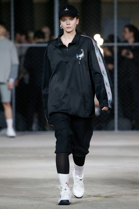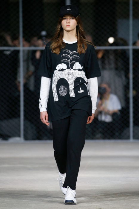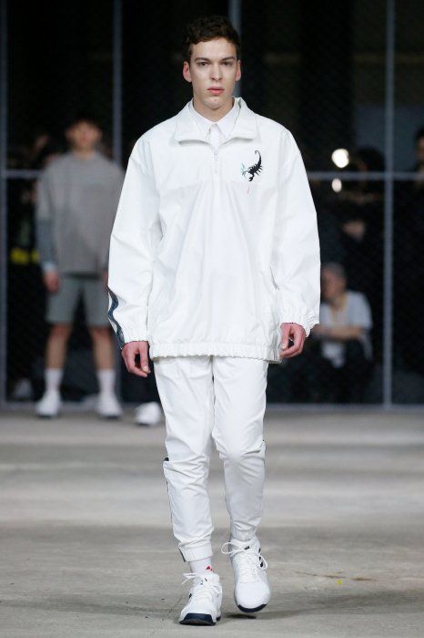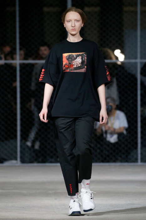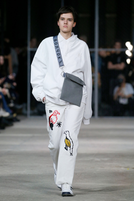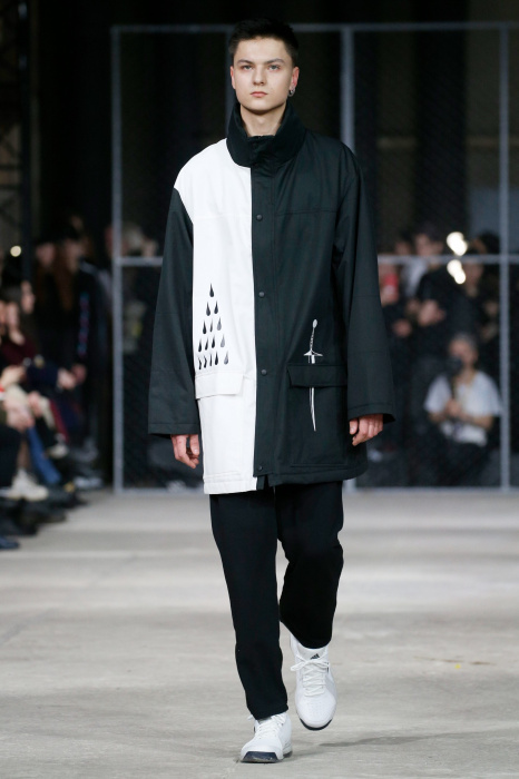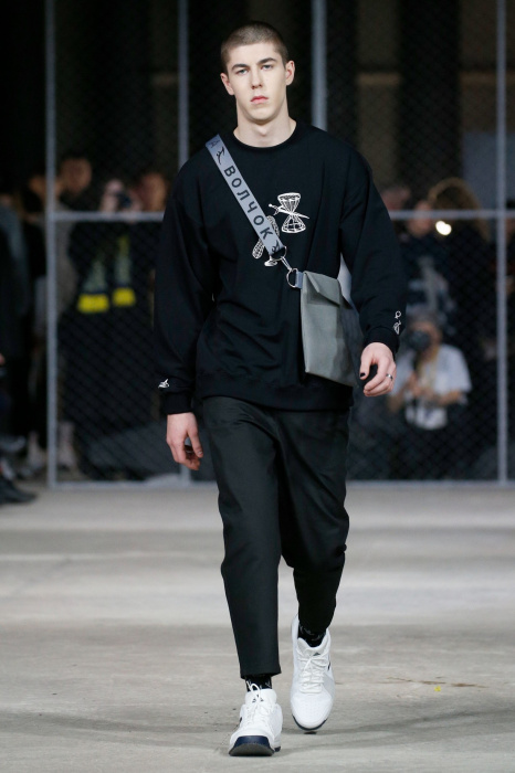 Бренд Volchok представляет гостям спортивную одежду для городской жизни. Коллекция вдохновлена природой, окружающим миром и растительностью: рисунки деревьев, птиц, знаков зодиака, погодных явлений олицетворяют тесную связь между человеком и планетой. Коллекция состоит полностью из спортивных вещей, где основными цветами стали белый, черный и серый. Стоит отметить, что на поясах и деталях сумок дизайнер предпочел оставить название своего бренда крупными буквами.