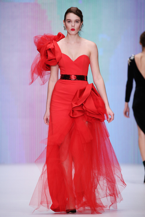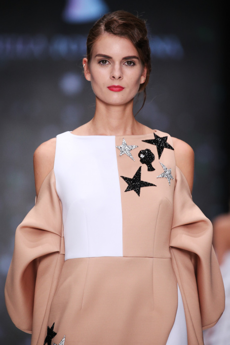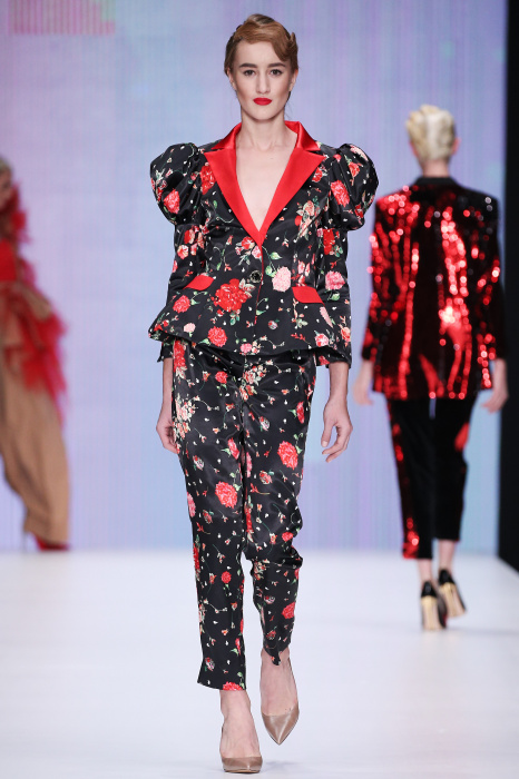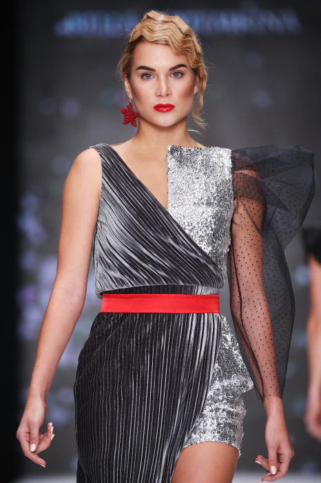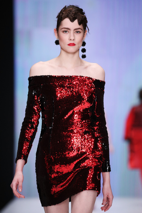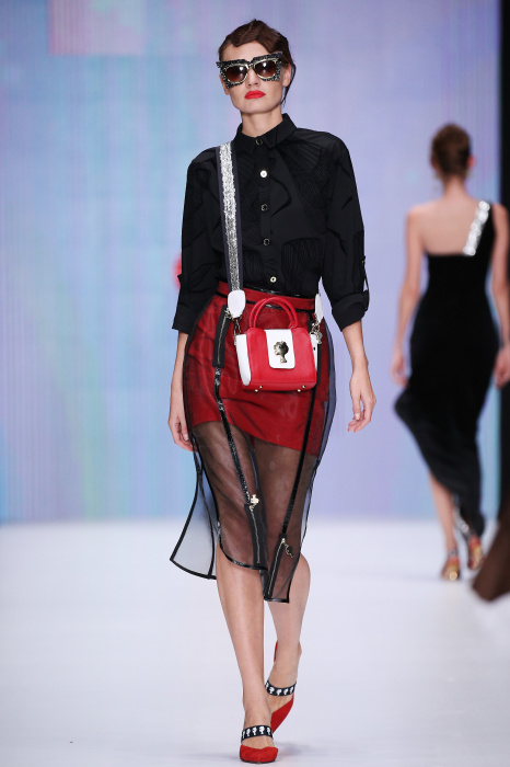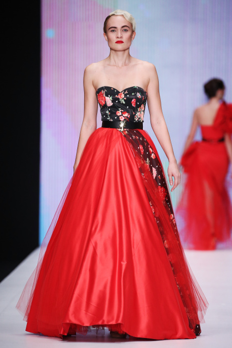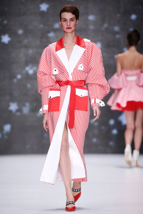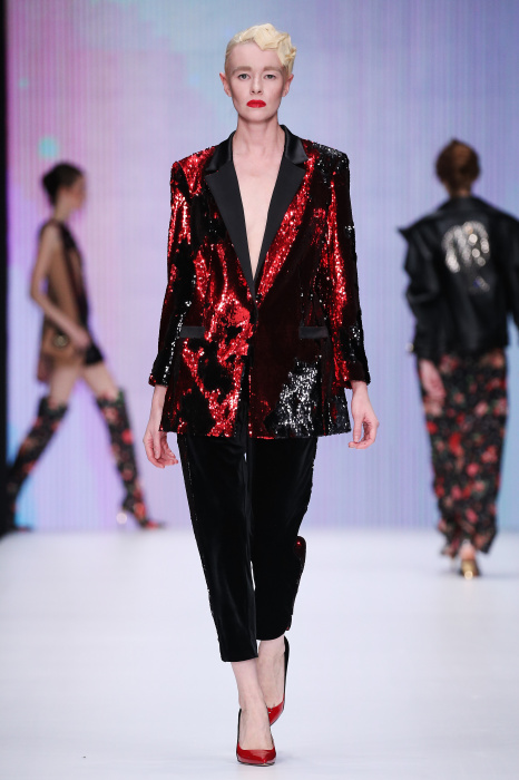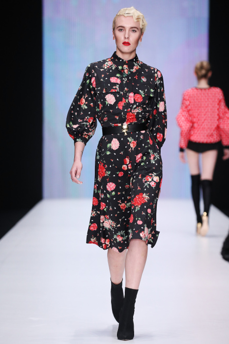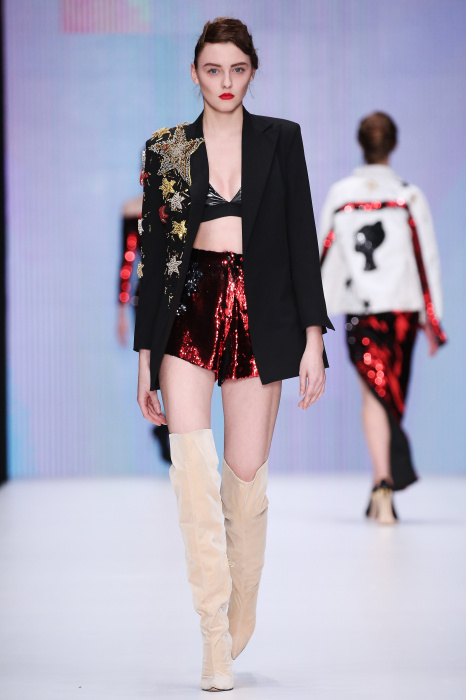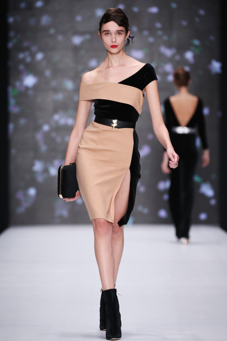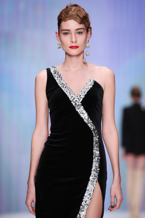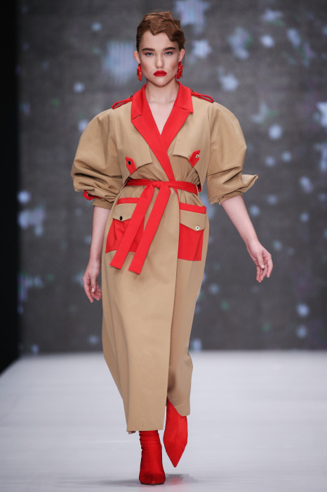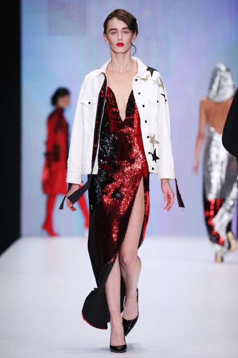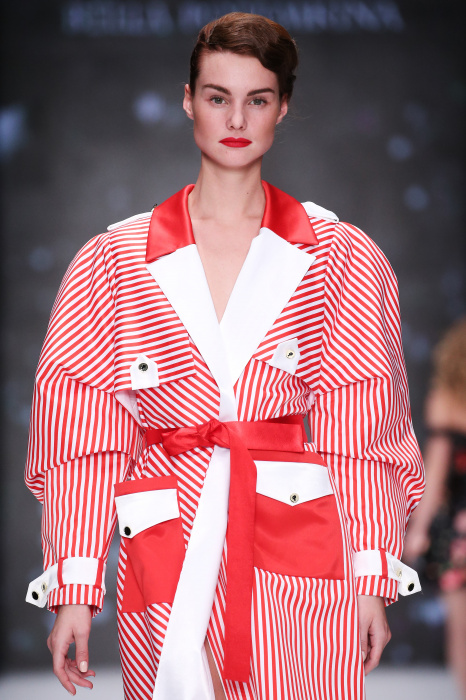 Главной звездой показа на MBFW RUSSIA бренда Беллы Потемкиной стала Ольга Бузова. Телеведущая и певица открыла шоу своим новым хитом «Ты не попал в хит-парад моих мыслей». Весь показ также проходил под микс песен Бузовой, а завершился живым исполнением главного хита – «Под звуки поцелуев». В коллекции представлены: бархат, звездные и цветочные принты, укороченные сапоги-чулки и ярко-красный цвет. Красный пояс, карманы, воротник, сапоги идеально оттеняют пальто верблюжьего цвета. Декоративный элемент большинства луков – сетка – проявляется на подоле платьев или в качестве объемной аппликаций на плечах. Стоит отметить принт с розами на черном фоне, ставший еще одной константой коллекции. В платье из этой ткани вышла не только одна из самых популярных блогеров России Марьяна Рыжкова, но и сама дизайнер Белла Потемкина.