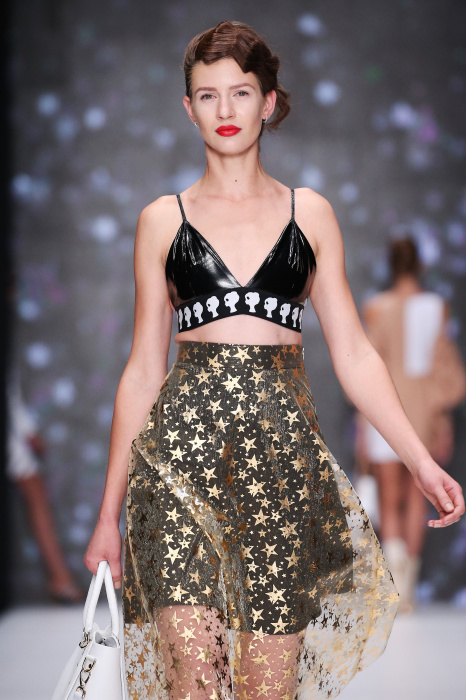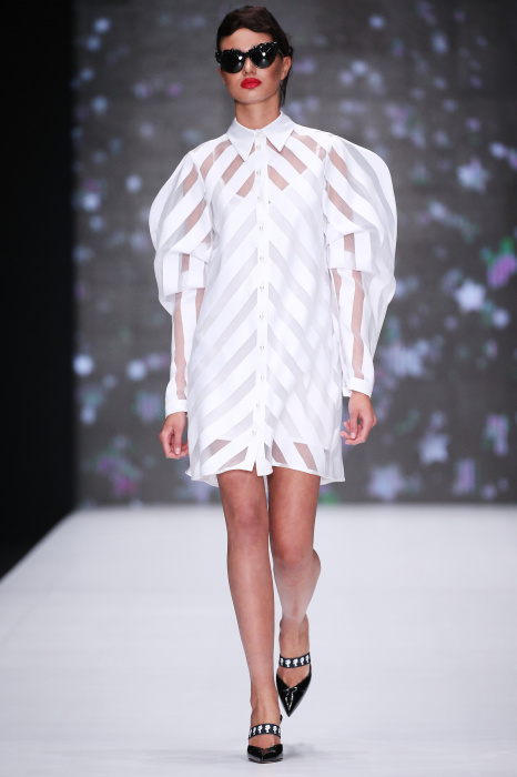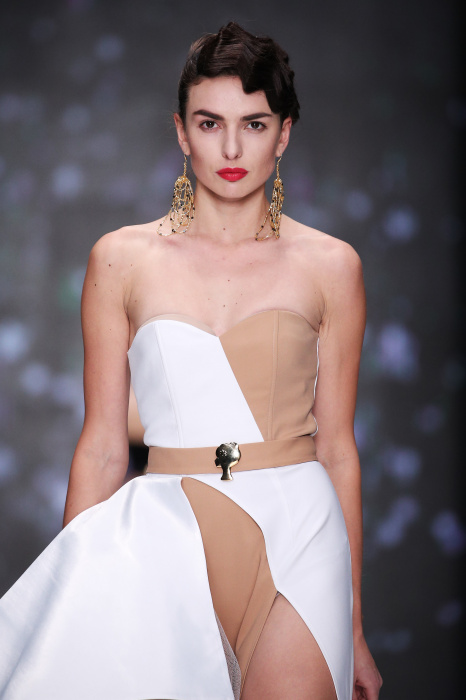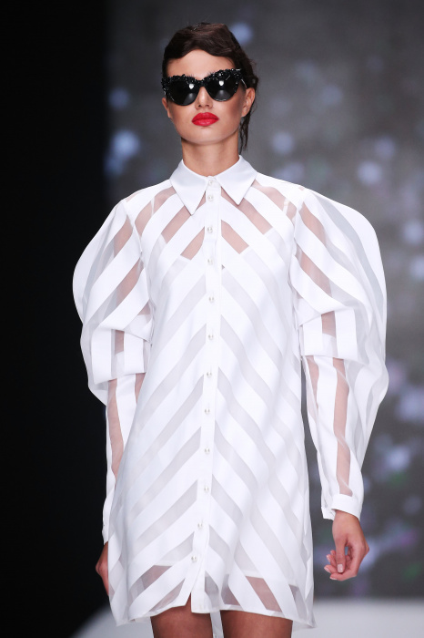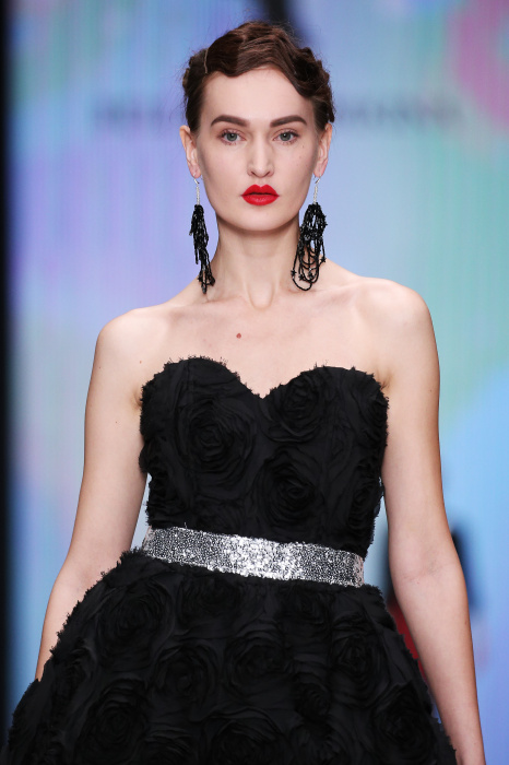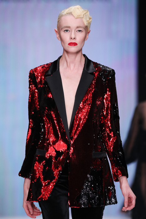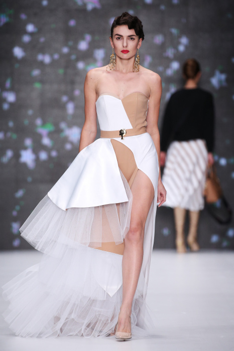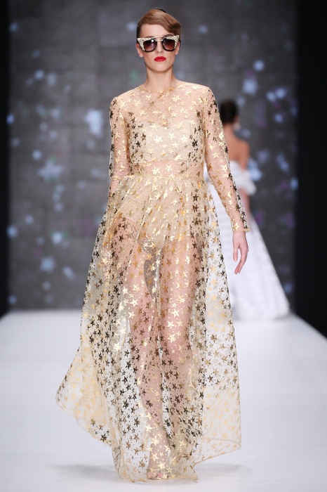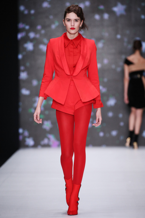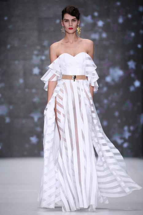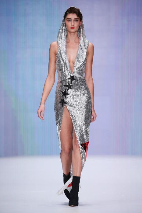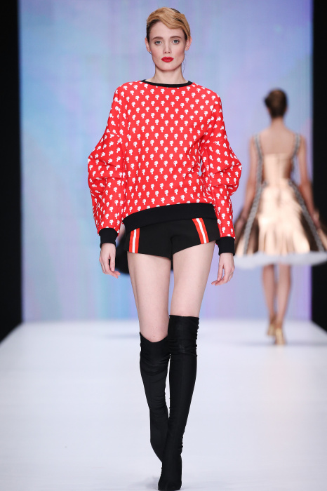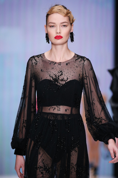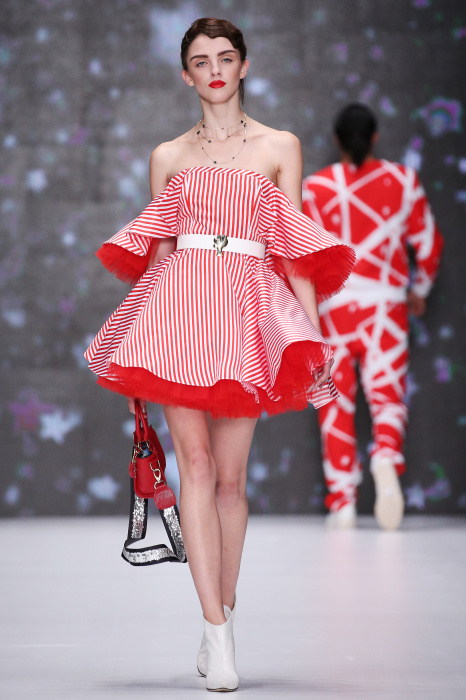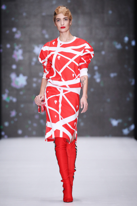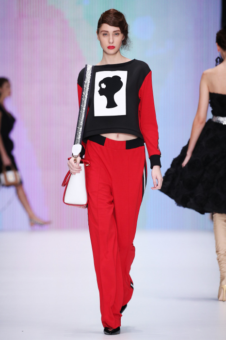 Главной звездой показа на MBFW RUSSIA бренда Беллы Потемкиной стала Ольга Бузова. Телеведущая и певица открыла шоу своим новым хитом «Ты не попал в хит-парад моих мыслей». Весь показ также проходил под микс песен Бузовой, а завершился живым исполнением главного хита – «Под звуки поцелуев». В коллекции представлены: бархат, звездные и цветочные принты, укороченные сапоги-чулки и ярко-красный цвет. Красный пояс, карманы, воротник, сапоги идеально оттеняют пальто верблюжьего цвета. Декоративный элемент большинства луков – сетка – проявляется на подоле платьев или в качестве объемной аппликаций на плечах. Стоит отметить принт с розами на черном фоне, ставший еще одной константой коллекции. В платье из этой ткани вышла не только одна из самых популярных блогеров России Марьяна Рыжкова, но и сама дизайнер Белла Потемкина.
