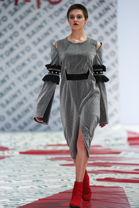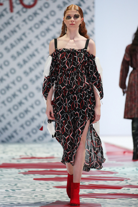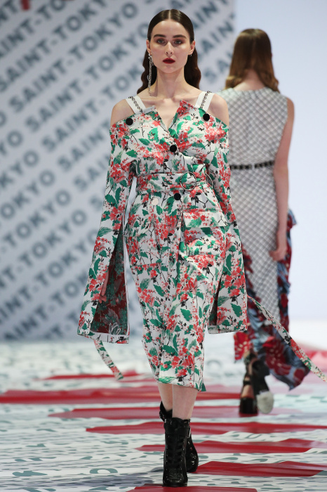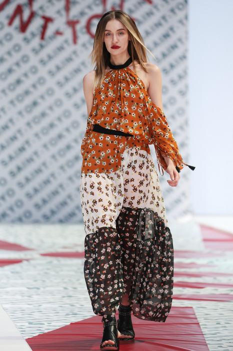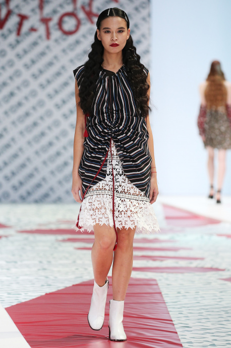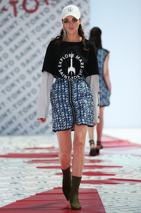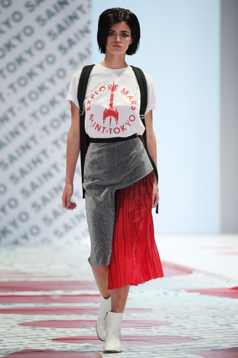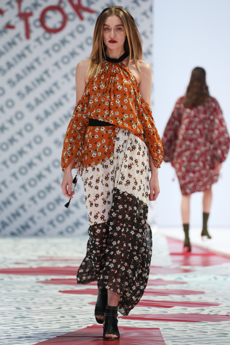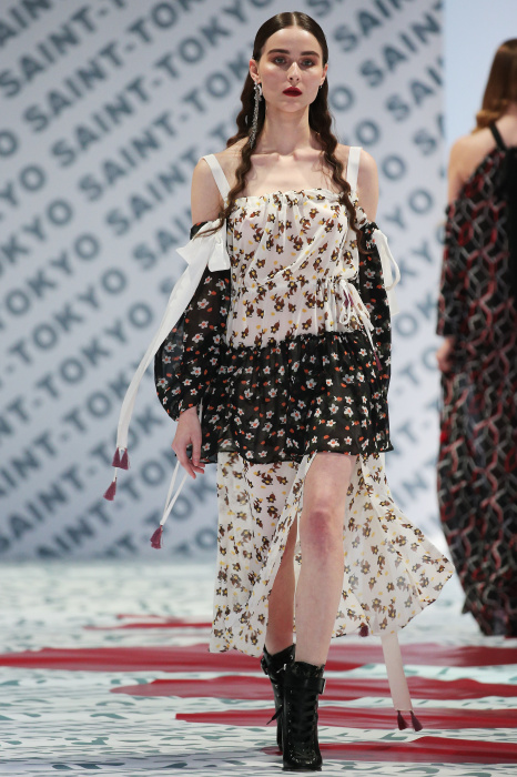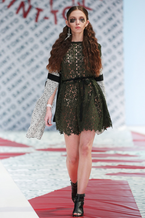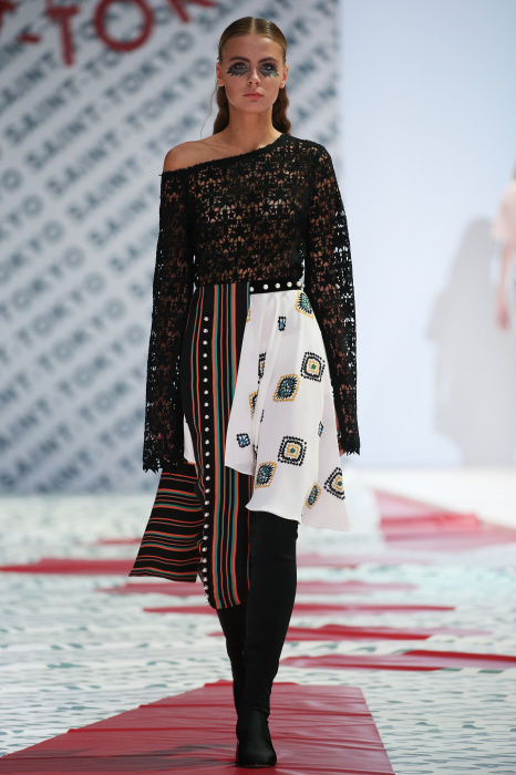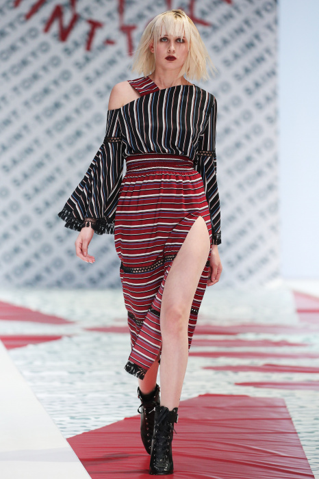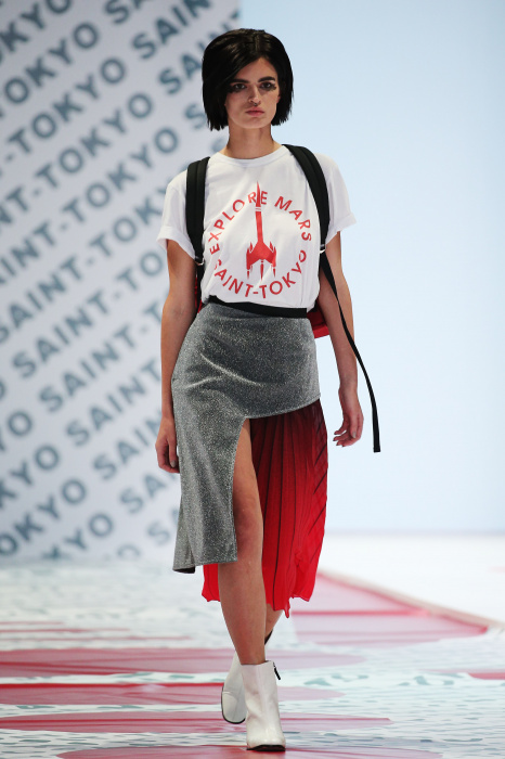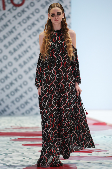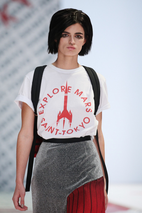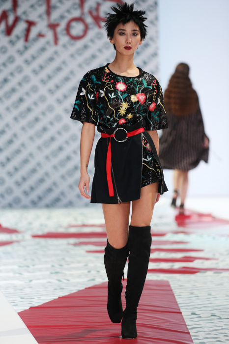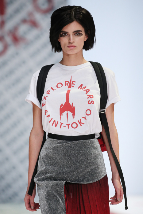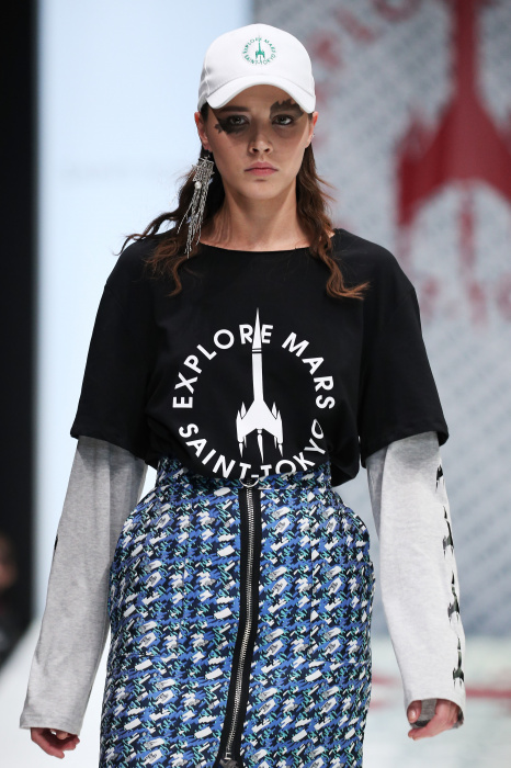 Заключительный показ второго дня – петербургский бренд SAINT-TOKYO дизайнера Юрия Питенина. Коллекция «Explore Mars» вдохновлена космическим миром обычной девушки. На далеком Марсе она ведет образ жизни, непохожий на земной. Контрастные сочетания в палитре цветов, крое, выборе материала. Традиционные для бренда ассиметричный крой, платья с цветочным принтом и черными лентами, бахрома. Первый look SAINT-TOKYO так же в поддержку проекта Mercedes-Benz Fashion Week Russia (MBFW Russia) и Министерства здравоохранения РФ «Российские дизайнеры против СПИДа».