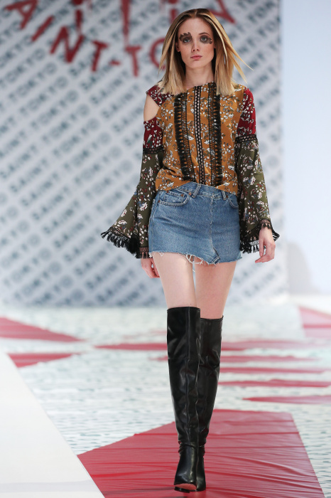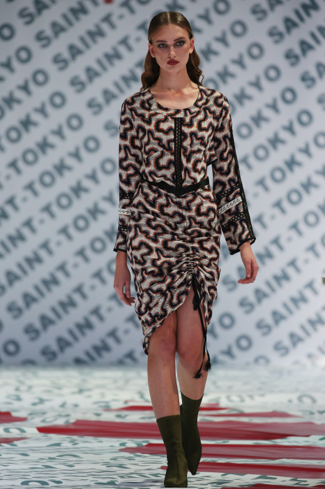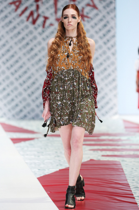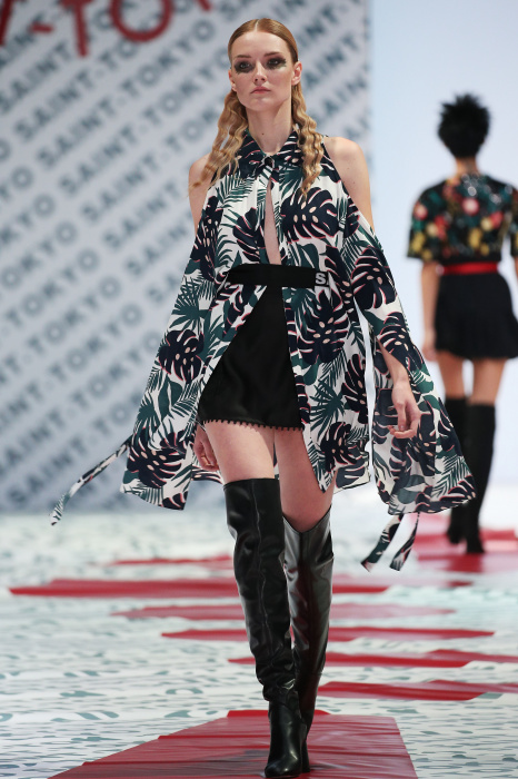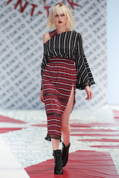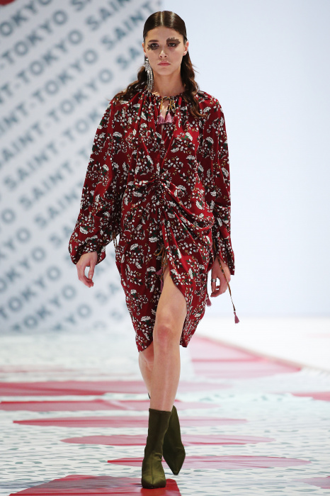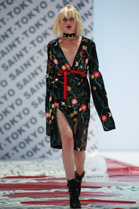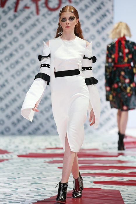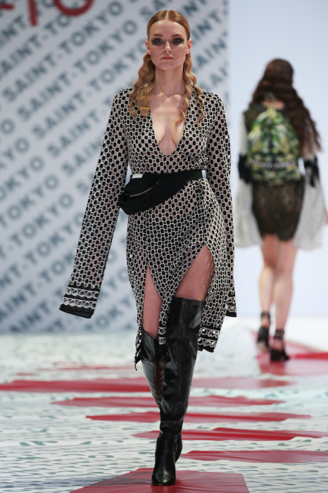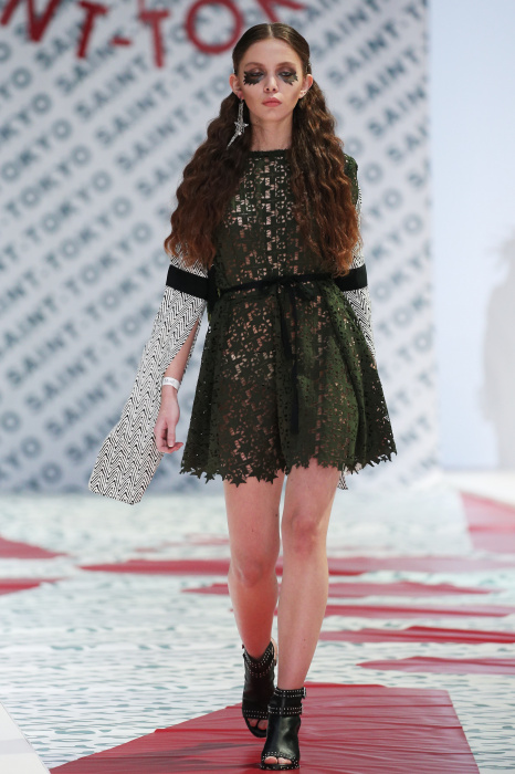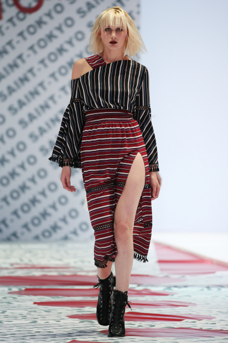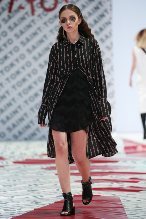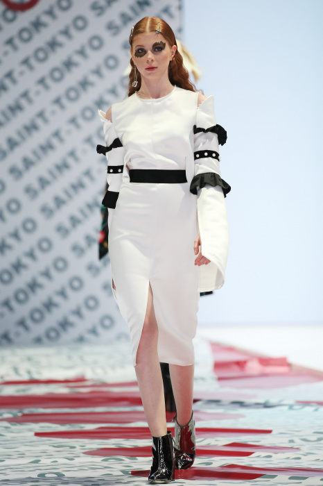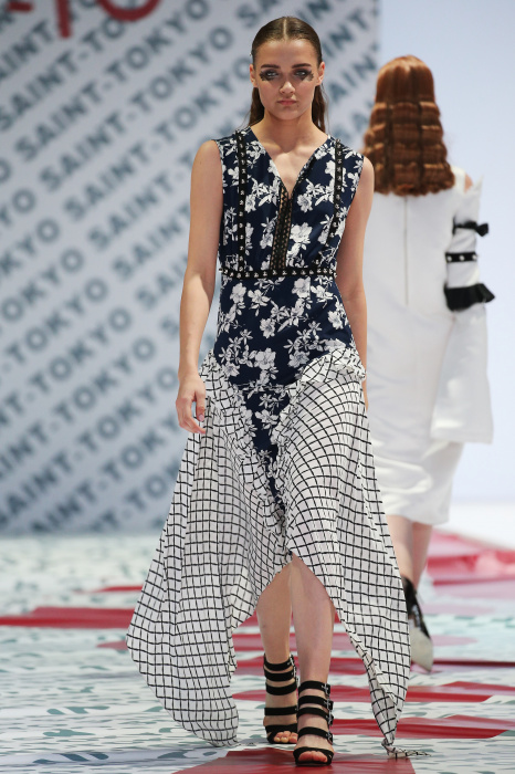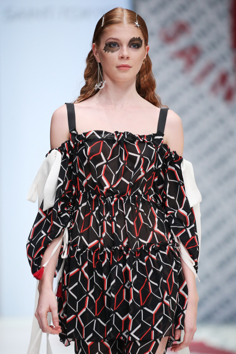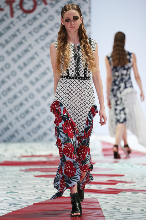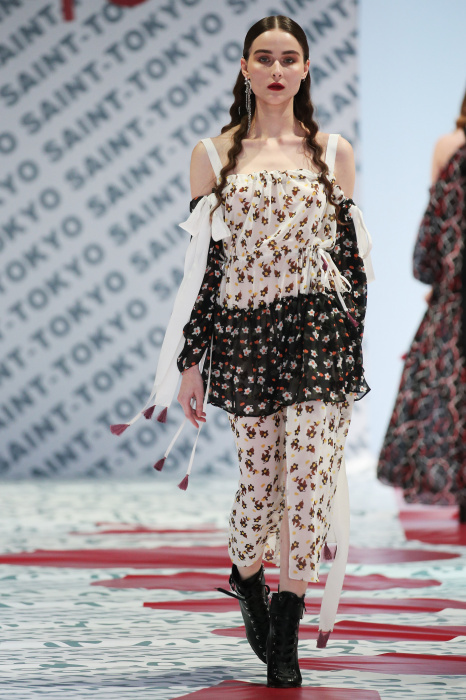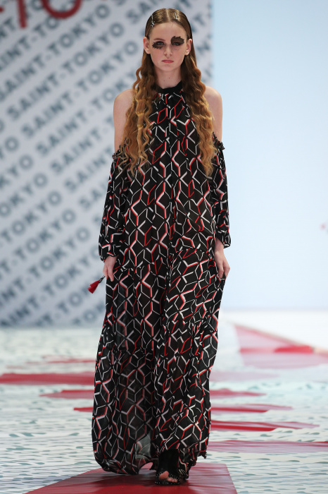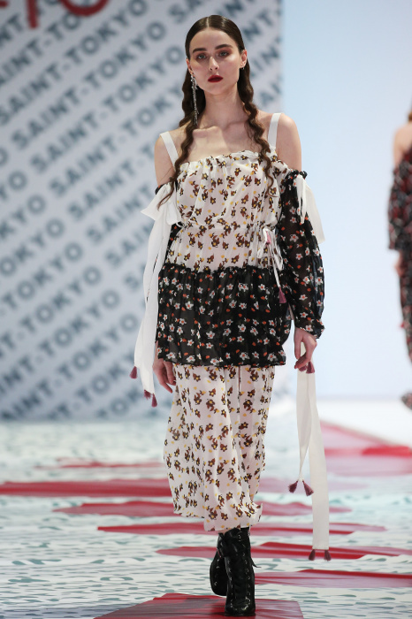Заключительный показ второго дня – петербургский бренд SAINT-TOKYO дизайнера Юрия Питенина. Коллекция «Explore Mars» вдохновлена космическим миром обычной девушки. На далеком Марсе она ведет образ жизни, непохожий на земной. Контрастные сочетания в палитре цветов, крое, выборе материала. Традиционные для бренда ассиметричный крой, платья с цветочным принтом и черными лентами, бахрома. Первый look SAINT-TOKYO так же в поддержку проекта Mercedes-Benz Fashion Week Russia (MBFW Russia) и Министерства здравоохранения РФ «Российские дизайнеры против СПИДа».