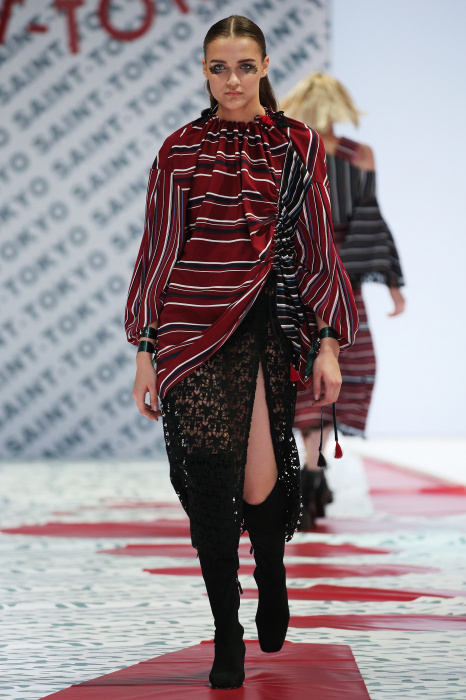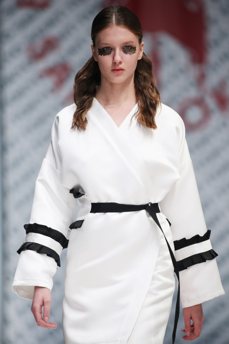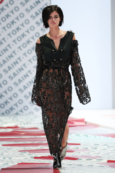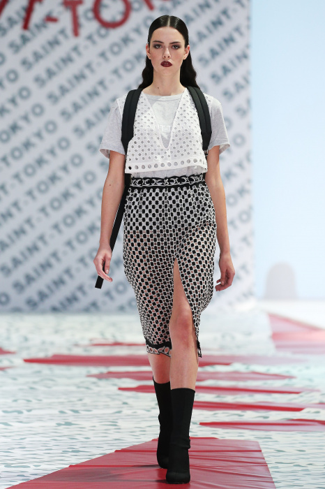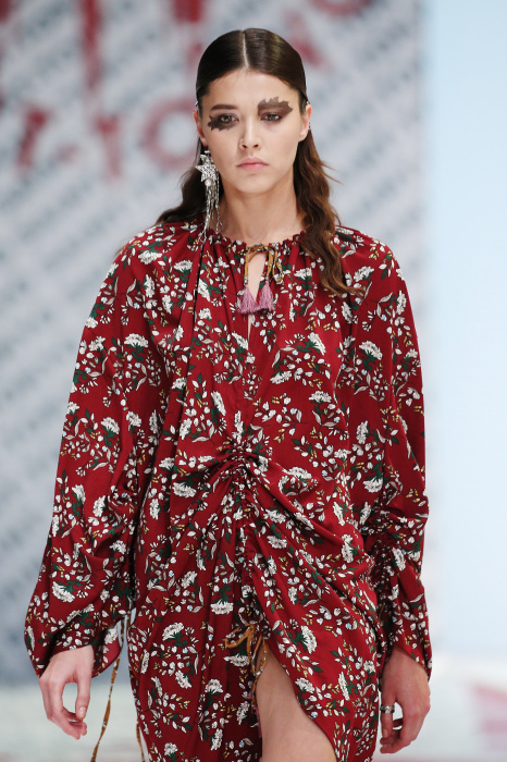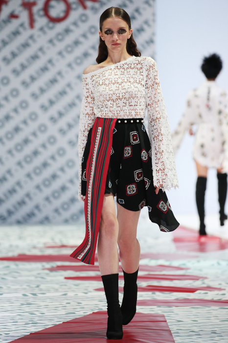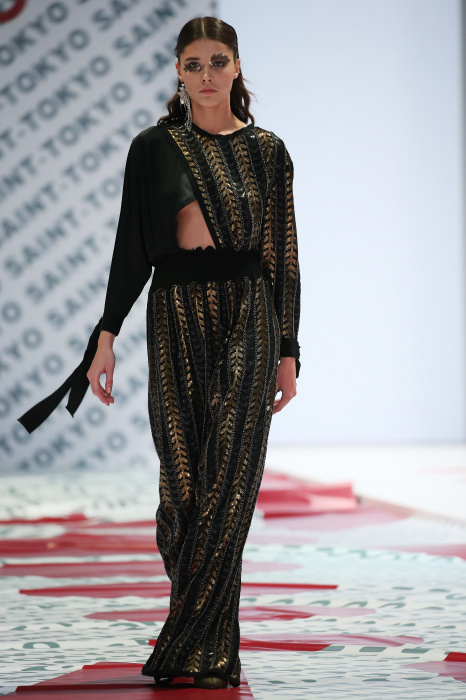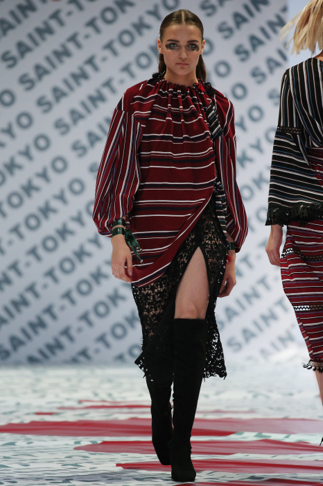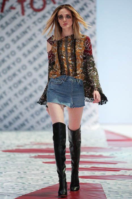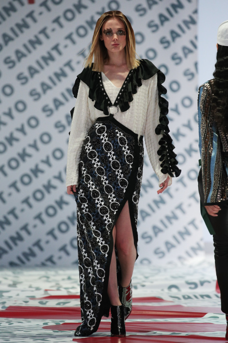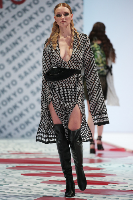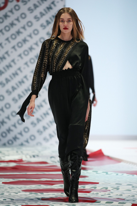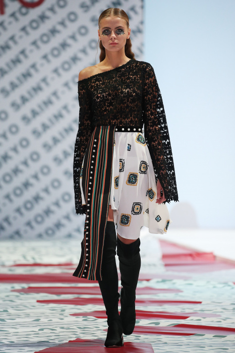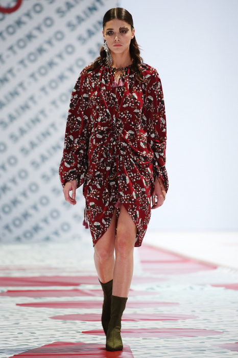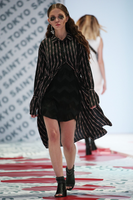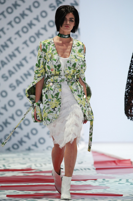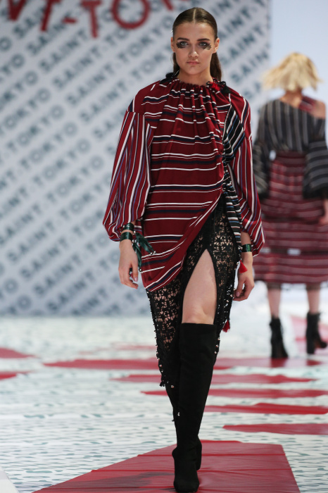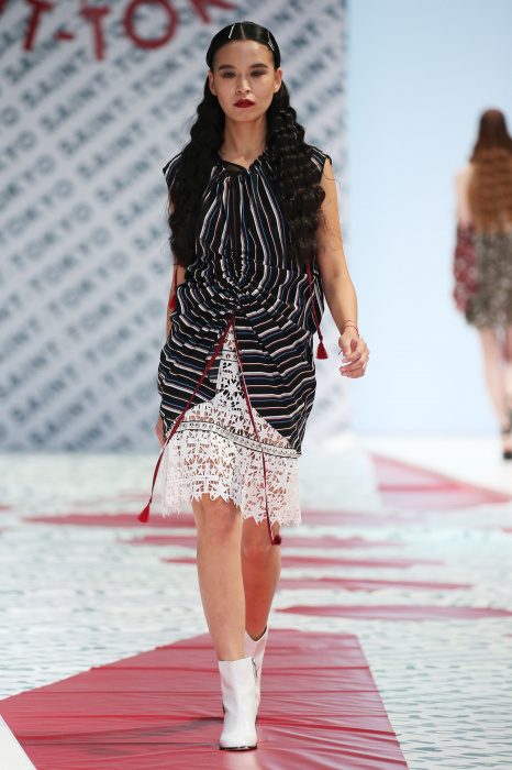 Заключительный показ второго дня – петербургский бренд SAINT-TOKYO дизайнера Юрия Питенина. Коллекция «Explore Mars» вдохновлена космическим миром обычной девушки. На далеком Марсе она ведет образ жизни, непохожий на земной. Контрастные сочетания в палитре цветов, крое, выборе материала. Традиционные для бренда ассиметричный крой, платья с цветочным принтом и черными лентами, бахрома. Первый look SAINT-TOKYO так же в поддержку проекта Mercedes-Benz Fashion Week Russia (MBFW Russia) и Министерства здравоохранения РФ «Российские дизайнеры против СПИДа».