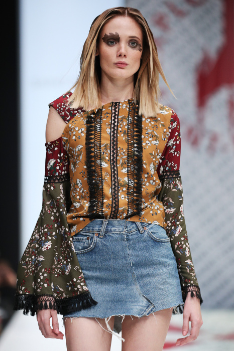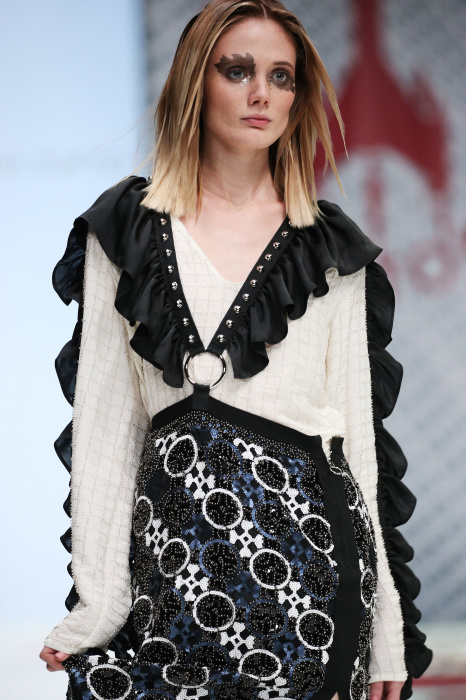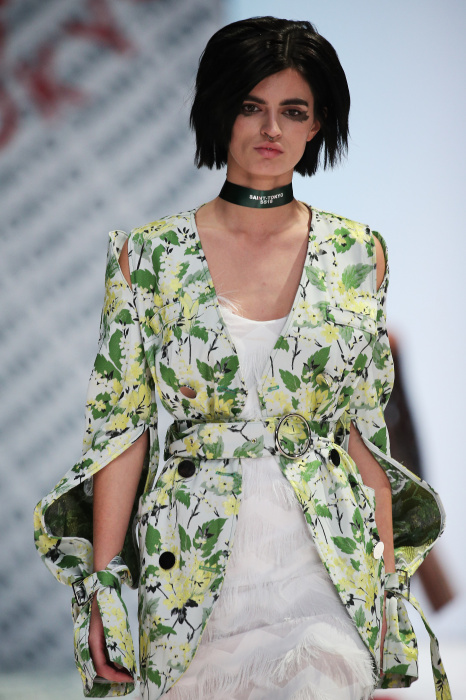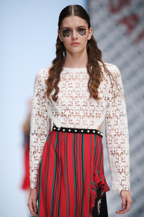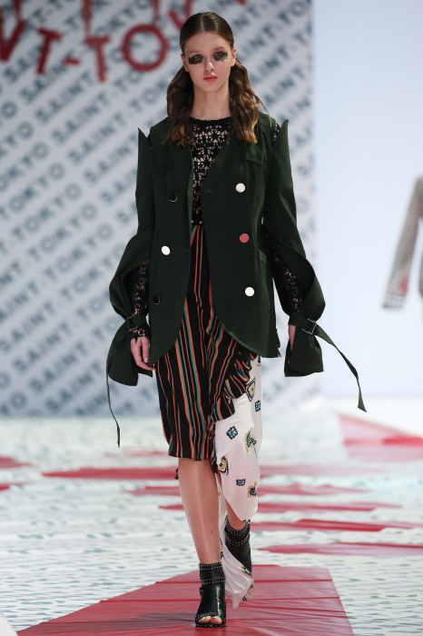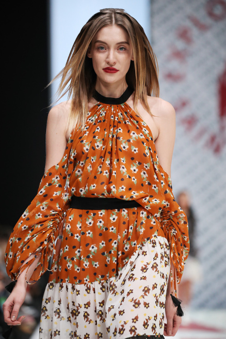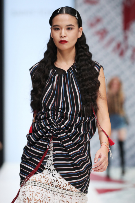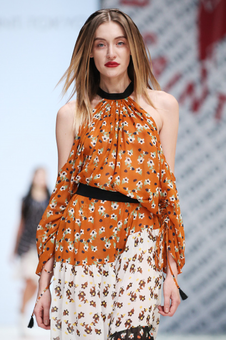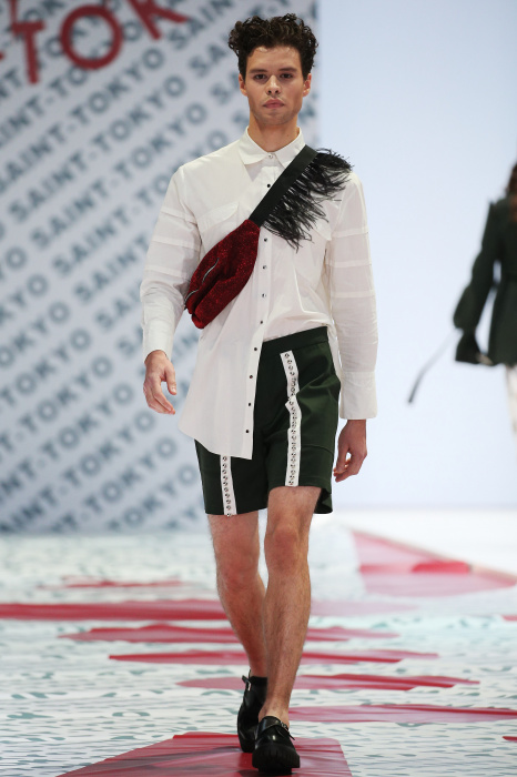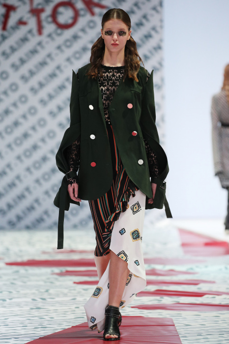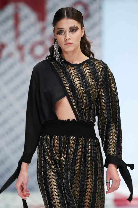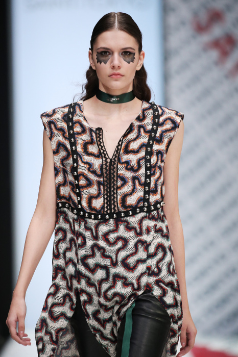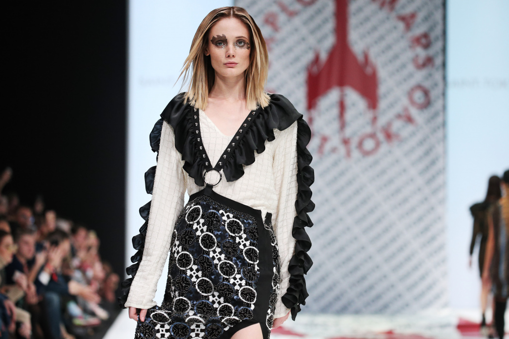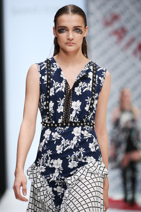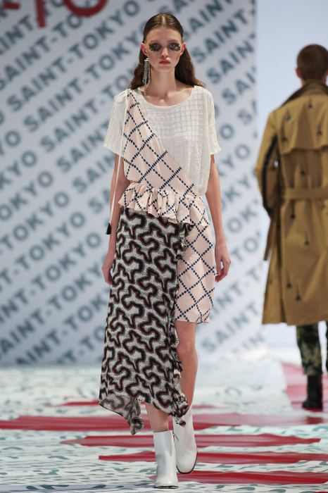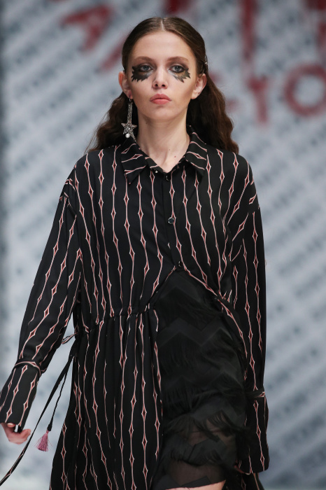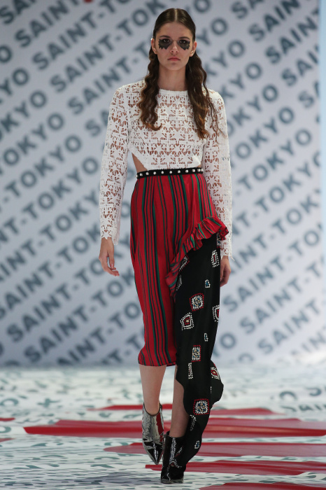 Заключительный показ второго дня – петербургский бренд SAINT-TOKYO дизайнера Юрия Питенина. Коллекция «Explore Mars» вдохновлена космическим миром обычной девушки. На далеком Марсе она ведет образ жизни, непохожий на земной. Контрастные сочетания в палитре цветов, крое, выборе материала. Традиционные для бренда ассиметричный крой, платья с цветочным принтом и черными лентами, бахрома. Первый look SAINT-TOKYO так же в поддержку проекта Mercedes-Benz Fashion Week Russia (MBFW Russia) и Министерства здравоохранения РФ «Российские дизайнеры против СПИДа».