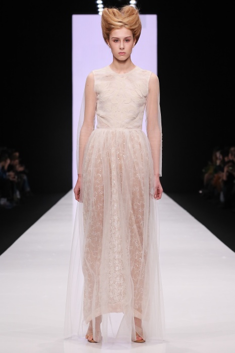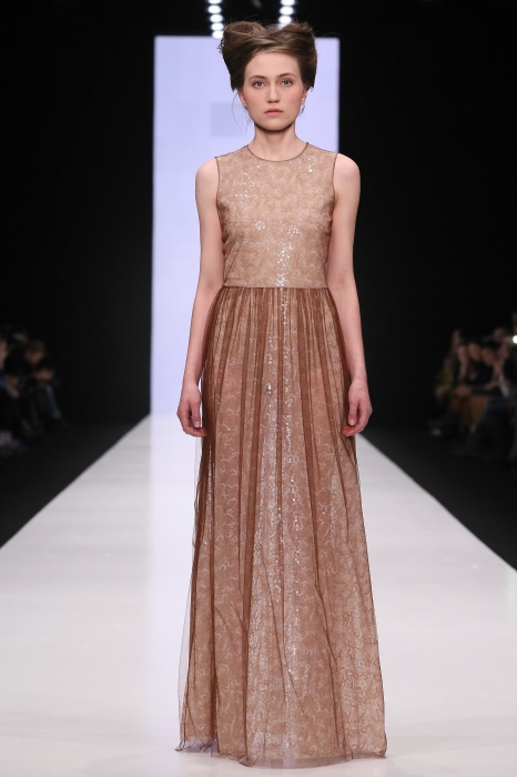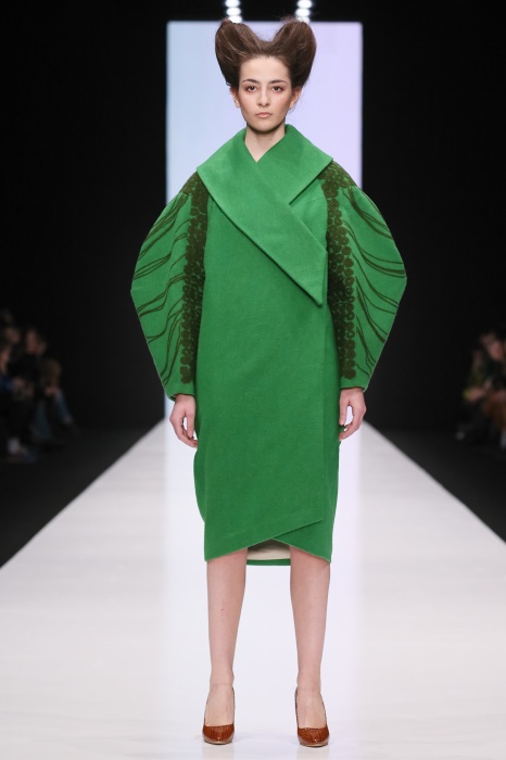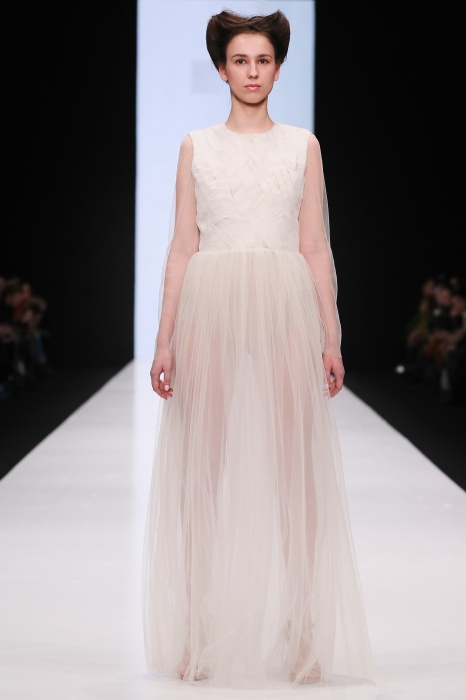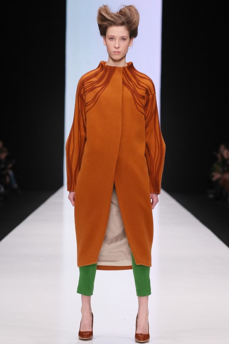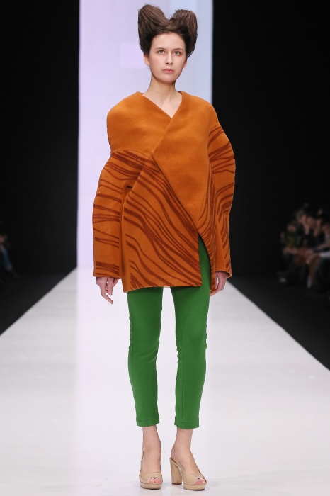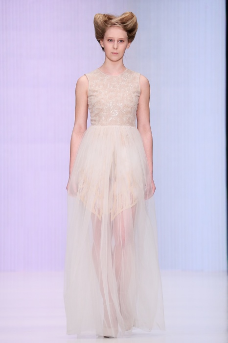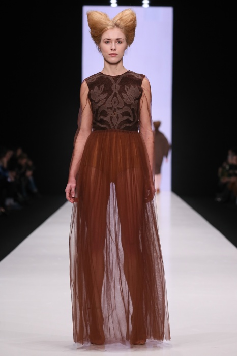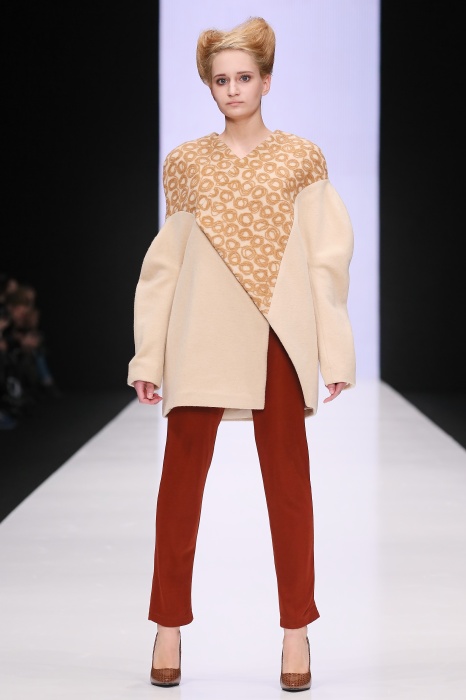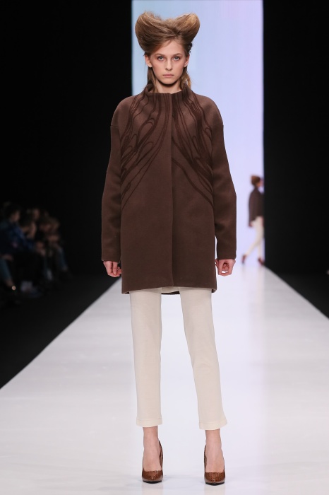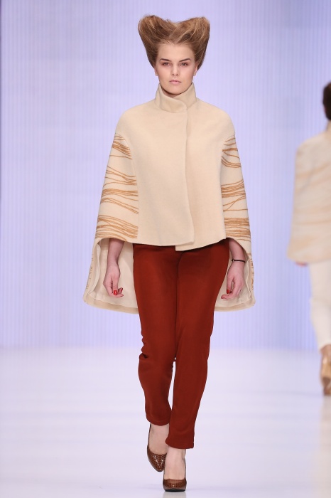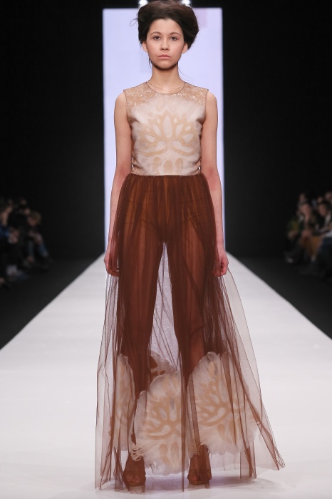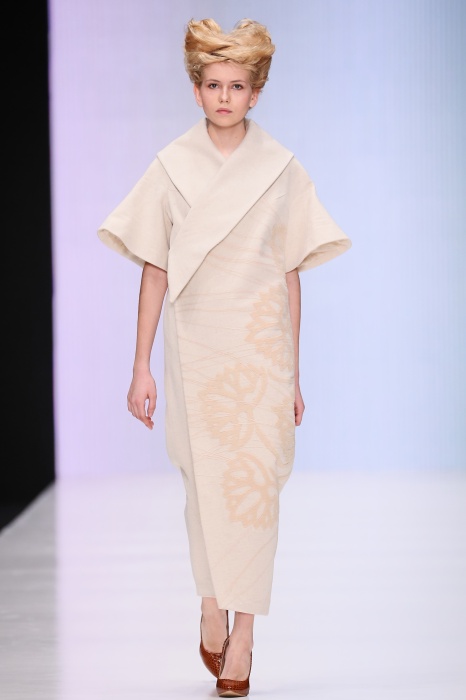 В коллекции победителя конкурса начинающих дизайнеров DHL Анастасии Ильиной господствовала восточная утонченность. Коллекция, нежная словно цветущие лотосы, распустившиеся на подолах платьев, проросшие на ткань верхней одежды, была выполнена, в основном, в светлых и коричневых тонах. Шерстяное сукно было декорировано нитяным узором, выполненным вручную. Ярким элементом коллекции стали укороченные брюкидудочки цвета свежескошенной травы, прекрасно оттенявшие молочнобелый, терракотовый и коричневый тона.