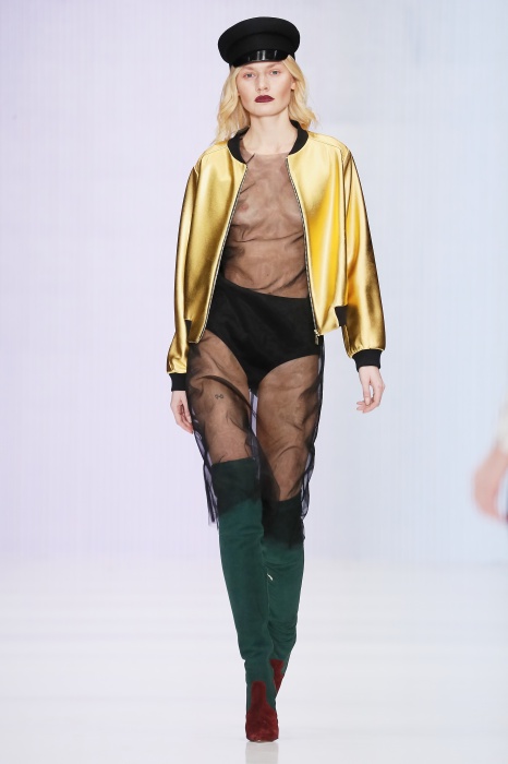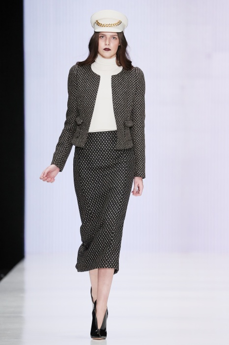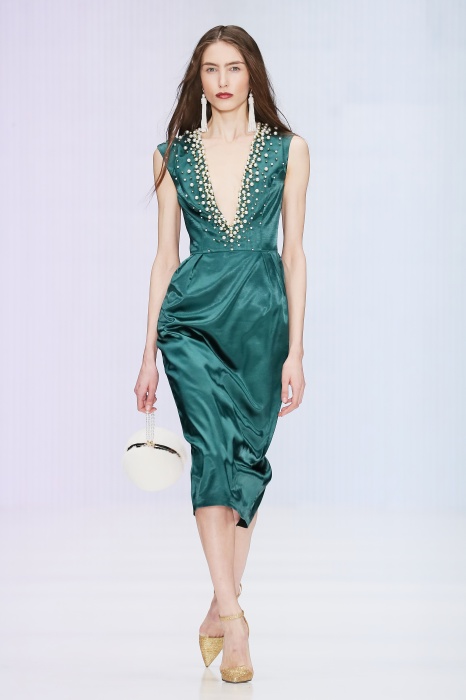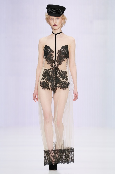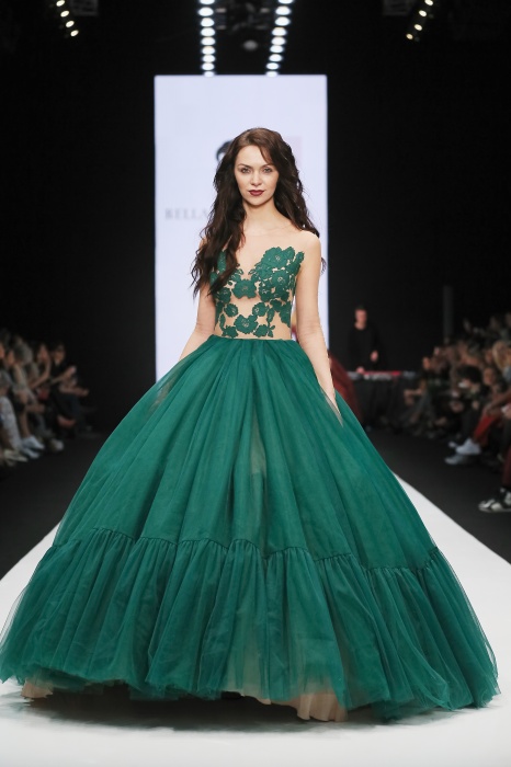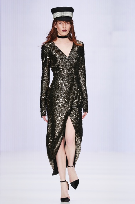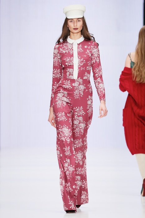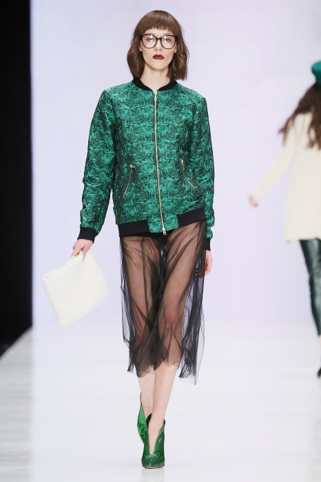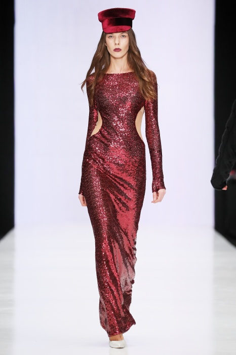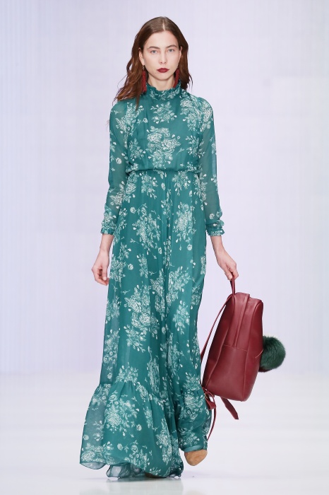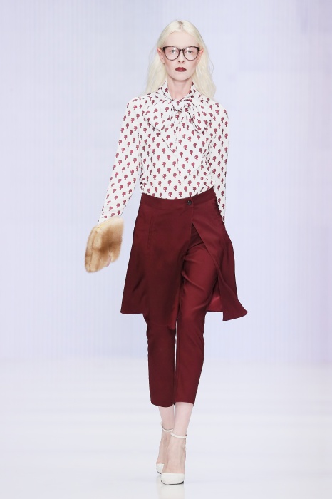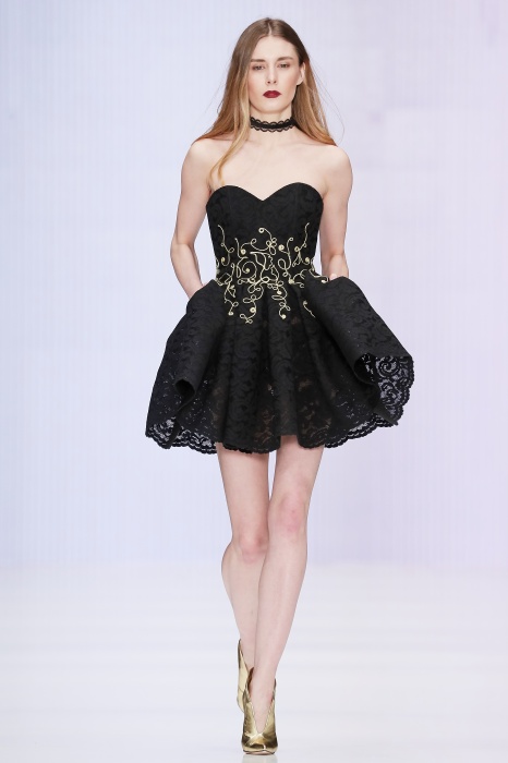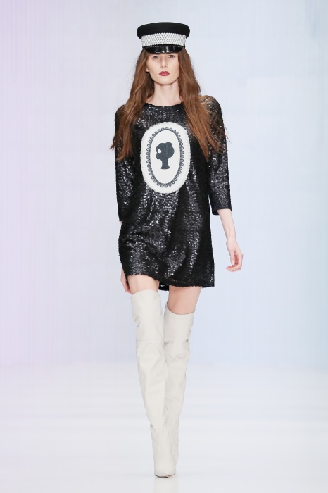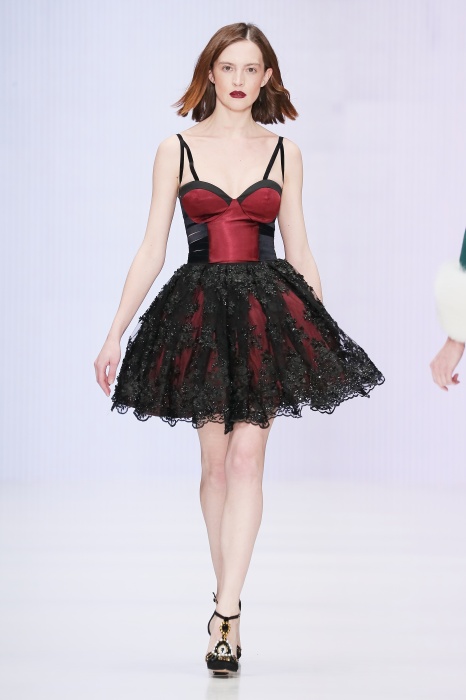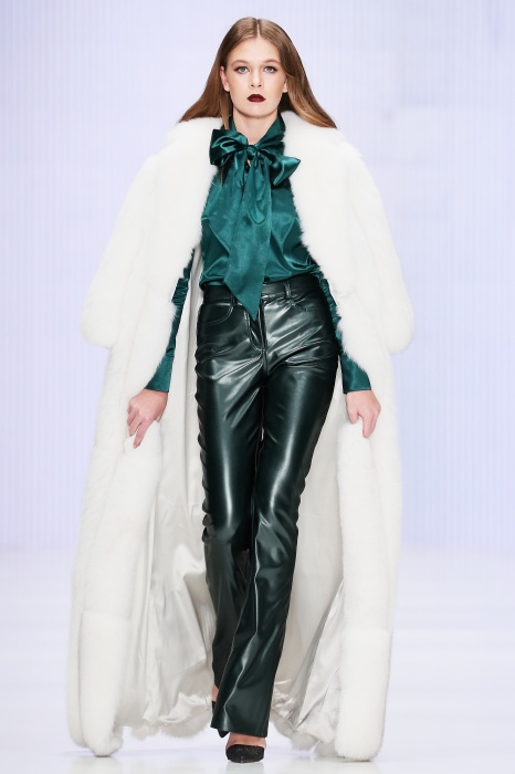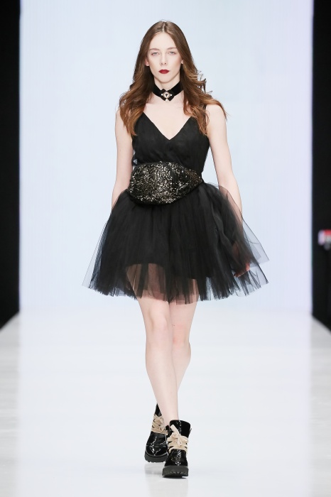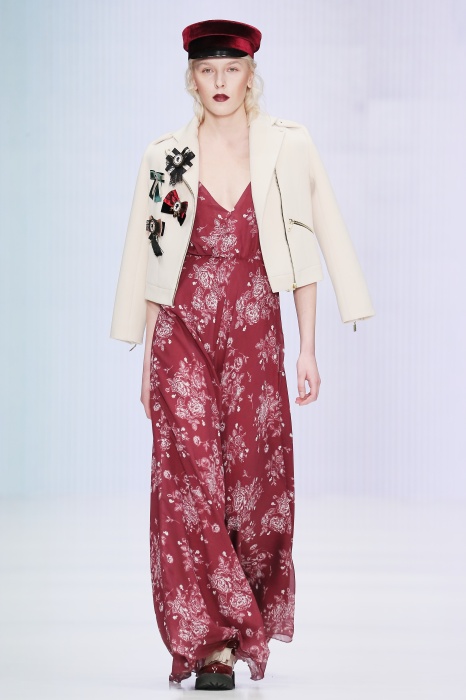 BELLA POTEMKINA вновь продолжает тему России, на этот раз акцент сделан на шик и роскошь царских традиций. К палитре традиционных для бренда цветов добавились благородные и богемные изумрудный и бургунди. Концепция ретро и изысканной винтажности нарочито подчеркнута, благодаря использованию золота в отделке и в деталях. Дизайнер использует много меха и изысканное кружево, обрамлкнное тончайшей тканью вечерних нарядов. Кожаные брюки с заправленными рубашками и пальто менялись платьями в бельевом стиле и более непосредственными c пышными юбками безупречного кроя. Мужская коллекция – это черные бархатные костюмы-двойки и утонченная классика минимализма.