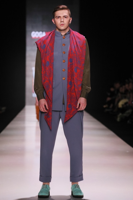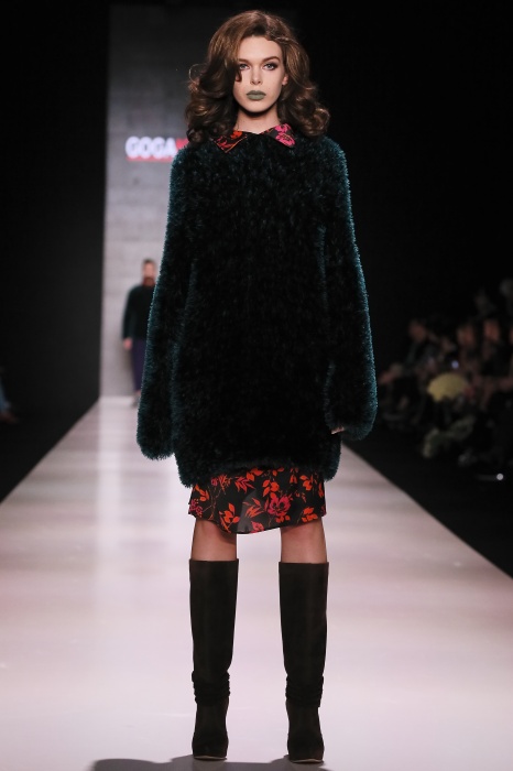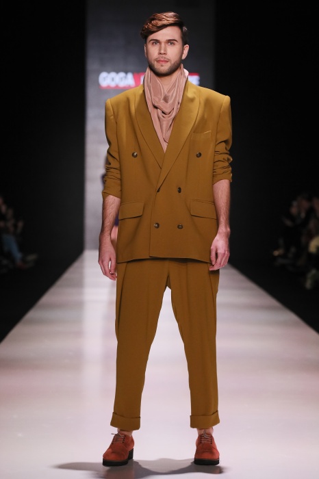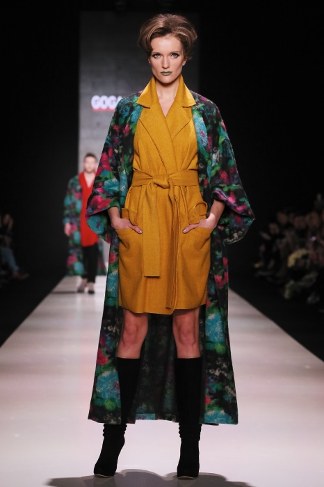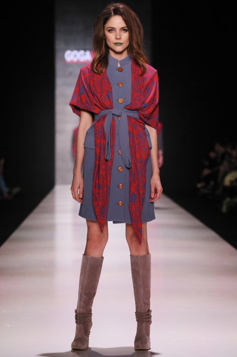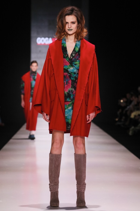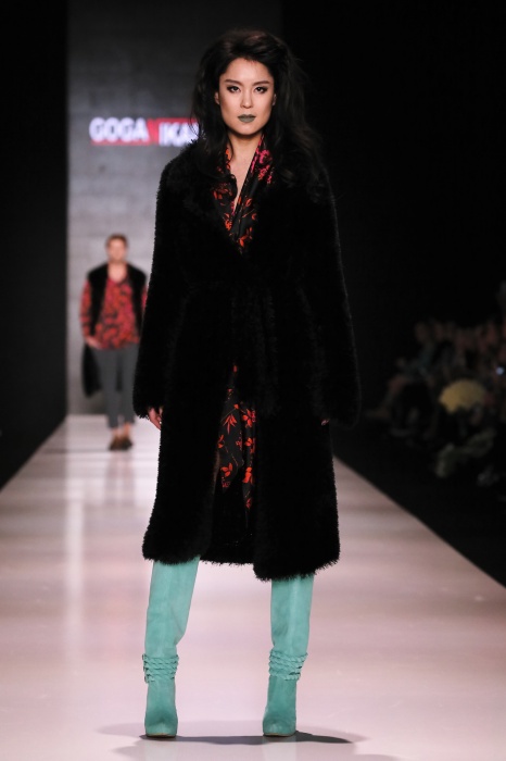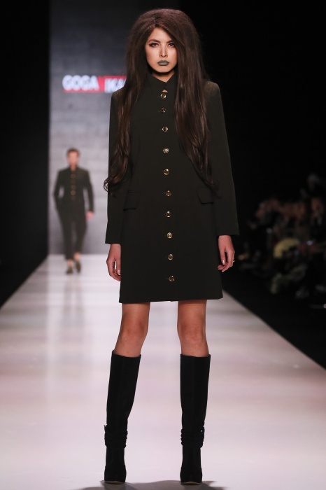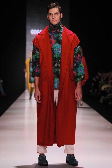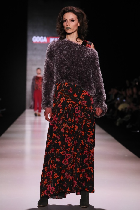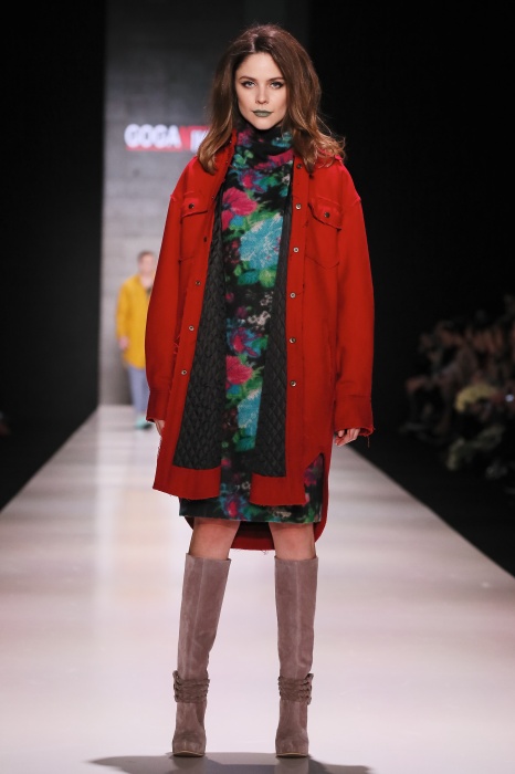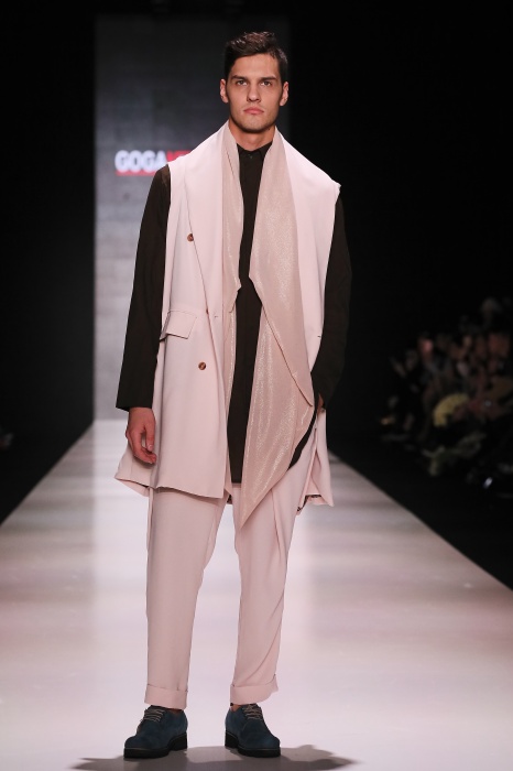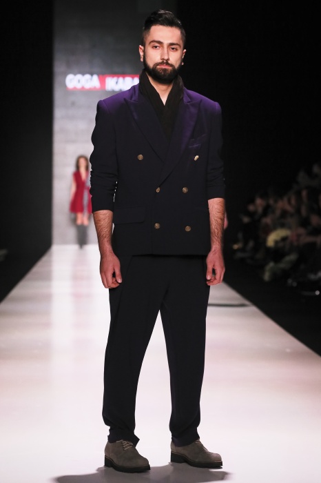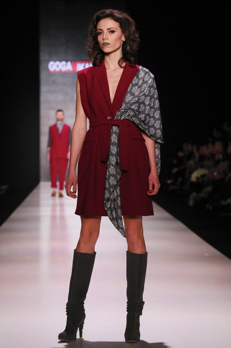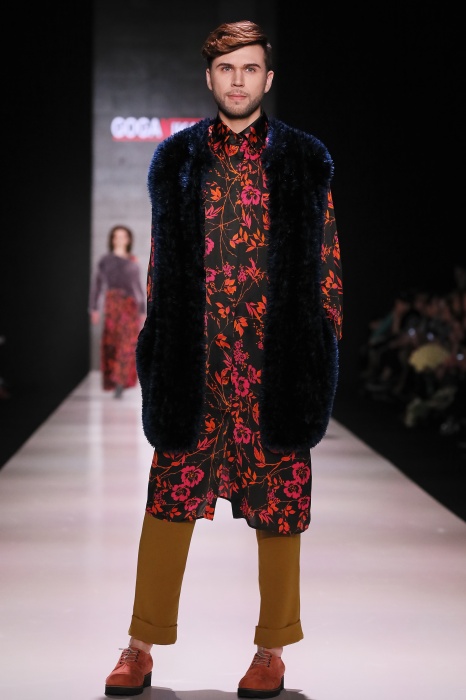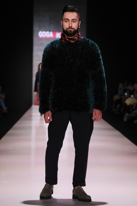 Для стильных городских модников была представлена новая коллекция GOGA NIKABADZE. Расслабленные вещи из натуральных материалов разнообразной цветовой палитры были дополнены плюшевым верхом. Импрессионистских узоров платья, серая сталь комплектов и горчичная сдержанность нарядов перемешивались с костюмами для мужчин и женщин насыщеннофиалкового и деликатномятного цветов.